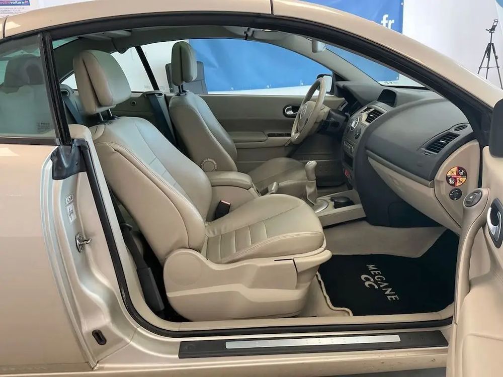 Renault Mégane II CC 1.6 16V Exception * (7 CV), Cabriolet, Essence, 12/2006, 163 210 km, 2 portes, Manuelle, 5 790 €. Options: Direction assistée, Vitres électriques, Toit ouvrant, Ordinateur de bord, Climatisation automatique, Fermeture centralisée, Allumage automatique des feux, Rétroviseurs électriques, Filet anti-remous, Airbag frontaux, Airbags frontaux + latéraux, Régulateur de vitesse, 2.