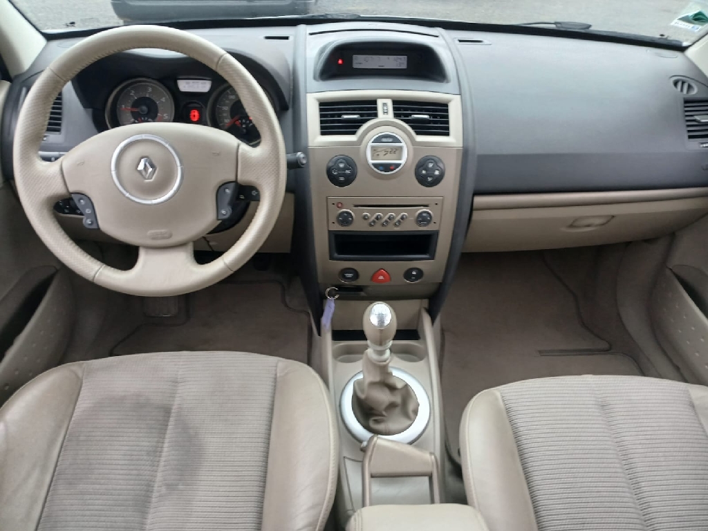 , 3 appuitête type "virgule" sur sièges AR, ABS avec aide au freinage d'urgence, Accoudoirs centraux AV et AR avec rangements fermés, Aide au parking AR, Airbag passager déconnectable, Airbags frontaux conducteur et passager adapatifs, Airbags latéraux AV, Airbags rideaux AV et AR, Allumage automatique des feux, Allumage automatique des feux de détresse, Allumecigare, Antidémarrage électronique, Appuistête AV à protection rapprochée, Appuistête AV réglables en hauteur, Banquette AR rabattable 1/32/3, Boîte à gants éclairée, Boîte à gants réfrigérée, Carte Renault à télécommande avec condamnation centralisée des ouvrants, Carte Renault Mains libres, Ceintures de sécurité AR 3 points, avec double prétensionneur et limiteur d'effort, Ceintures de sécurité AV 3 points, avec double prétensionneur et limiteur d'effort, Cendrier nomade, Climatisation régulée, Condamnation automatique des ouvrants en roulant, Contrôle dynamique de conduite (ESP + ASR + contrôle de sousvirage), Direction assistée électrique variable, Eclairage d'accompagnement extérieur, Emplacement portecanettes sur console centrale AV, Essuieglace AV automatique à capteur de pluie, Frein à main type aviation, Indicateur de température extérieure, ISOFIX : Ancrages normalisés pour sièges enfants, Jantes alliage, Miroirs de courtoisie éclairés, Ordinateur de bord, Paresoleil conducteur et passager avec miroir de courtoisie, Prise 12V, Projecteurs à double optique, Projecteurs antibrouillard, Radio 4x15W CD, RDS, codé, avec satellite de commandes au volant, Radiosat 4x15W CD avec lecture MP3, Range lunettes pour conducteur, Rangement central AV ouvert, Rangements fermés sous accoudoirs de portes AV, Recyclage de l'air, Régulateur limiteur de vitesse, Rétroviseur intérieur électrochrome, miroirs de courtoisie éclairés, Rétroviseurs extérieurs rabattables électriquement, Rétroviseurs extérieurs, asphérique côté conducteur, dégivrants, à réglage électrique,semicuir, Siège conducteur réglable en hauteur, Spot de lecture conducteur et passagers AR, Spot de lecture passager AV, Système de surveillance de la pression des pneus, Trappe à carburant à ouverture intégrée, Trappe de rangement sous pieds AV, Vitre conducteur électrique antipincement à impulsion, Vitres AV électriques, Vitres AV et AR électriques à impulsion avec dispositif antipincement, Volant 3 branches, Volant et pommeau cuir, Volant réglable en hauteur et en profondeur, Volant, pommeau et poignée frein à main cuir,, 6 vitesses, 5 places, puissance fiscal : 6, puissance din : 105, émission de CO2 : 124 g/km.