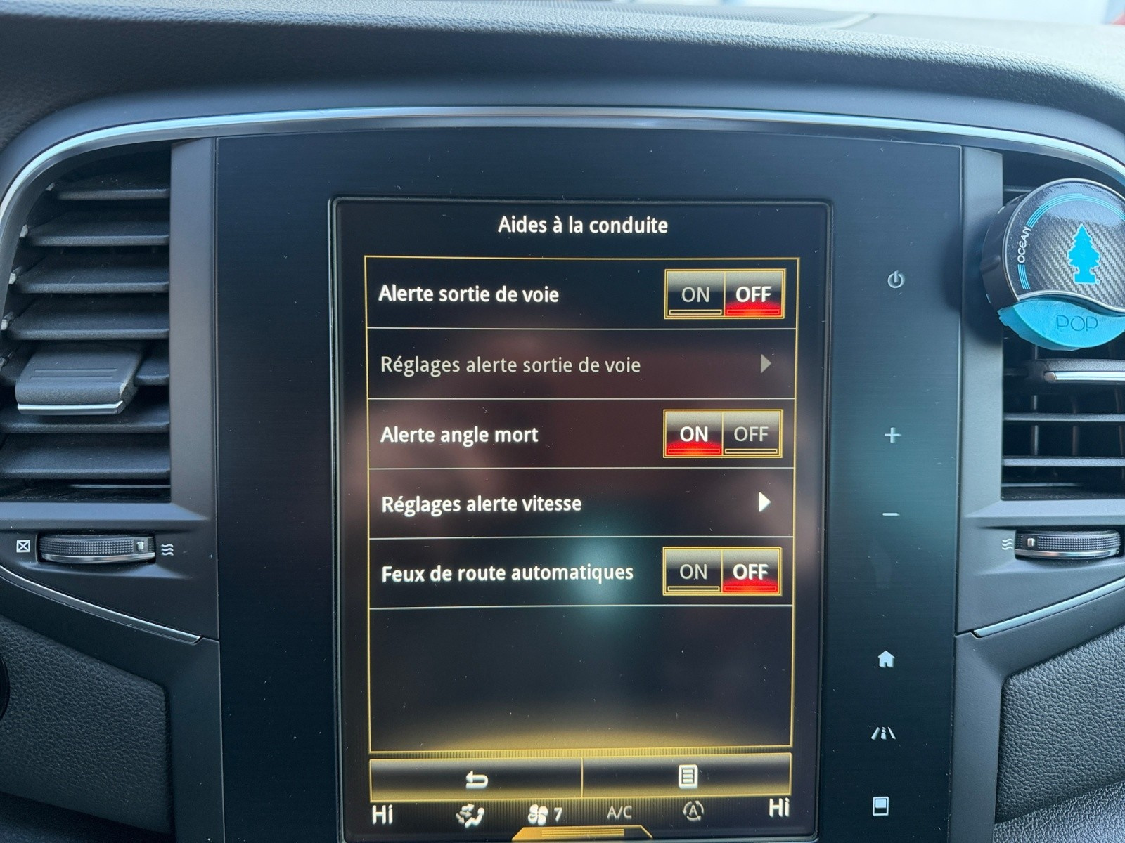 // 4 vitres electriques Affichage tête haute Aide au démarrage en pente Airbag conducteur Système d'alerte anti-collision Reconnaissance des panneaux de signalisation Apple Carplay Assistance au freinage d'urgence Avertisseur d'angle mort Alerte de franchissement involontaire de lignes Accoudoir arrière Caméra de recul Détecteur pluie Verrouillage centralisé télécommandé Système de navigation Climatisation automatique Airbag passager Détecteur actif d'angle mort Feux automatiques Feux de jour Frein de stationnement électrique Système de freinage d'urgence anticipatif Garnitures intérieures carbone Kit de réparation pneus (Mobile Tyre) Line Assist Lève-vitres arrière électriques Lève-vitres avant électriques Peinture laquée / opaque Phares antibrouillard Pré-équipement téléphone Sélection du mode de conduite Rétroviseur intérieur électrochrome Rétroviseurs extérieurs rabattable électriquement Sièges en cuir Siège avant massant Siège conducteur chauffant Fixation pour siège enfant Vitres teintées Volant en cuir