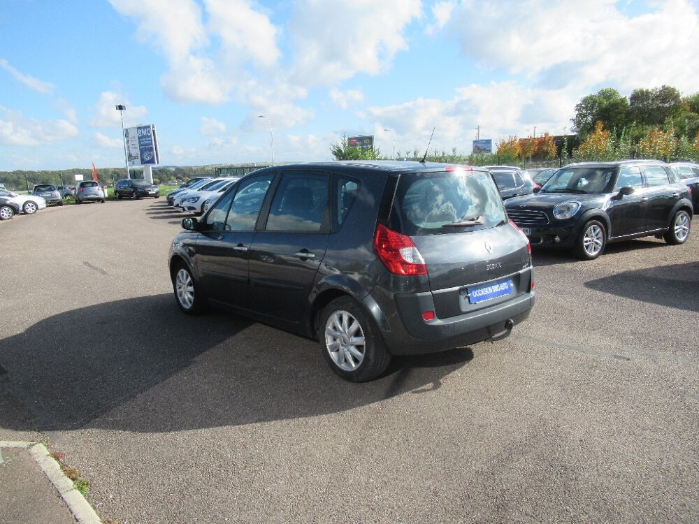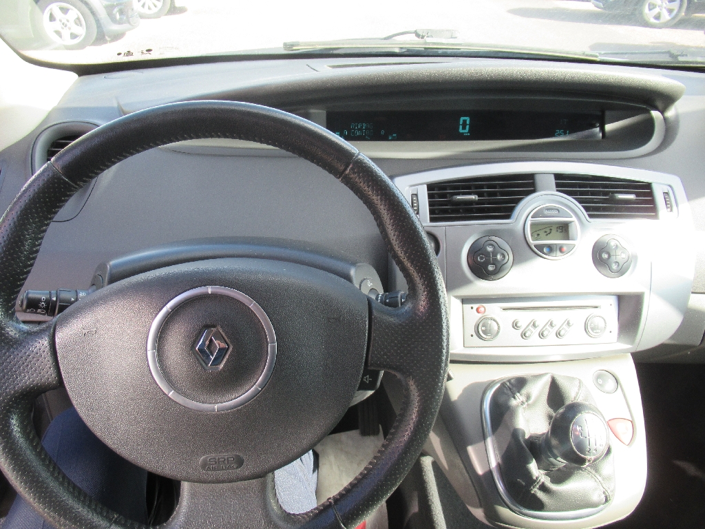 RENAULT SCENIC II (Scenic 1.5 dCi 105 BV6) Bleu métal Gris foncé.3 appuis-tête AR "virgule" réglable en hauteur, 3 sièges de 2éme rangée, ABS avec répartiteur de freinage et assistance au freinage d'urgence, ABS avec répartiteur électronique de freinage et assistance au freinage d'urgence, Affichage centrale : heure et radio, Airbags frontaux conducteur et passager adapatifs (airbag passager déconnectable), Airbags frontaux conducteur et passager adapatifs (déconnectable), Airbags latéraux thorax adaptatifs conducteur et passager (déconnectable), Airbags latéraux thorax AV, Airbags rideaux, Airbags rideaux AV et AR, Allumage automatique des feux de croisement, Allumage automatique des feux de détresse en cas de freinage d'urgence, Allumage et extinction progressifs de l'éclairage intérieur commandés par la carte Renault, Antenne courte de pavillon, Anti-démarrage électronique codé activé par transpondeur, Appuis-tête AR "Virgule" réglables en hauteur, Appuis-tête AV à protection rapprochée, Appuis-tête AV à réglage confort, Appuis-tête AV réglables en hauteur, Bacs de porte intégrant porte-bouteille AV et porte-canette AR, Baguettes latérales et bourrelets de protection ton caisse avec peinture métallisée (pierre à fusil/ peinture opaque), Boîte à gants de 17 litres éclairée et réfrigérée, Boucliers et rétroviseurs extérieurs ton carrosserie, Carminat Bluetooth radio 4x15W mono CD avec lecteur MP3, RDS et satellite de commande au volant, Carminat Navigation Informée 2, Carte Renault à télécommande, Carte Renault à télécommande avec condamnation centralisée des ouvrants et de la trappe à carburant, Carte Renault Mains libres, Ceintures de sécurité AR centrale 3 points : avec limiteur d'effort, Ceintures de sécurité AR latérales 3 points : avec prétensionneur et limiteur d'effort, Ceintures de sécurité AV 3 points, avec double prétensionneur et limiteur d'effort, Climatisation manuelle avec filtre habitacle, Climatisation régulée, Climatisation régulée, capteur d'ensoleillement, de température et filtre d'habitacle, Condamnation automatique des ouvrants en roulant, Condamnation centralisée des portes, de la trappe à carburant et ouverture à distance, Conduits d'air/chauffage aux places AR et recyclage d'air, Direction à assistance variable électrique, Dossier du siège passager AV rabattable et formant une tablette, Eclairage d'accompagnement extérieur, Eclaireurs central AR, Emplacement porte-canettes sur console centrale AV, Emplacement porte-gobelet sur console centrale AV, Emplacement pour crochets d'arrimage des bagages dans le coffre, Enjoliveurs de roues Dryos 15" ou 16" (selon motorisations), Essuie-vitre AR (mise en route automatique au passage de la marche AR), Essuie-vitre AV à 2 vitesses et à cadencement variable, Essuie-vitre AV à détection de pluie et à cadencement automatique, Façade centrale "candy or", Frein de parking automatique, Grille de calandre aspect chrome satiné, Indicateur de température extérieure, Jonc et enjoliveurs d'antibrouillards aspect chrome satiné, Kit de regonflage + rangement dans bac de roue de secours, Lève-vitres AV électriques, Lève-vitres électriques AV/AR à impulsion avec dispositif antipincement, Masques inférieurs de projecteurs noirs "grand brillant", Miroir de communication intérieure, Ordinateur de bord 7 fonctions, Pare-soleil conducteur et passager avec miroir de courtoisie, Planche de bord (haut/bas) carbone foncé/beige, Poignées de portes et rétroviseurs ton caisse, Poignées de portes extérieurs aspect chrome satiné, Poignées de tirage sur portes AV beige métal soft, Pré-équipement radio, Prise 12 V sur platine de levier de vitesse, Projecteurs à double optique, Projecteurs antibrouillard, Rangement central bas avec emplacement canettes, Rangement fermé côté conducteur, Rangements fermés côté conducteur, Rangements fermés sous accoudoirs de portes AV, Recyclage de l'air, Réglage lombaire, Régulateur limiteur de vitesse, Rétroviseurs extérieurs électriques dégivrants, Rétroviseurs extérieurs rabattables électriquement, Rétroviseurs extérieurs, asphérique côté conducteur, dégivrants, à réglage électrique, Rideaux latéraux pare-soleil de rang 2, Roue de secours tôle, Sellerie tissu Scotek beige et argile moyen, surpiqûres beiges, Siège centrale AR sur glissières, Siège conducteur réglable en hauteur, Siège conducteur réglable en hauteur et réglage lombaire, Sièges AR individuels, amovibles, avec dossier inclinable et rabattable, Sièges arrières latéraux recentrables, Spot de lecture central AR, Système de fixation ISOFIX 3 points pour siège enfant aux places latérales AR et passager AV, Système de fixation ISOFIX pour sièges enfants aux places latérales AR passager AV, Tablette AR amovible à positions multiples, Tablettes type aviation au dos des sièges AV, Témoin d'oubli de ceinture et de portes mal fermées, Tiroir de rangement sous sièges AV, Tiroir sous siège AV, Tiroirs de rangement