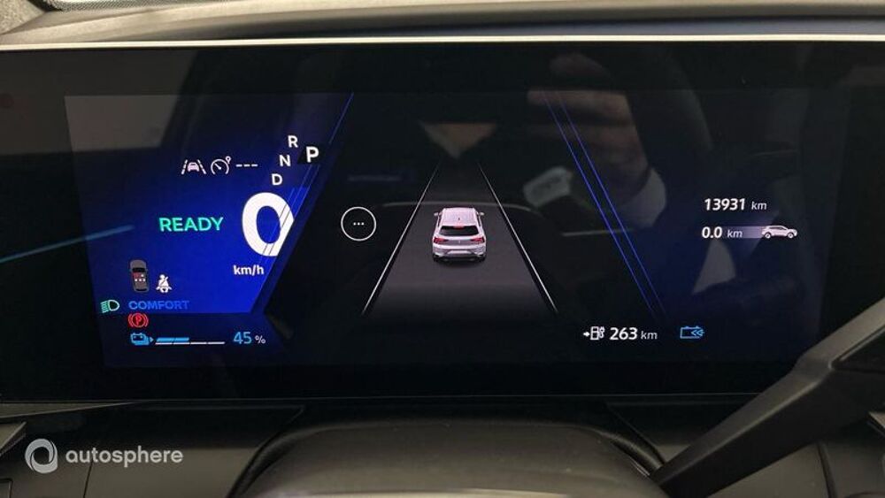 Equipements: ABS, Accoudoir central AR avec trappe à skis, Accoudoir central AV avec rangement, AFIL, Aide au démarrage en côte, Airbag conducteur, Airbag passager, Airbag passager déconnectable, Airbags latéraux avant, Airbags rideaux, Airbags rideaux AR, Antidémarrage électronique, Antipatinage, Appel d'Urgence Localisé, Assistance de maintien de trajectoire, Bacs de portes arrière, Bacs de portes avant, Banquette 40/20/40, Banquette AR rabattable, Banquette arrière 3 places, Barres de toit, Becquet arrière, Boite à gants fermée, Boucliers AV et AR couleur caisse, Caméra de recul, Capteur de luminosité, Capteur de pluie, Ceintures avant ajustables en hauteur, Clim automatique bi-zones, Coffre assisté électriquement, Commande Mode ECO, Commandes du système audio au volant, Contrôle élect. de la pression des pneus, Démarrage sans clé, EBD, Eclairage d'ambiance, Ecran multifonction couleur, Ecran tactile, ESP, Essuie-glace arrière, Feux arrière à LED, Feux de jour à LED, Feux de route automatiques, Filtre à Pollen, Fixations Isofix aux places arrières, Fonction MP3, Freinage automatique d'urgence, GPS Cartographique, Guidage pour manoeuvre de stationnement, Interface Media, Jantes Alu, Kit mains-libres Bluetooth, Lampe de coffre, Lunette AR dégivrante, Lunette arrière surteintée, Maille recy noire/tep matelassé spq bleu, Mode de conduite, Ordinateur de bord, Ouverture des vitres séquentielle, Pare-brise thermique, Phares antibrouillard LED, Phares avant LED, Phares directionnels, Poignées ton carrosserie, Porte-gobelets arrière, Porte-gobelets avant, Prise 12V, Prise USB, Radar de distance, Radar de stationnement AR, Radar de stationnement AV, Reconnaissance panneaux de signalisation, Régulateur de vitesse adaptatif, Répétiteurs de clignotant dans rétro ext, Rétroviseur intérieur électrochrome, Rétroviseurs dégivrants, Rétroviseurs électriques, Rétroviseurs rabattables électriquement, Services connectés, Siège cond. avec réglage lombaire électr, Siège conducteur chauffant, Siège conducteur réglable en hauteur, Siège passager chauffant, Sièges avant sport, Système avancé de détection d'obstacles, Système d'accès sans clé, Système de détection de somnolence, Tablette cache bagages, Température extérieure, TMC, Verrouillage auto. des portes en roulant, Verrouillage centralisé à distance, Verrouillage centralisé des portes, Vitres arrière électriques, Vitres arrière surteintées, Vitres avant électriques, Volant chauffant, Volant multifonction, Volant réglable en profondeur et hauteur, Câble de recharge domestique (mode 2), Facture batterie, Pk Augment Vision & Advan Driving Assist