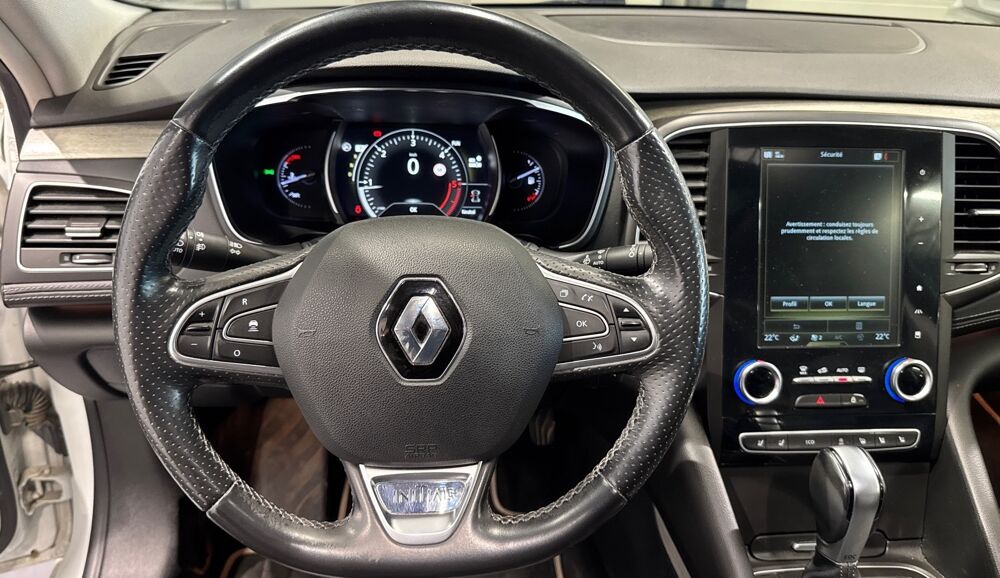 ***SOUS RESERVE D'ERREUR DE REDACTION ET D'OPTIONS*** Equipements supplémentaires : ABS, Aerateurs AR, Aerateurs aux places AR, Affichage tete haute, Aide au parking AV/AR, camera de recul et Easy Park Assist, Airbags lateraux et rideaux, Alerte de distance de securite, Alerte de survitesse avec reconnaissance des panneaux de signalisation, Ambiance lumineuse, Amortissement Pilote, Appuis-tete AR, Appuis-tete AV Relax, Assistance au freinage d'urgence (A.F.U.), Avertisseur de franchissement de ligne, Avertisseurs d'angles morts, Bose Surround System, Capteur de pluie et de luminosite / Commutation automatique des feux de route/croisement, Cartographie Europe, Chassis 4-CONTROL (a 4 roues directrices), Climatisation automatique bi-zone, Commandes vocales, Condamnation centralisee des portes, Controle dynamique de trajectoire ESP avec aide au demarrage en pente, Ecomode, Energy Smart Management, ESP avec Aide au demarrage en cote, Feux anti-brouillard AV LED, Feux AR a LED, Feux de jour a LED, Filtre a particules, Fixation ISOFIX, Fixation ISOFIX/i-size, Frein de parking assiste, Freinage actif d'urgence, Indicateur de changement de vitesse, Kit de gonflage et de reparation, Lecteur CD dans la boite a gants, Lunette AR chauffante, Ouverture mains-libres du coffre, Pare-brise athermique, Phares LED PURE VISION, Planche de bord Noir, Pneu ete, Pre-disposition alarme, Pre-equipement services connectes, Preequipement Bose, Prise 12V, USB et Auxiliaire 1er rang et 1 prise 12V, 2 USB et une prise jack en rang 2, Projecteurs antibrouillard, R-LINK 2 avec Cartographie Europe, Regulateur de vitesse Adaptatif, Renault Multi-Sense (choix de modes de conduite), Retroviseur interieur jour/nuit automatique, Retroviseurs exterieur degivrant, reglables et rabattables electriquement avec indexation marche AR, Sellerie Cuir Nappa Noir, Seuil de portes, Sieges AV a reglages electriques 8 voies, massant, ventiles avec reglage de la longueur d'assise, Sieges AV chauffants, Surtapis d'habitacle Initiale Paris, Systeme de surveillance de la pression des pneus, Tableau de bord digital, Tapis de sol Initiale Paris, Vitres AV et AR electriques impulsionnel, Vitres laterales feuilletees, Volant cuir, Pack Hiver, Peinture Blanc Nacre, Roue de secours galette, Sellerie Cuir Nappa Camaieu, Toit ouvrant electrique avec occultation par velum electrique, Système aide au stationnement (av et ar).