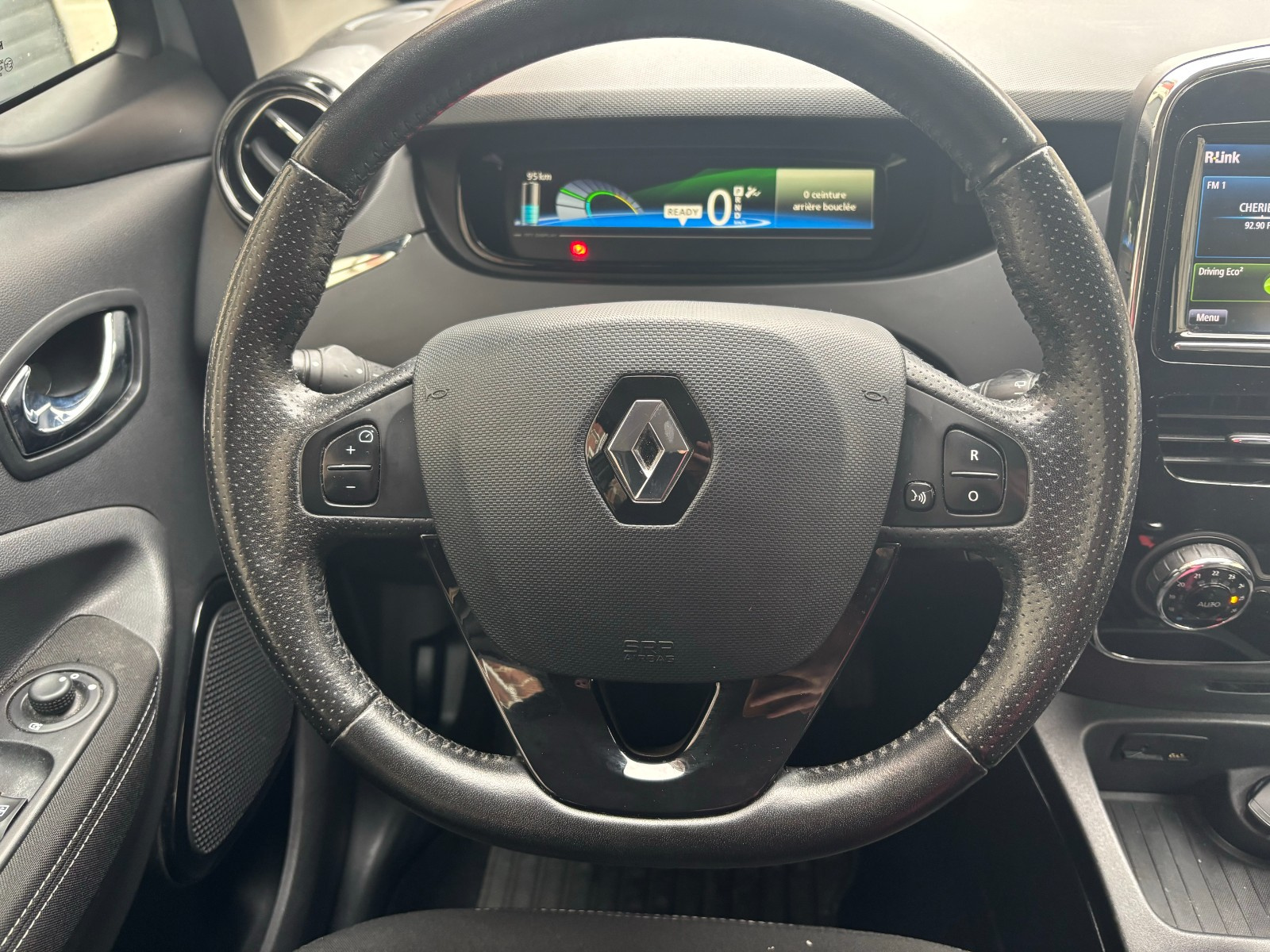 RENAULT ZOE R110 Intens// Airbag conducteur Airbag latéral conducteur et passager Airbag passager Allumage automatique des phares Appuie-tête arrière Ceinture centrale arrière 3 points Climatisation automatique Contrôle actif de pression pneus ESP (programme de stabilité électronique) Feux avant LED Feux de jour Fixation pour siège enfant Jantes/roues en alliage léger 16 Kit de réparation pneus (Mobile Tyre) Lève-vitres arrière électriques Lève-vitres avant électriques Peinture laquée / opaque Radar de stationnement arrière Rétroviseurs extérieurs dégivrants Rétroviseurs extérieurs rabattable électriquement Système anti bloquage (ABS) Système de navigation Téléassistance Verrouillage centralisé Vitre arrière chauffante
