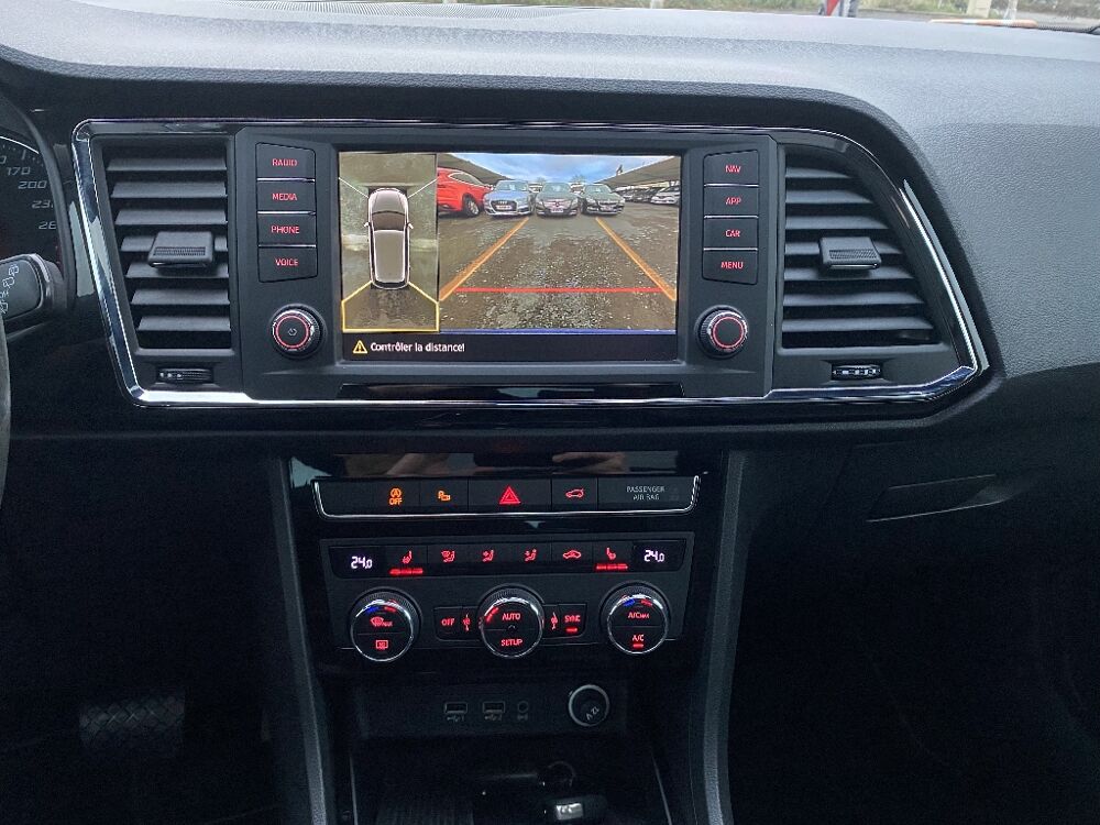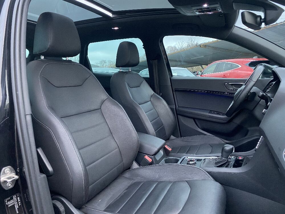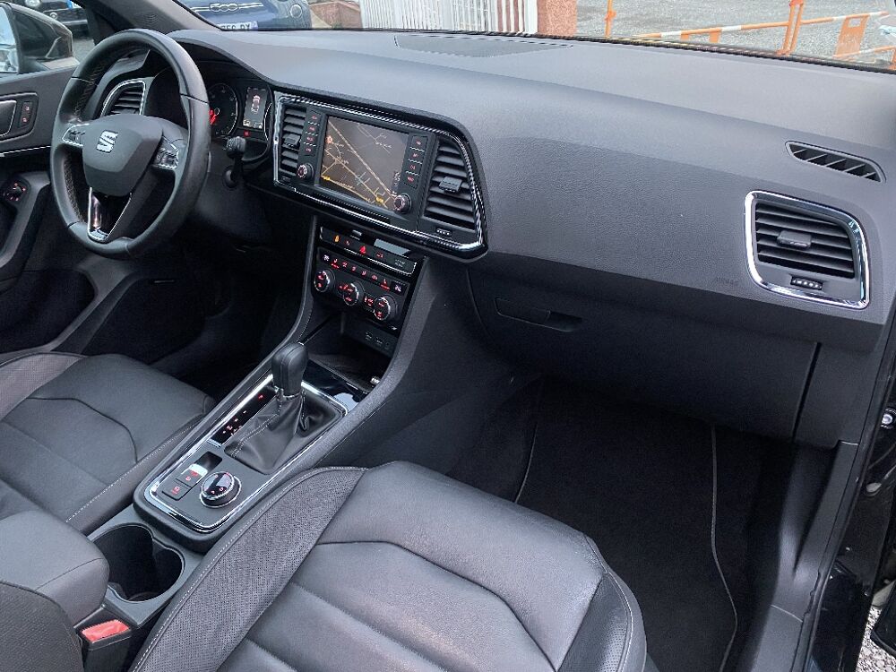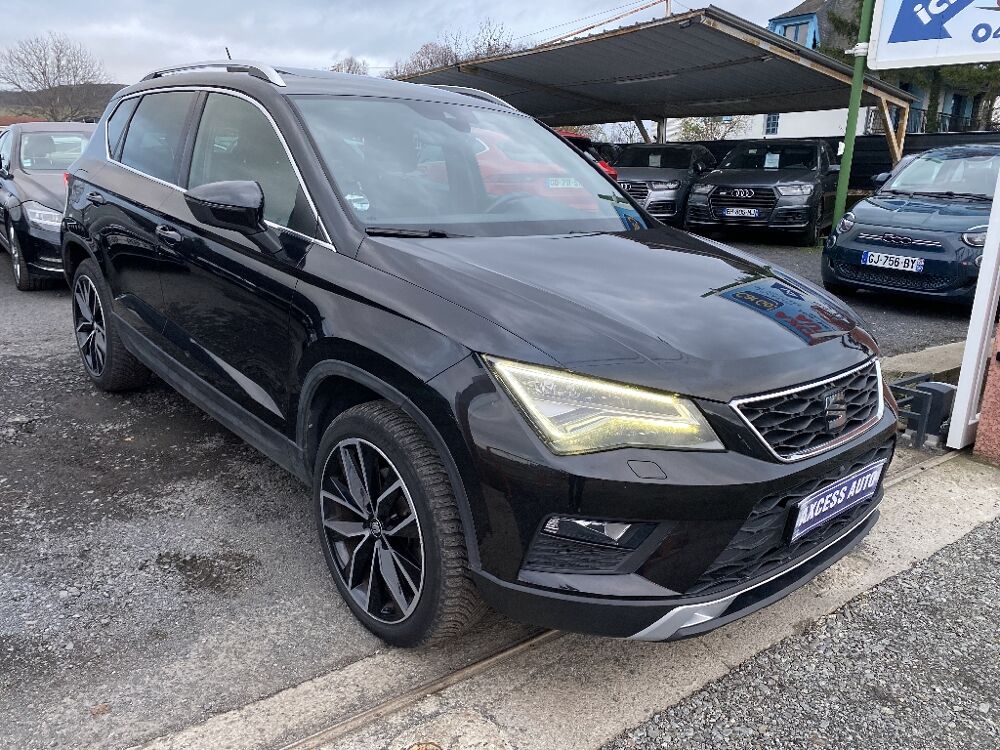 SEAT ATECA (2.0 TDI 190 ch DSG7 4Drive Xcellence) Noir.- Sièges AV chauffants , - Sellerie cuir , - Seat sound , - ABS , - Accoudoir central , - Aide au démarrage en côte (Hill Hold Control), - Airbags, - Anti-patinage électronique (ASR),assistance au freinage d'urgence (EBA), - Banquette AR rabattable en 2 parties asymétriques, - Climatisation automatique bi-zone assager, - Détecteur de fatigue, - Détecteur de pluie et luminosité, - Direction assistée , - Feux de jour à LED, - Frein à main électrique, - Front Assist : système de surveillance périmétrique avec fonction de freinage de secours en ville, - Full Link (MirrorLink + Android Auto + Apple CarPlay), - GPS Europe avec écran tactile 8", - Grand toit ouvrant panoramique, - Hayon électrique, - Jantes alu, - Keyless Access, - Limiteur de vitesse, - Molette Driving Experience avec SEAT Drive Profile et direction progressive, - Ordinateur de bord, - Prise 12V, - Projecteurs Full LED, - Radars de stationnement , - Rails de toit , - Régulateur de vitesse, - Rétroviseurs extérieurs dégivrants,réglables et rabattables électriquement, - Siège conducteur réglable en hauteur, - Système "Start-Stop" , - Système d'aide au stationnement "Top view camera", - Top view camera 360º, - Verrouillage centralisé à distance, , - Possibilité de reprises sur votre ancien Véhicule et Utilitaire , - Pour les demandes de reprises adressez-nous un mail : , - Tous nos véhicules sont vendus révisés et garantis., - Nous proposons une extension de garantie si nécessaire., - Etude de financement possible avec apport , - L'exactitude des informations ci-dessus ne sont pas confirmées ni garanties au cas où une erreur de saisie aurait pu se produire , - Nos Horaires du Lundi au vendredi 9h-12h 14h-19h Le samedi 10h-12h 14h-18h , - AXCESS AUTO c'est 15 ans d'expérience dans l'achat et vente., - L'arrivage permanent de véhicules toutes marques., - Nous vous proposons tous les prix de la petite citadine jusqu'au véhicule de luxe., -Toute notre équipe reste à votre disposition pour répondre à vos attentes. , -AXCESS AUTO 19 avenue d'aubiere 63800 Cournon d'Auvergne , -Tel ou , - Pour consulter le stock complet tapez AXCESS AUTO dans la barre de recherche.,, 7 vitesses, 5 places, puissance fiscal : 10, puissance din : 190, émission de CO2 : 135 g/km.