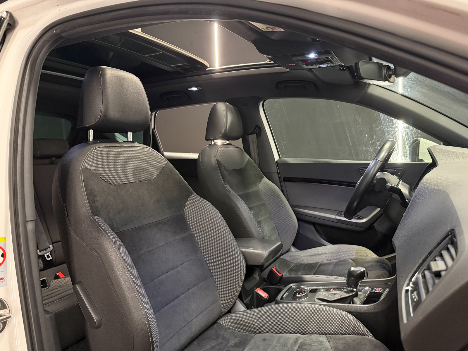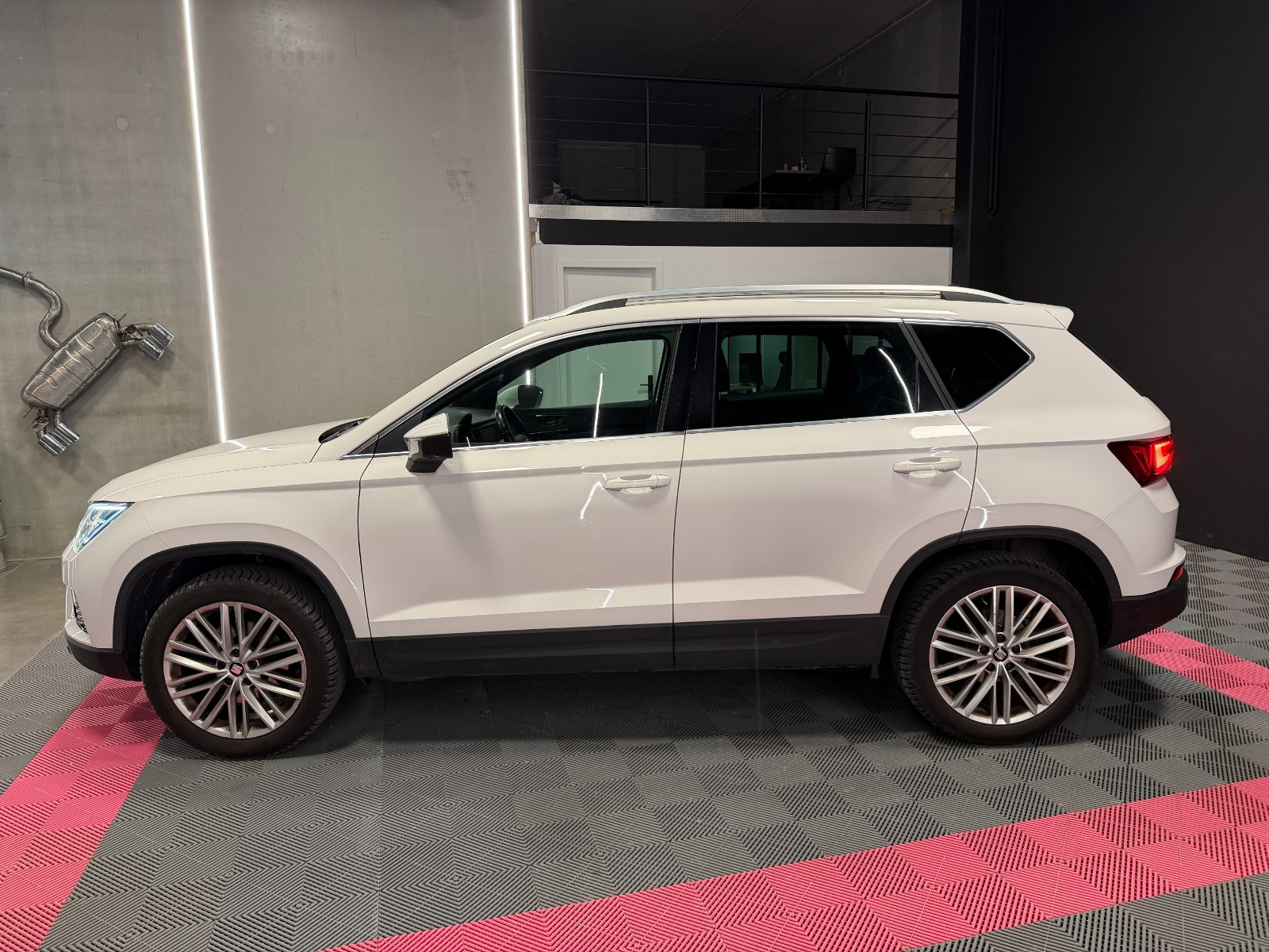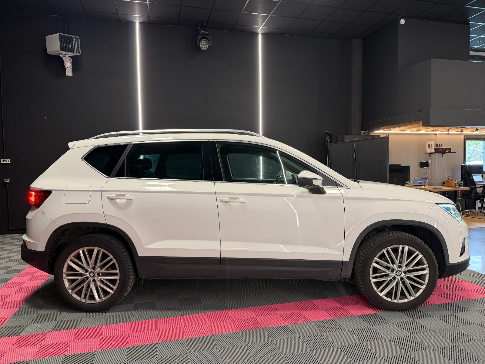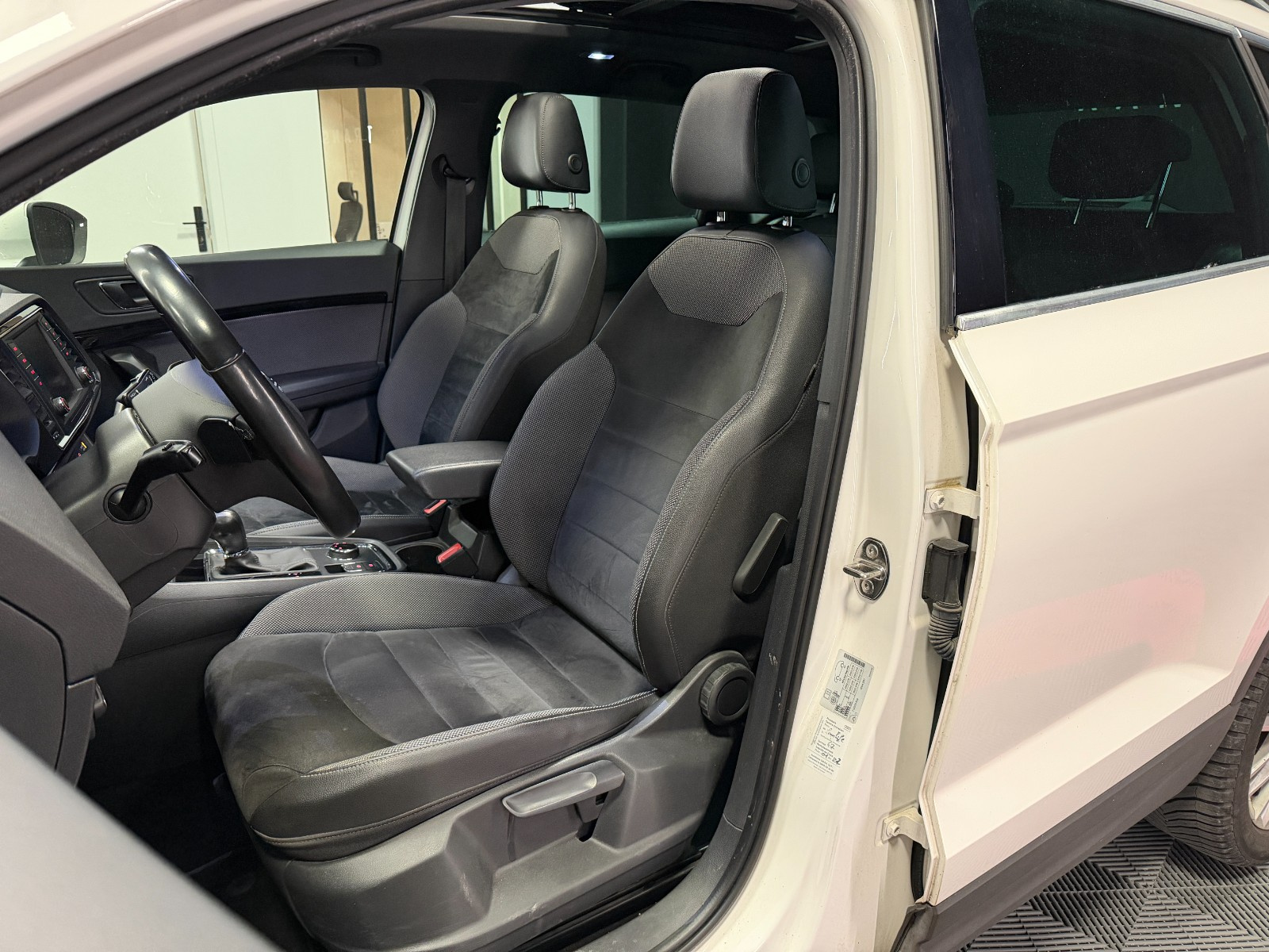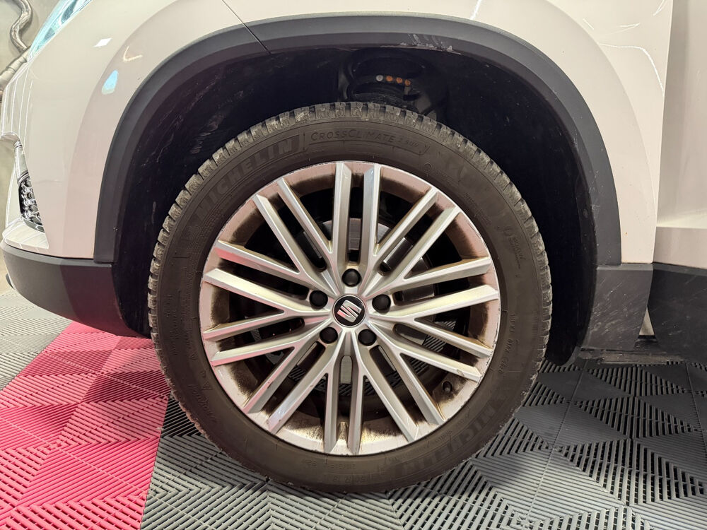 SEAT ATECA 1 5 TSI 150 ch ACT Start/Stop DSG7 Xcellence// Accoudoir arrière Accoudoir avant Aide au démarrage en pente Aide au parking Aide parking avec caméra de recul Airbag conducteur Airbag genoux conducteur Airbag latéral conducteur et passager Airbag passager Allumage automatique des phares Antenne automatique/antenne dans les vitres Antidémarrage Apple CarPlay Assistance au freinage d'urgence Banquette arrière partagée et rabattable Boîte automatique 7 vitesses Cache bagages Caméra de recul Ceintures avant avec prétensionneurs Climatisation automatique Contrôle actif de pression pneus Contrôle de traction Différentiel à glissement limité Démarrage sans clé Détecteur de fatigue Détecteur pluie Ecran tactile Feux arrière LED Feux automatiques Feux avant LED Feux de jour Feux indicateurs de changement de direction Filtre à particules Fixation pour siège enfant Frein de stationnement électrique Hayon électrique Hayon électrique main-libre Indicateur de température extérieur Installation téléphone mains libres Interface Bluetooth Kit de réparation pneus (Mobile Tyre) Levier de vitesses en cuir Lève-vitres arrière électriques Lève-vitres avant électriques Oeïllets de fixation Ordinateur de bord Pare chocs couleur véhicule Phares antibrouillard Phares directionnels Radar de stationnement arrière Rampes/barres de toit Rétroviseur intérieur électrochrome Rétroviseur passager réglable électriquement Rétroviseurs extérieurs dégivrants Rétroviseurs extérieurs rabattable électriquement Rétroviseurs extérieurs électriques Select Drive Siège conducteur confort Siège conducteur réglable en hauteur Siège conducteur à réglage lombaire Siège passager confort Siège passager réglable en hauteur Siège passager à réglage lombaire Sièges avant Sport Sièges en alcantara Sièges en similicuir Système Start/Stop Système anti bloquage (ABS) Système audio à commande vocale Système de freinage d'urgence urbain Système de navigation Système de récupération d'énergie Système information conducteur Sélection du mode de conduite USB jack Verrouillage centralisé Vitres teintées Volant en cuir Volant sport