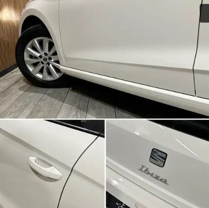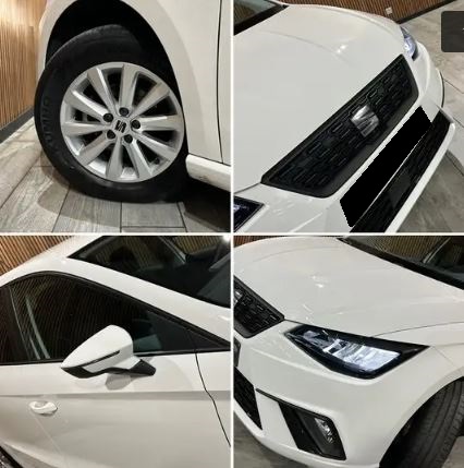 SEAT IBIZA (1.0 TSI 95ch CARPLAY/REGVIT/PARKSENSOR/JA/GAR12MOIS) BLANC Tissu Noir.