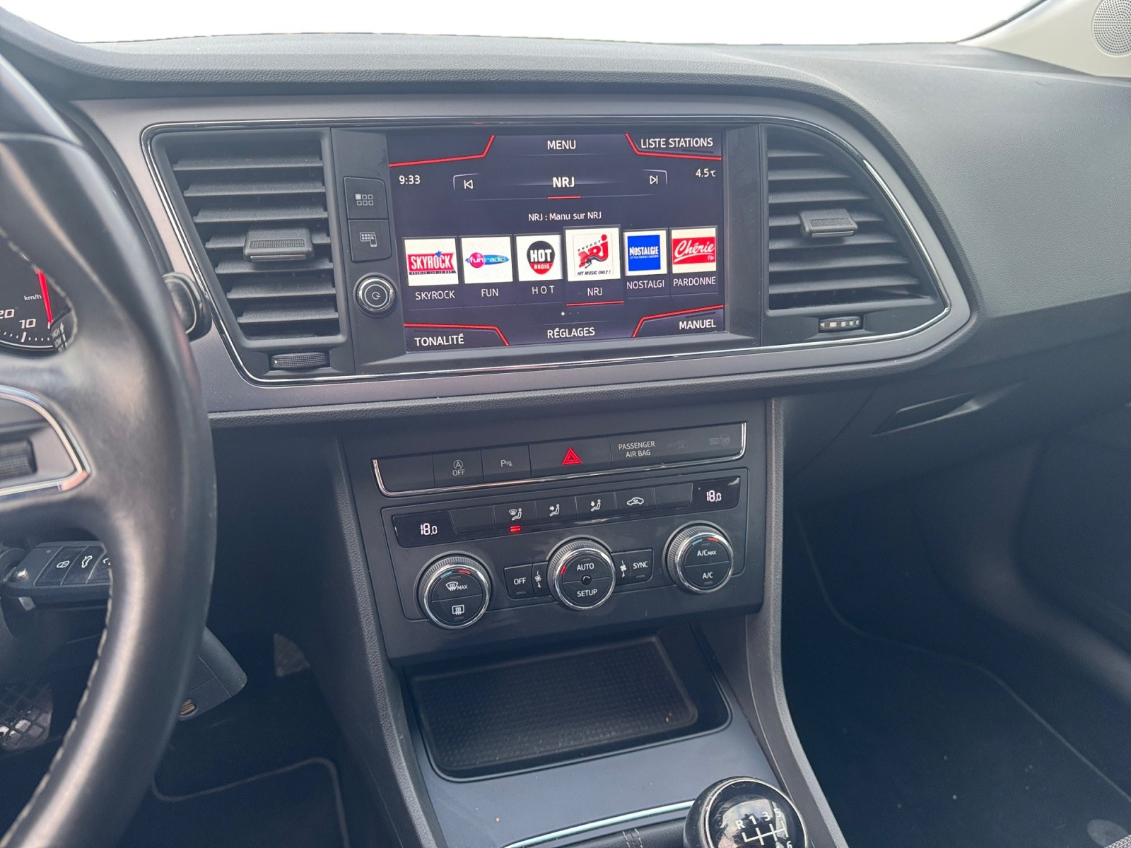 SEAT LEON 1 2 TSI 110 Start/Stop Style// Accoudoir avant Airbag conducteur Airbag latéral conducteur et passager Airbag passager Airbags rideaux arrière Airbags rideaux avant Allumage automatique des phares Apple CarPlay Banquette arrière partagée et rabattable Caméra de recul Climatisation manuelle Contrôle de traction Contrôle pression pneus (RDC) Détecteur pluie ESP (programme de stabilité électronique) Feux arrière LED Feux avant LED Fixation pour siège enfant Frein de stationnement électrique Indicateur de température extérieur Installation téléphone mains libres Jantes/roues en alliage léger 16 Kit de réparation pneus (Mobile Tyre) Levier de vitesses en cuir Lunette arrière électrique Lève-vitres avant électriques Ordinateur de bord Phares antibrouillard Radar de stationnement arrière Radar de stationnement avant Rétroviseur intérieur électrochrome Siège conducteur réglable en hauteur Siège conducteur à réglage lombaire Siège passager à réglage lombaire Soundsystem Système anti bloquage (ABS) Système de navigation Système information conducteur USB jack Verrouillage centralisé télécommandé Volant en cuir