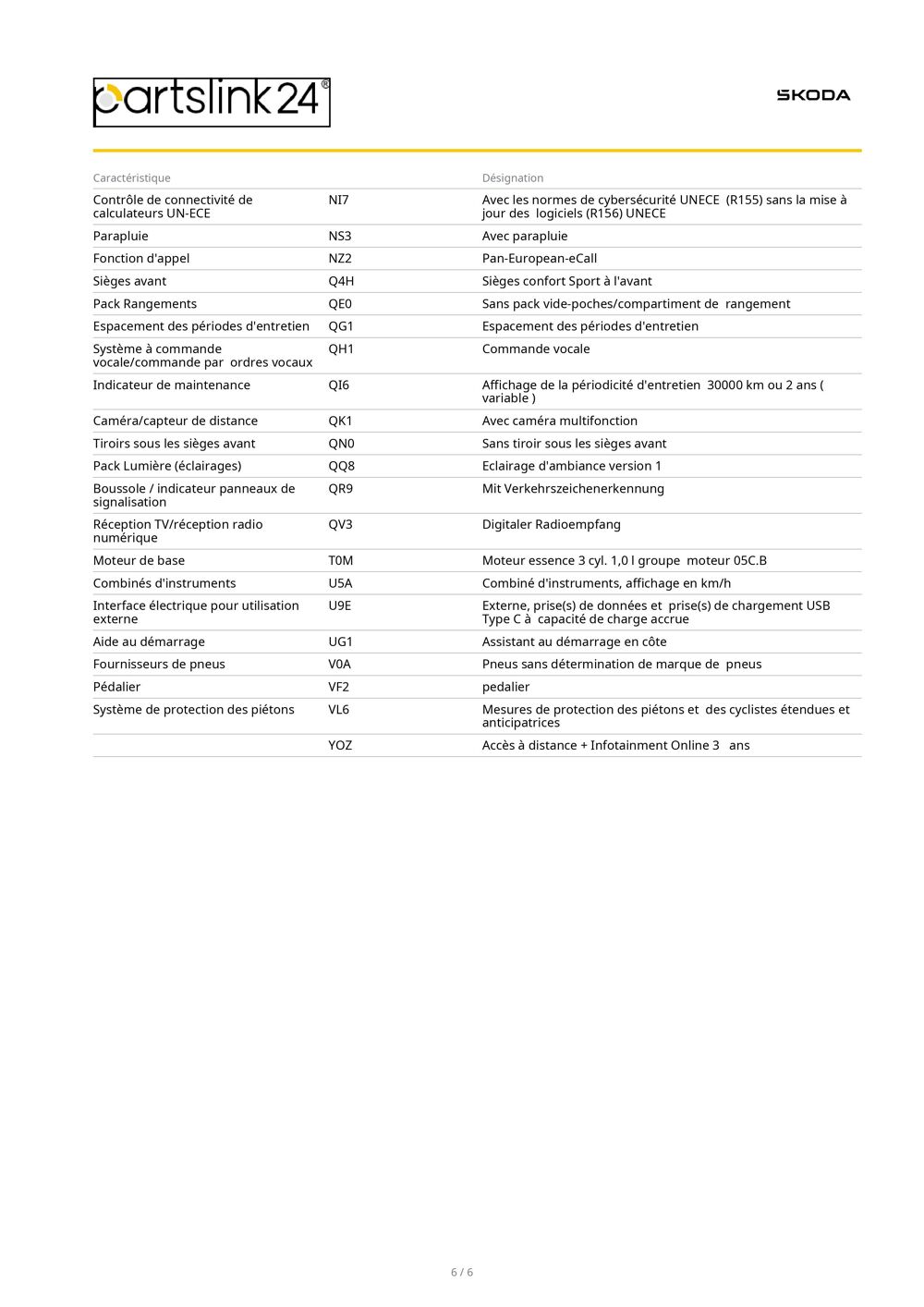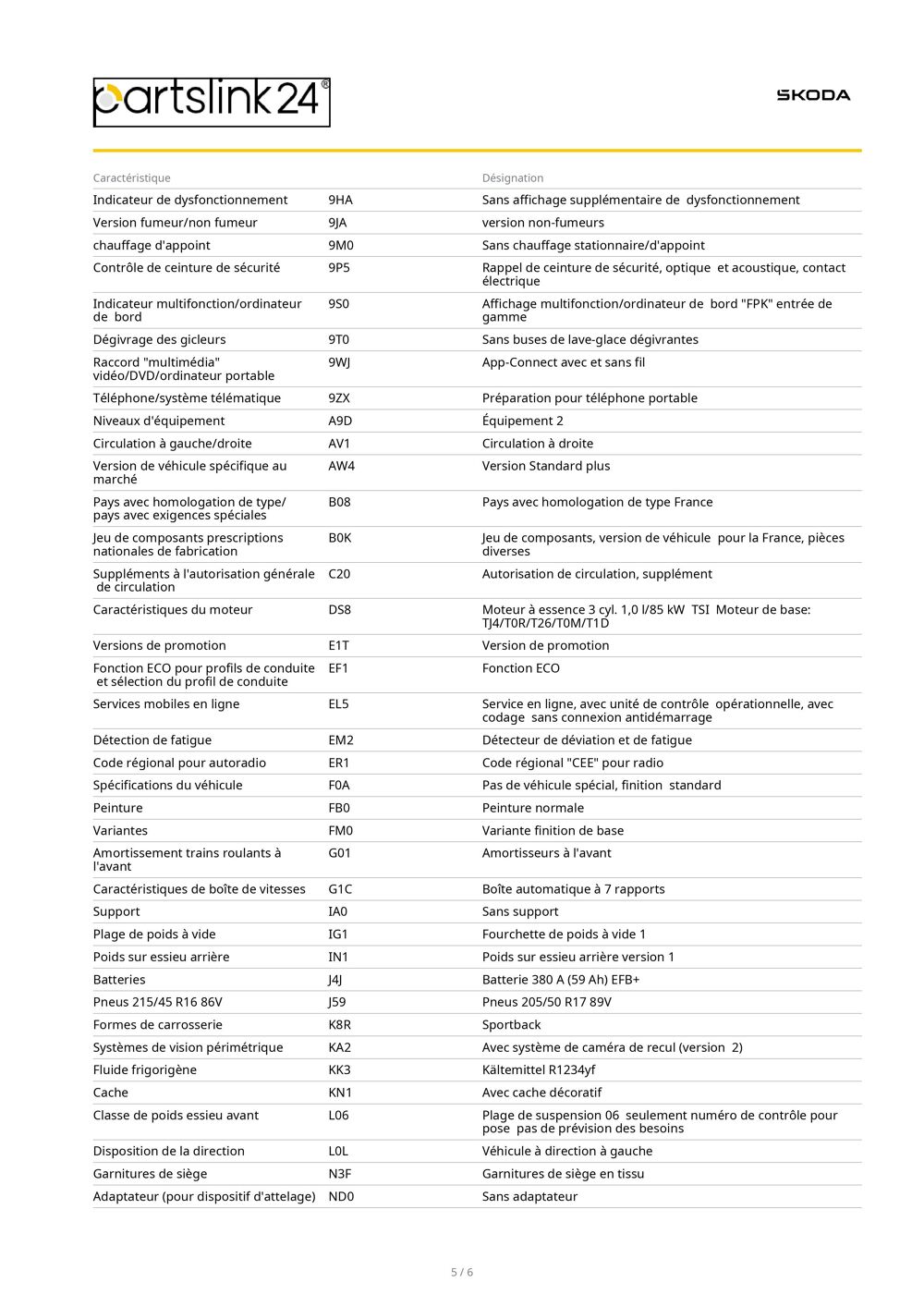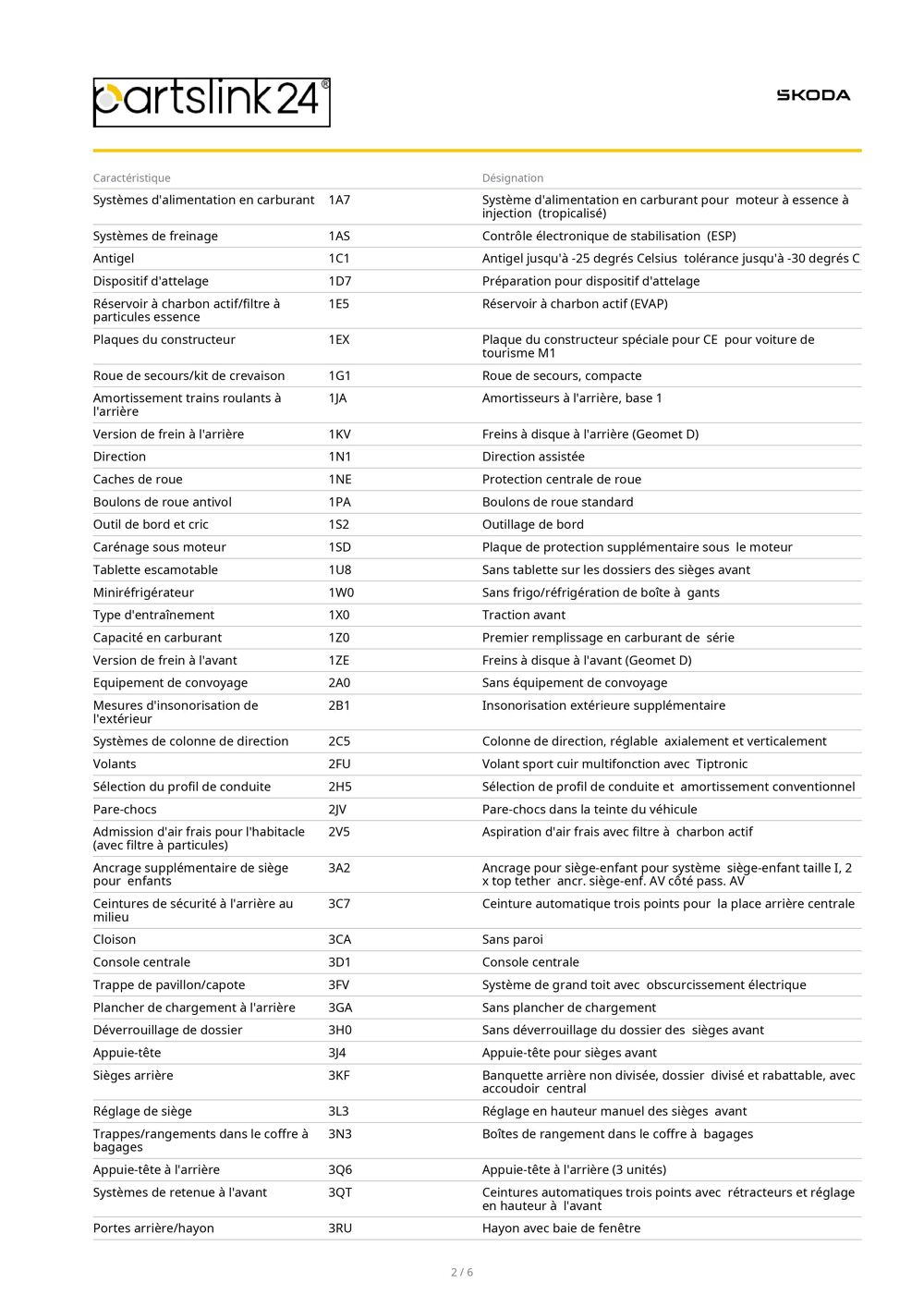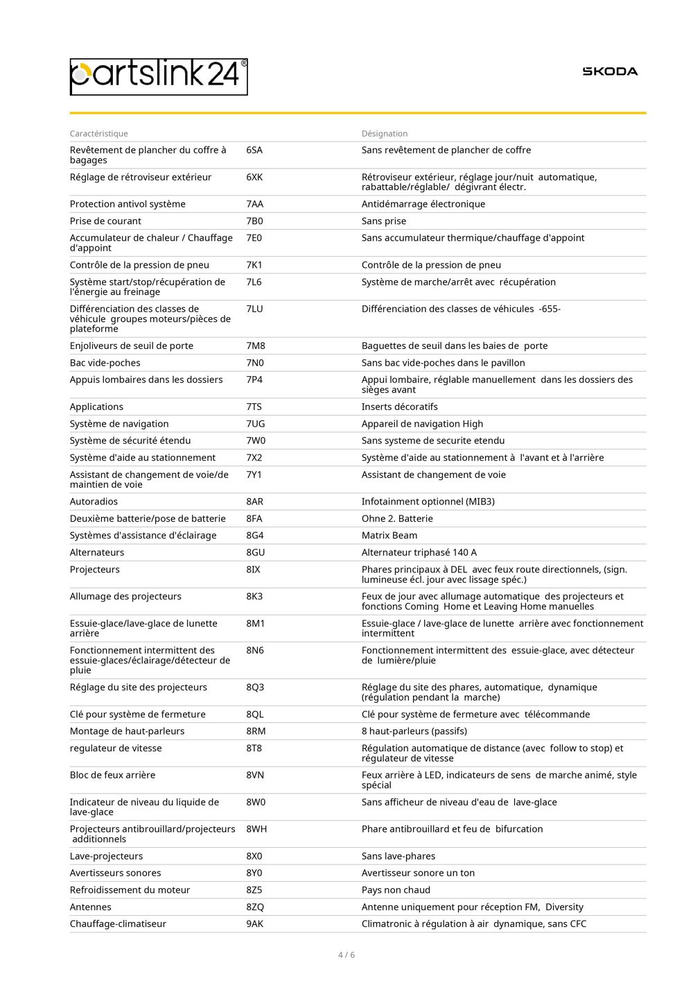 Informations clés : voiture SKODA Berline