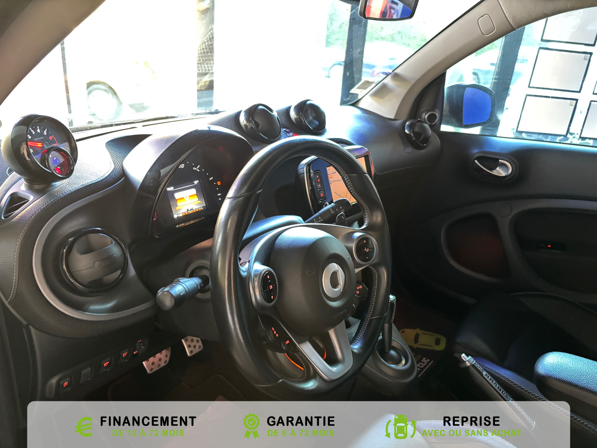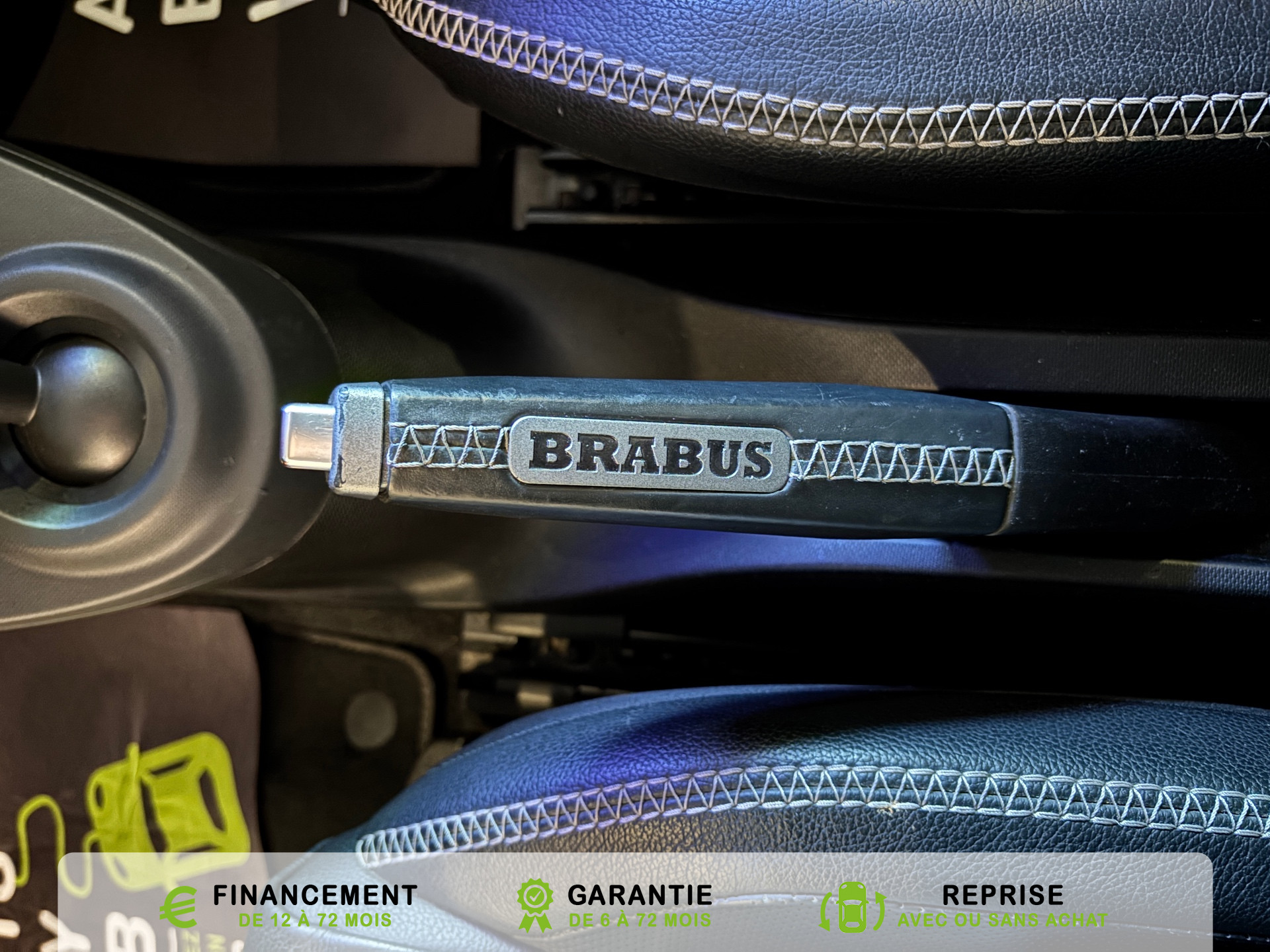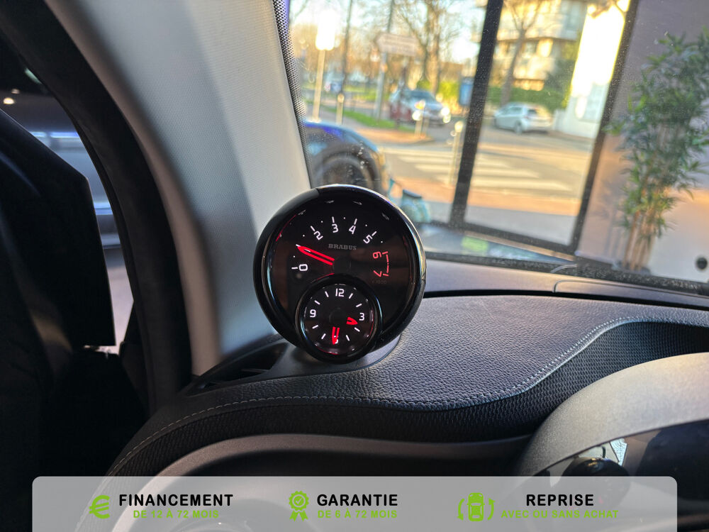 Equipements supplémentaires : 3eme feu stop, Affichage de la temperature exterieure, avertisseur de verglas, Aide au demarrage en cote, Airbag genoux pour conducteur, Airbags conducteur et passager AV, Airbags lateraux pour conducteur et passager AV (airbags tete/thorax), Avertisseur d'oubli de ceinture pour le conducteur et le passager AV, Boite a gants verrouillable, Boite de vitesses automatique double embrayage a 6 vitesses twinamic a reglage sportif dotee d'une, Cache-bagages a enrouleur (avec filet de rangement), Capot AV verrouillable manuellement, Ceintures de securite 3 points avec pretensionneurs et limiteurs d'effort, Cellule de securite tridion noir, Clignotants avec commande confort par impulsion, Clignotants lateraux blancs, Commande d'ouverture a distance de la partie vitee du hayon via la cle, Compartiment de rangement dans le hayon AR, Console centrale avec double porte-gobelets, Console centrale avec filet de rangement cote passager, Console centrale avec tiroir cote passager, Controle de pression des pneus, Coques de retroviseurs exterieurs dans le coloris de la cellule de securite tridion, Correcteur de portee des phares (commande manuelle), Direction parametrique a demultiplication variable et asservie a la vitesse et demultiplication, Drive lock: Systeme automatique de fermeture des portes au demarrage, Eclairage du coffre, Eclairage interieur, Essuie-glace AR a cadencement et fonction de lavage/balayage automatique, Fixations de siege enfant i-Size sur le siege passager AV avec desactivation manuelle de l'airbag, Fonction Stop/Start automatique, Garniture Cuir Nappa perfore/Cuir noir, Horloge et compte-tours, Horloge et compte-tours avec monogramme BRABUS, Insert diffuseur arriere finition gris mat, Jupe AR BRABUS dans le ton carrosserie, Kit de depannage avec compresseur electrique, Leve-vitres electriques a l'AV avec fonction confort et protection antipincement, Lunette AR degivrante, Miroir de courtoisie dans le pare-soleil cotes conducteur et passager, Monogramme Xclusive sur le triangle de retroviseur, Oeillets d'arrimage dans le coffre, Pack Confort, Pack Vision, Pedalier sport Brabus, Pedalier sport en acier inoxydable brosse avec picots en caoutchouc, Planche de bord BRABUS imitation cuir/tissu noir, partie centrale des contre-portes en tissu noir et, Planche de bord et partie centrale des contre-portes en tissu, Pneus ete, Poches aumonieres au dos des sieges conducteur et passager AV, Poignee de frein a main BRABUS en cuir avec surpiqures et monogramme BRABUS, Poignee de maintien pour le passager, Poignees de porte exterieures finition noir, Poignees de porte interieures en finition chrome mat, Pommeau de levier de vitesses BRABUS en cuir avec surpiqures et logo BRABUS, Pommeau du levier de vitesses en cuir noir, Prise 12 volts avec cache situe dans la console centrale, Projecteurs antibrouillards, Projecteurs halogenes avec feux de jour a LED integres, Radar anticollision avec alerte visuelle et sonore, Regulateur et limitateur de vitesse, Regulation du comportement dynamique (ESP), Reservoir de carburant 35 litres, Retroviseurs exterieurs electriques degivrants, Sieges AV chauffants, Sieges integraux de securite, Sieges sport BRABUS avec garnitures en cuir Nappa perfore/cuir noir avec surpiqures grises, Spoiler AV BRABUS dans le ton carrosserie, Spot de lecture cote passager AV, Systeme antiblocage des roues (ABS) avec repartiteur electronique de freinage, Systeme d'echappement sport BRABUS avec sorties facon chrome, Systeme de sonorisation JBL avec amplificateur DSP, 6 canaux d'une puissance totale de 240 W, avec, Systeme de stabilisation en cas de vent lateral, Tapis de sol BRABUS en velours noir avec logo BRABUS, Toit panoramique avec pare-soleil, Train de roulement sport BRABUS Performance surbaisse de 10 mm et reglage specifique de l'ESP, Triangle de presignalisation, Verrouillage centralise avec telecommande radio, temoin optique de fermeture et antidemarrage, Vide-poches dans les portes, Volant multifonctions a 3 branches en cuir, Zones de deformations AV et AR, Accoudoir central relevable, Aide au stationnement AR, Alarme antivol, Avertissement de porte ouverte, Calandre noir brillant, Eclairage d'ambiance avec eclairage indirect des portes et des planchers AV et de la console, sièges chauffant, Pack Stationnement, Pack Style Exterieur, Pack Style Interieur, Peinture gris titania grey mat, Reception radio numerique : reception des signaux DAB, DAB+ et DMB audio, Retroviseur interieur a commutation jour/nuit automatique, Sangle pour fixation d'objet sur le siege passager, Seuil de portes Smart,