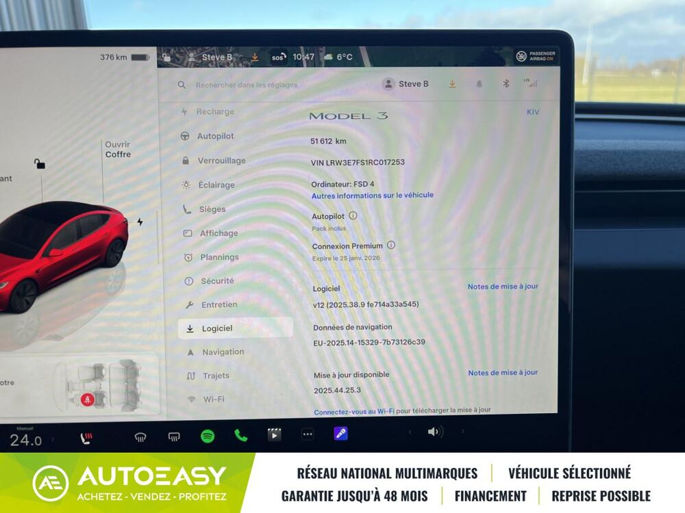 Tesla Model 3 Highland Standard 283 cv 1ére Main - 4 pneus neufs ELECTRIQUE AUTOMATIQUE 28990 euros 52000 kmContact : Steve BLONDEL