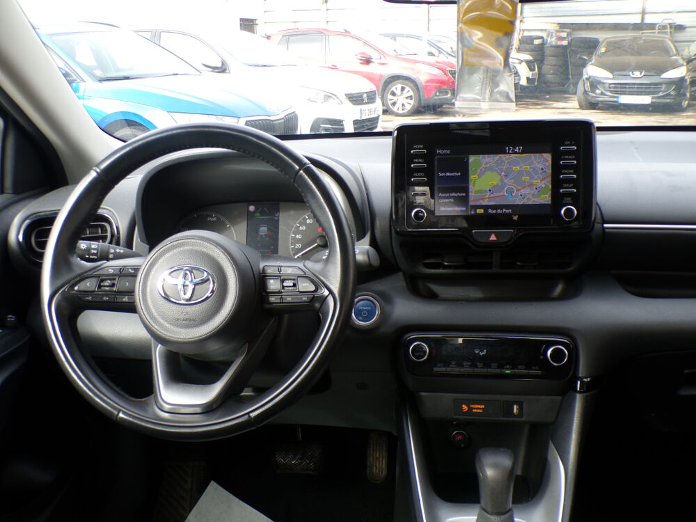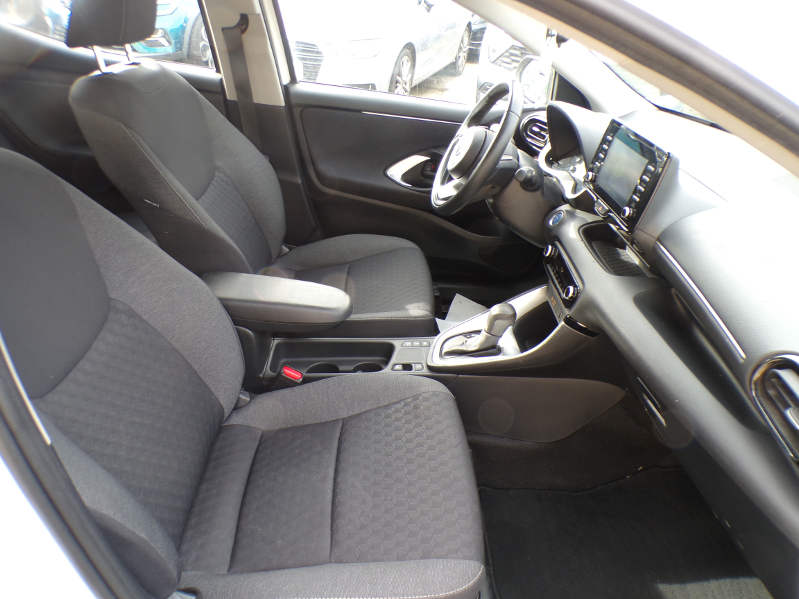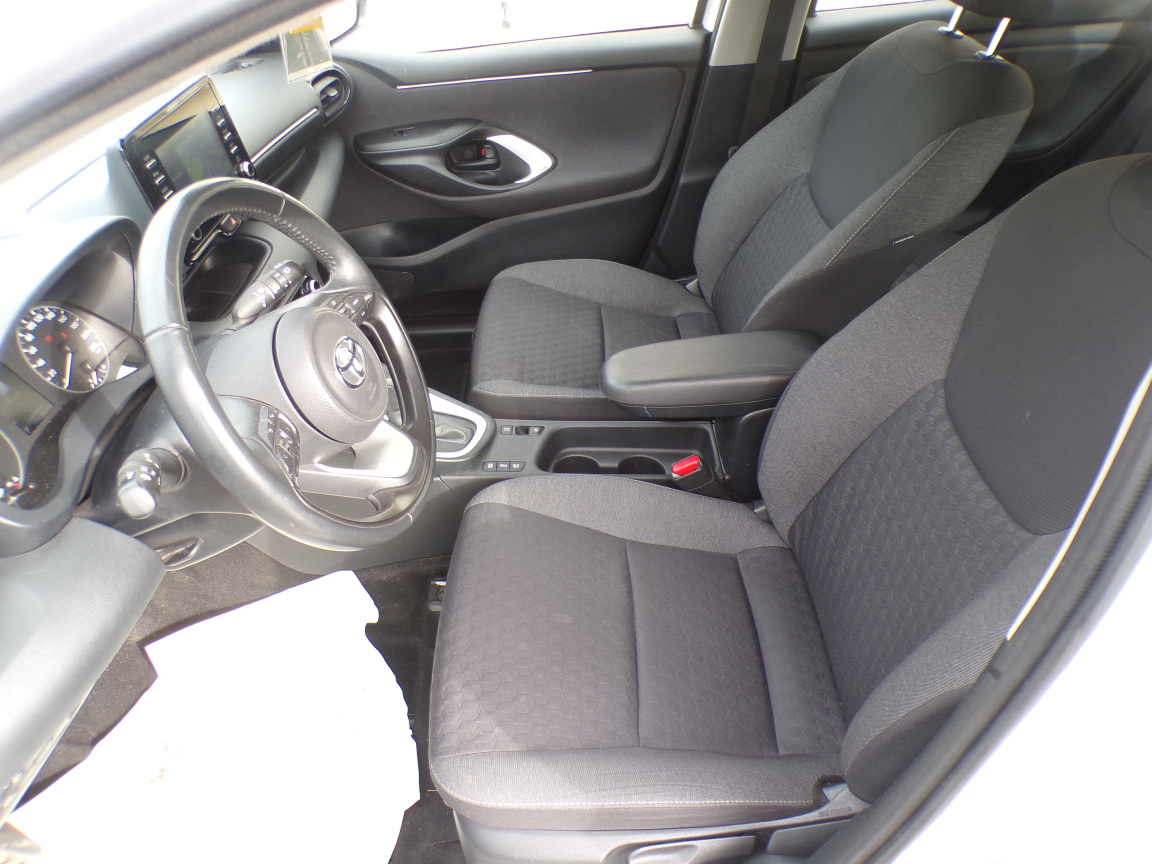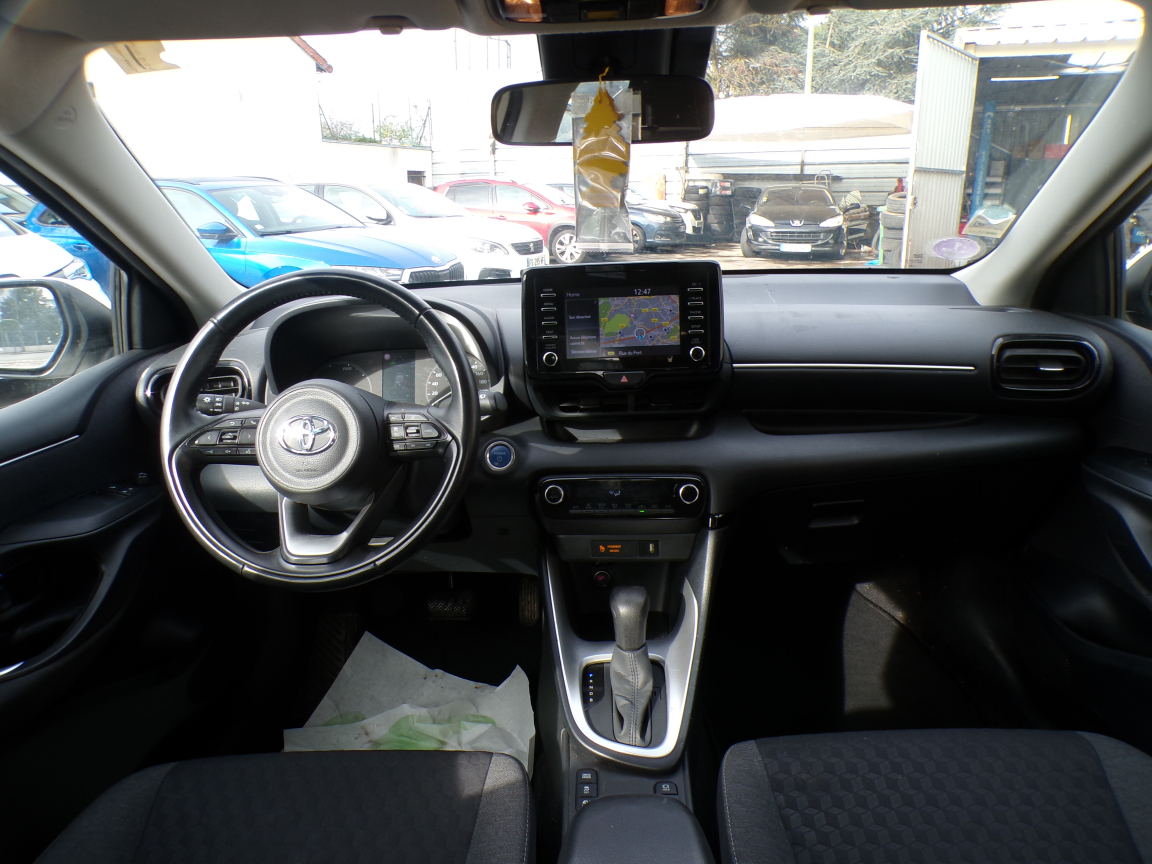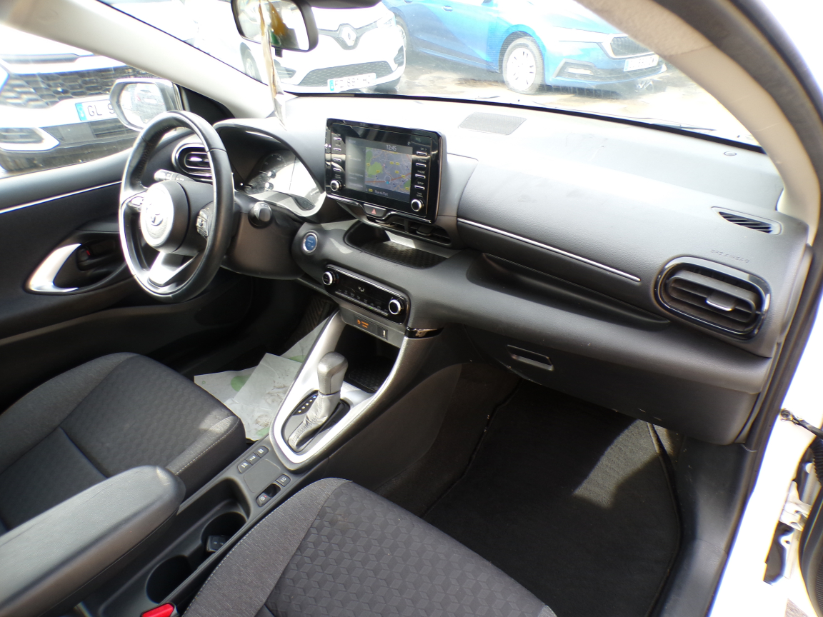 TOYOTA TOYOTA YARIS (Yaris Hybride 116h Dynamic Business + Programme Beyond Zero Academy) BLANC Noir.Accoudoir central, Airbags centraux, Allumage automatique des feux, Antenne de toit aileron de requin, Banquette AR rabattable 60/40, Caméra de recul, Ciel de toit gris clair, Climatisation automatique, Détecteur de pluie, Double plancher du coffre, Ecran tactile 7" multifonction, Enjoliveurs 15", Feux de jour à LED, Feux stop à LED, Frein de parking électrique, Haut-parleurs x 4, Peinture Blanc Pur, Peinture non métallisée, Programme "Beyond Zero Academy", Projecteurs antibrouillard, Projecteurs halogènes avec feux de jour, Rétroviseurs extérieurs chauffants, Rétroviseurs extérieurs couleur carrosserie, Sellerie tissu, Services connectés MyT, Smart Entry & Démarrage sans clé, Système d'appel d'urgence automatique "E-Call", Système de fixation ISOFIX aux places AR, Tableau de bord moussé, Toyota Safety Sense Système de sécurité précollision avec détection des véhicules, Toyota Touch & App compatible avec Apple CarPlay et Android Auto, Toyota Touch&Go (système de navigation à écran tactile avec info trafic et cartographie européenne), Toyota Touch: radio digitale (DAB), Volant en cuir, 1 vitesses, 5 places, puissance fiscal : 5, puissance din : 92, émission de CO2 : 0 g/km.