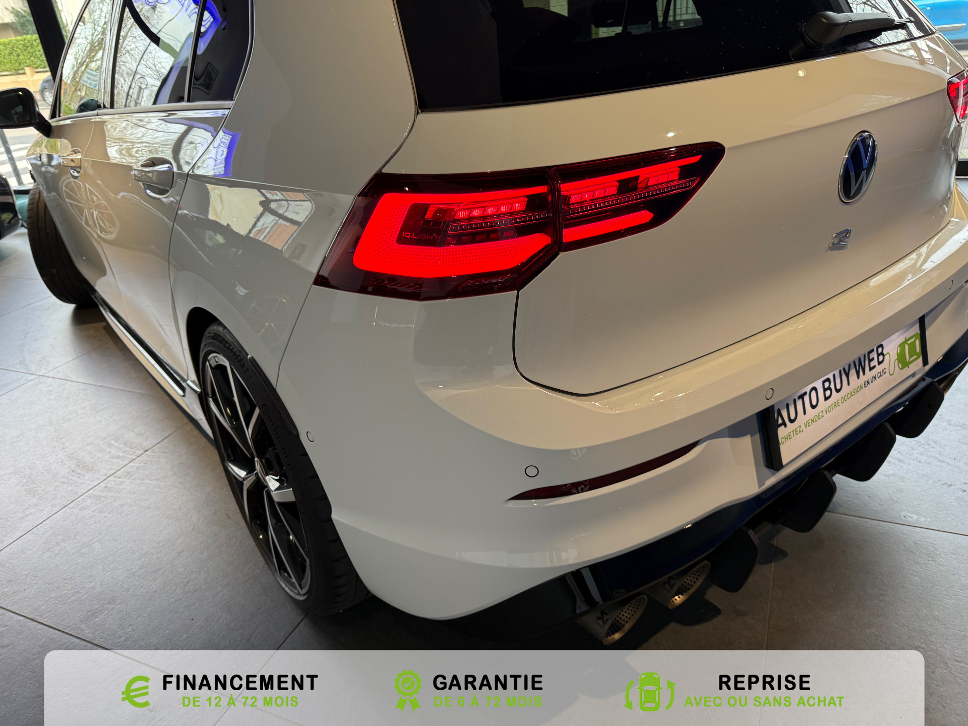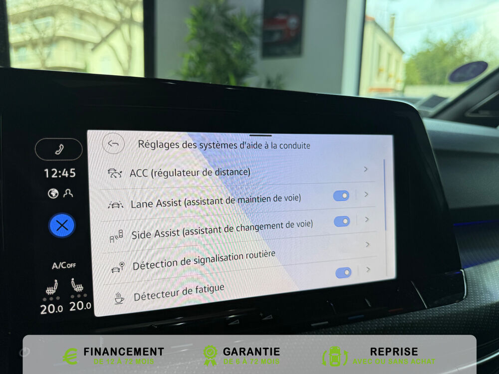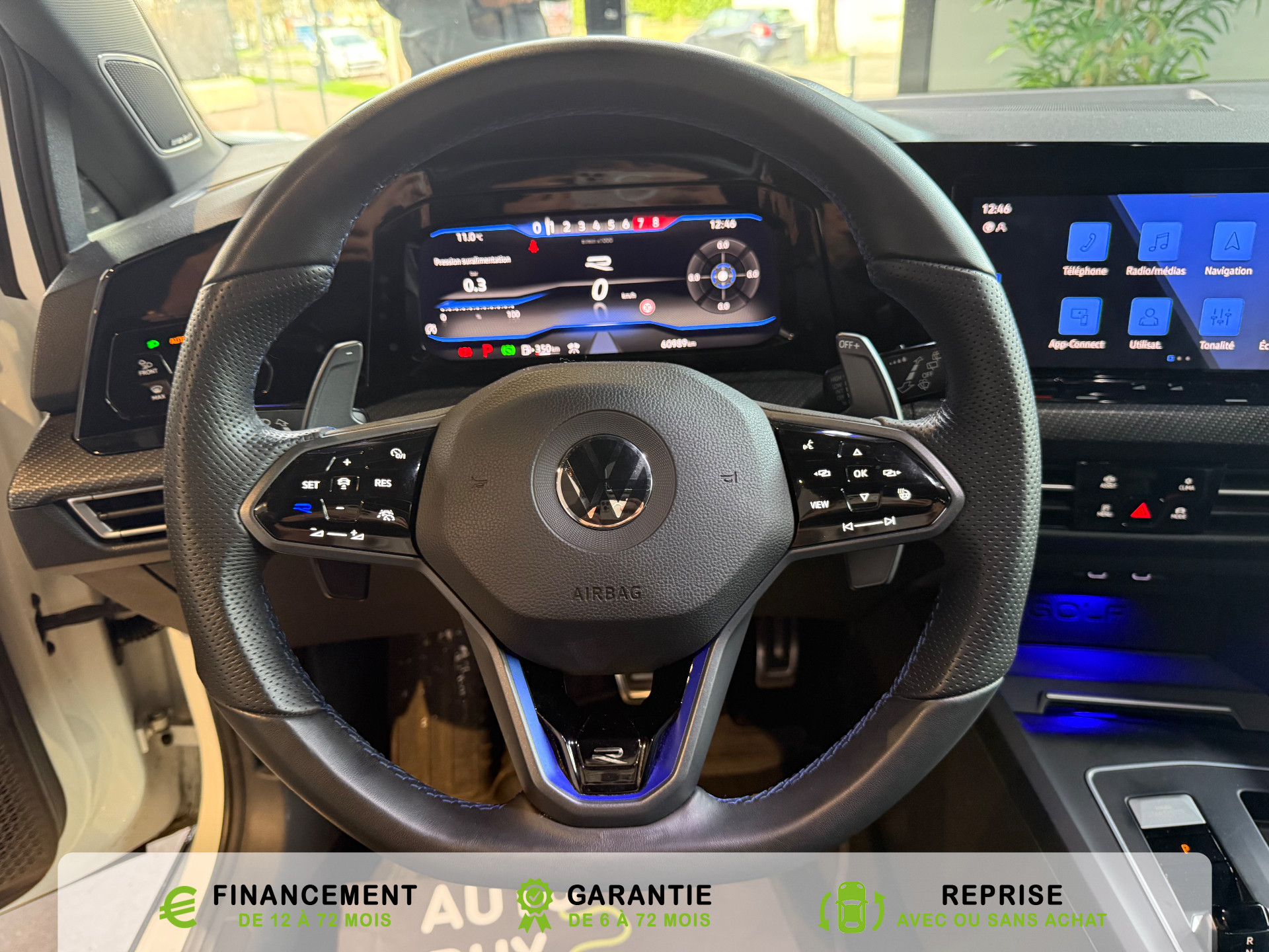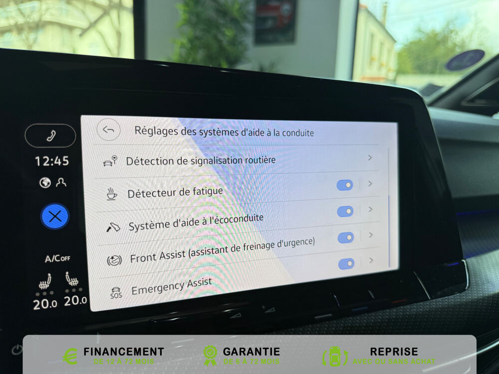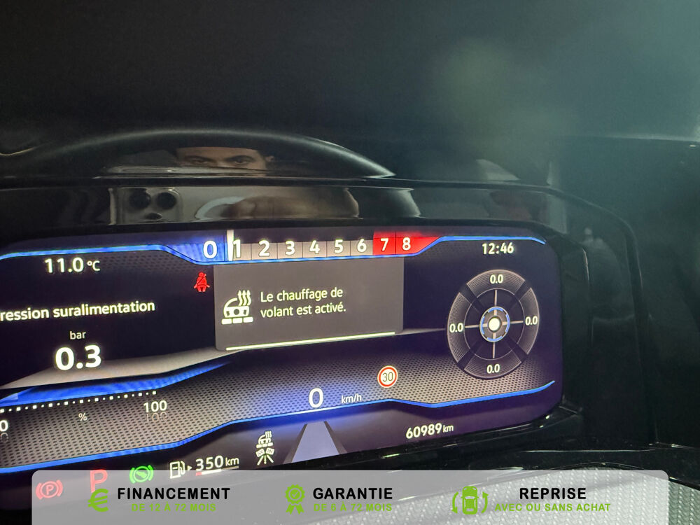 Equipements supplémentaires : 2 interfaces USB-C a l'AV, 2 interfaces USB-C a l'AV et 2 prises de chargement USB-C derriere laccoudoir pour les passagers AR, 2 prise USB a l'AR de l'accoudoirs central, 2 prises de chargement USB-C derriere l'accoudoir pour les passagers AR, 2 spots de lecture AV et 2 spots AR, Accoudoir central AR rabattable avec 2 portes-boissons, Accoudoir central AV reglable en hauteur et en longueur avec compartiment de rangement, Activation automatique du signal de detresse en cas de freinage d'urgence, Airbags de tete pour passagers AV/AR, Airbags frontaux AV conducteur et passager (Airbag passager desactivable), Airbags lateraux AV, Alerte de perte de pression des pneus, App-Connect sans fil, affichage et controle via l'ecran tactile de la voiture du contenu,, Appuis-tete AR reglables en hauteur, Appuis-tete reglables en hauteur sur les sieges AV et AR, Assistant de conduite Travel Assist avec Emergency Assist, Avertisseur sonore et temoin d'oubli du port de la ceinture de securite a l'AV et a l'AR, Badges GTI sur les ailes AV et inscription GTI sur le hayon, Baguette chromee sur les vitres laterales, Baguette lumineuse entre les projecteurs, Banquette AR rabattable 2/3-1/3 avec trappe a skis, Blocage electronique du differentiel XDS, Cable adaptateur USB-C vers USB-A, Cache-bagages amovible, Ceintures de securite automatiques AV 3 points a enrouleur avec pretensionneurs, Ceintures de securite automatiques AV 3 points a enrouleur, reglables en hauteur,, Cerclage chrome des commandes des vitres, de reglage des retroviseurs et des aerateurs, Chargeur induction, Chrome sur le bouclier AV et le pare-choc AR, Commade vocale intuitive, Correcteur electronique de trajectoire ESP, amplificateur de freinage d'urgence, antiblocage des, Double sortie d'echappement chromee a gauche et double sortie d'echappement chromee a droite, E-call service: Appel d'urgence manuel ou automatique, Eclairage a LED de la plaque d'immatriculation AR, Eclairage d'ambiance - 30 couleurs et eclairage de plancher a l'AV, Eclairage d'ambiance 30 couleurs, Eclairage d'ambiance exterieur, Eclairage de plancher a LED a l'AV avec possibilite de selectionner la couleur d'eclairage, Ecrous antivol, Elements de carrosserie specifiques R, Essuie-glace AR intermittent avec lave-glace, Fatigue Detection : systeme de detection de fatigue du conducteur qui analyse le comportement du, Feu AR de brouillard d'un cote, feux de recul des deux cotes, Feux AR a LED avec clignotants AR defilants, Front Asisst avec detecteur des pietons, Indicateur de temperature exterieure avec avertisseur de gel, Interface telephone Bluetooth, Interface telephonique avec fonction de charge inductive, Keyless Access Advanced sans alarme : Systeme de verrouillage/deverrouillage et de demarrage sans, Kit de depannage : compresseur 12 V et produit d'etancheite de pneu, Lane Assist: Assistant de maintien dans la voie, Lisere bleu dans la calandre et les phares, Mesures supplementaires de protection des pietons, Miroirs de courtoisie eclaires dans les pare-soleils, Monogrammes R sur la calandre et le hayon, badges R sur les ailes avant, Oeillets d'arrimage ISOFIX (dispositif pour fixation de 2 sieges-enfants sur la banquette AR), Pack Travel Assist avec Emergency Assist, Pack Visibilite, Pare-chocs, boitiers de retroviseurs exterieurs et poignees de portes dans la couleur carrosserie, Park Assist: Systeme d'assistance au stationnement en creneau et en bataille, Park Assist: Systeme d'assistance au stationnement en creneauet et en bataille, ParkPilot, aide au stationnement AV/AR, Pedalier et repose-pied en acier inoxydable brosse, Peinture unie Blanc Pur, Pommeau de levier de vitesse en style aluminium, Prise 12 V dans le coffre, Projecteurs antibrouillard AV avec eclairage statique d'intersection, Projecteurs antibrouillard avec feux de braquage, Projecteurs IQ.Light - Matrix LED, Protection antidemarrage, Radio Composition, 7 HP et ecran 8, Rangement et prise 12 V a l'AV, Rear Assist: Camera de recul avec visualisation de la zone situee a l'AR du vehicule, Reception radio numerique DAB+, Reconnaissance des panneaux de signalisation, Reglage du site des phares, manuel, Regulateur de vitesse adaptatif et predictif ACC avec limiteur de vitesse, Retroviseur interieur a reglage jour/nuit automatique, Retroviseurs exterieurs a reglage, rabattement et degivrage electriques, avec fonction memoire, Retroviseurs exterieurs avec degivrage separe, Retroviseurs exterieurs rabattables et reglables electriquement, Revetement de porte et lateral en feuille de mousse et tissu, Selection du profil de conduite, Service