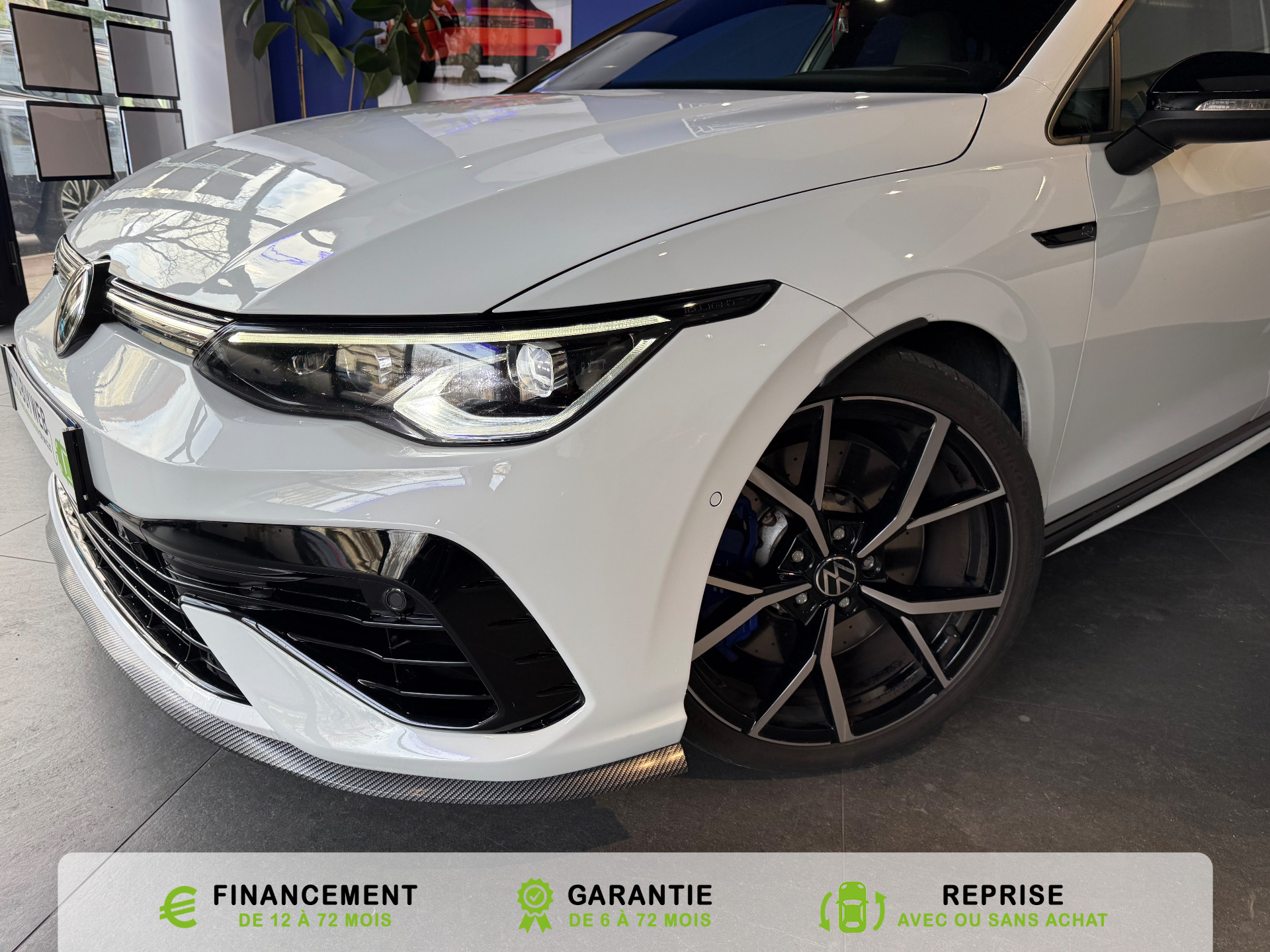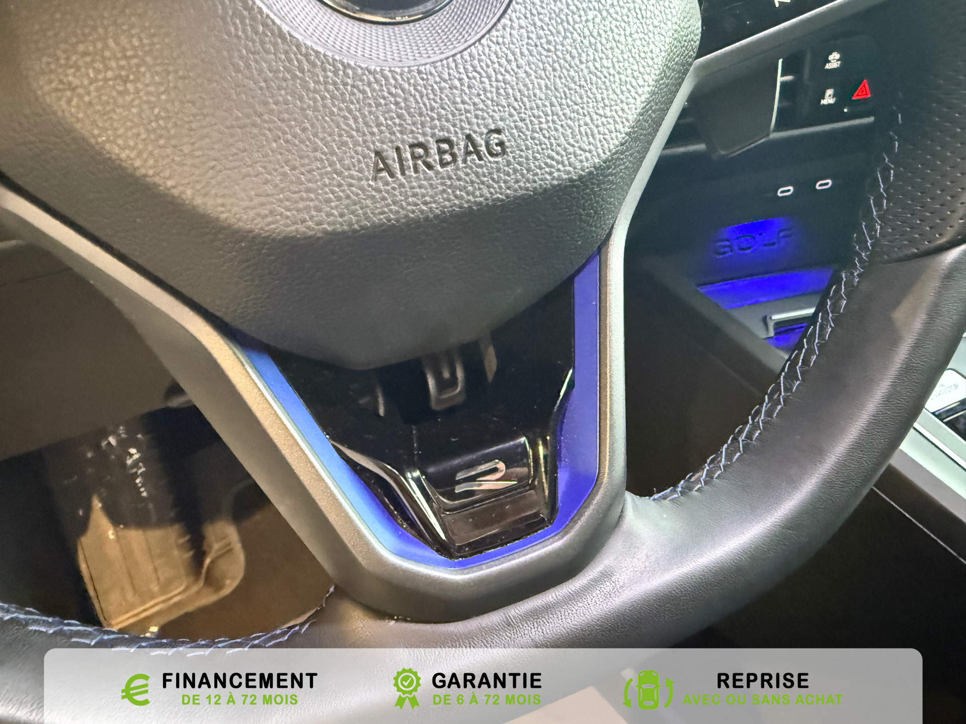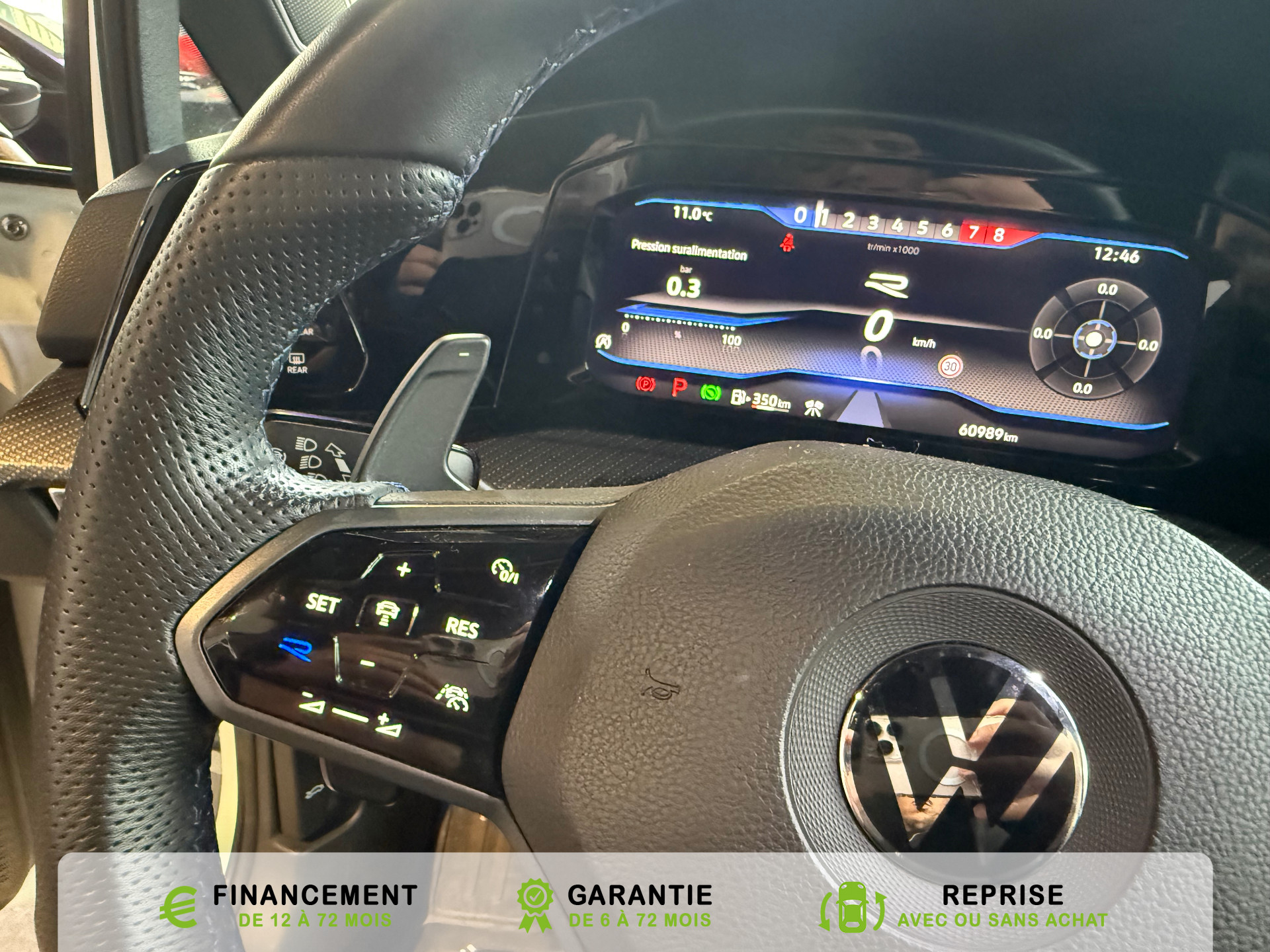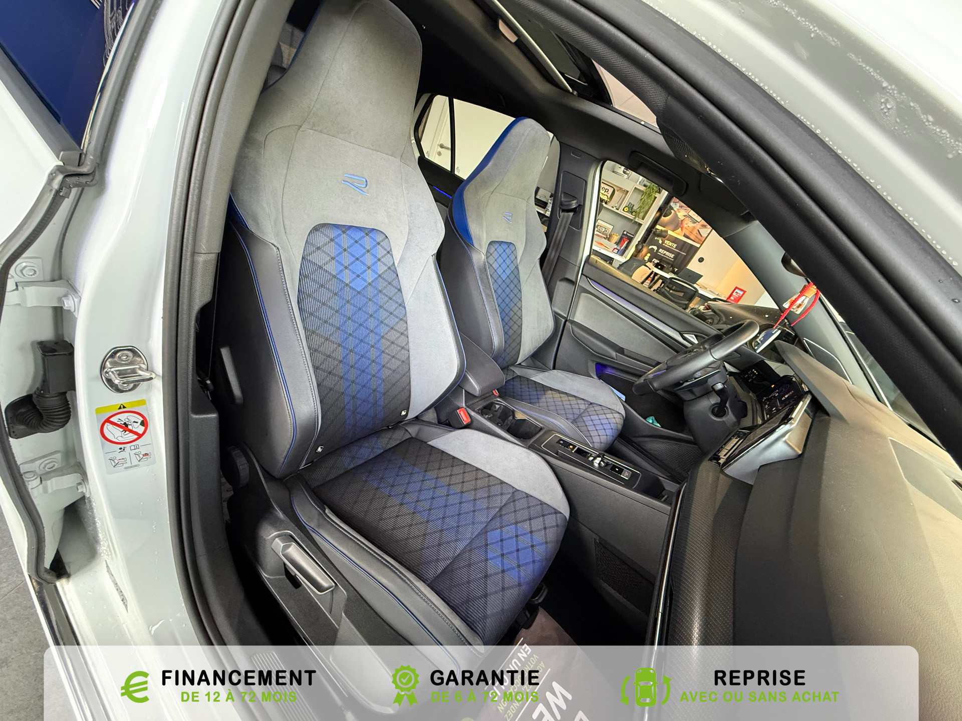 Equipements supplémentaires : 2 interfaces USB-C a l'AV, 2 interfaces USB-C a l'AV et 2 prises de chargement USB-C derriere laccoudoir pour les passagers AR, 2 prise USB a l'AR de l'accoudoirs central, 2 prises de chargement USB-C derriere l'accoudoir pour les passagers AR, 2 spots de lecture AV et 2 spots AR, Accoudoir central AR rabattable avec 2 portes-boissons, Accoudoir central AV reglable en hauteur et en longueur avec compartiment de rangement, Activation automatique du signal de detresse en cas de freinage d'urgence, Airbags de tete pour passagers AV/AR, Airbags frontaux AV conducteur et passager (Airbag passager desactivable), Airbags lateraux AV, Alerte de perte de pression des pneus, App-Connect sans fil, affichage et controle via l'ecran tactile de la voiture du contenu,, Appuis-tete AR reglables en hauteur, Appuis-tete reglables en hauteur sur les sieges AV et AR, Assistant de conduite Travel Assist avec Emergency Assist, Avertisseur sonore et temoin d'oubli du port de la ceinture de securite a l'AV et a l'AR, Badges GTI sur les ailes AV et inscription GTI sur le hayon, Baguette chromee sur les vitres laterales, Baguette lumineuse entre les projecteurs, Banquette AR rabattable 2/3-1/3 avec trappe a skis, Blocage electronique du differentiel XDS, Cable adaptateur USB-C vers USB-A, Cache-bagages amovible, Ceintures de securite automatiques AV 3 points a enrouleur avec pretensionneurs, Ceintures de securite automatiques AV 3 points a enrouleur, reglables en hauteur,, Cerclage chrome des commandes des vitres, de reglage des retroviseurs et des aerateurs, Chargeur induction, Chrome sur le bouclier AV et le pare-choc AR, Commade vocale intuitive, Correcteur electronique de trajectoire ESP, amplificateur de freinage d'urgence, antiblocage des, Double sortie d'echappement chromee a gauche et double sortie d'echappement chromee a droite, E-call service: Appel d'urgence manuel ou automatique, Eclairage a LED de la plaque d'immatriculation AR, Eclairage d'ambiance - 30 couleurs et eclairage de plancher a l'AV, Eclairage d'ambiance 30 couleurs, Eclairage d'ambiance exterieur, Eclairage de plancher a LED a l'AV avec possibilite de selectionner la couleur d'eclairage, Ecrous antivol, Elements de carrosserie specifiques R, Essuie-glace AR intermittent avec lave-glace, Fatigue Detection : systeme de detection de fatigue du conducteur qui analyse le comportement du, Feu AR de brouillard d'un cote, feux de recul des deux cotes, Feux AR a LED avec clignotants AR defilants, Front Asisst avec detecteur des pietons, Indicateur de temperature exterieure avec avertisseur de gel, Interface telephone Bluetooth, Interface telephonique avec fonction de charge inductive, Keyless Access Advanced sans alarme : Systeme de verrouillage/deverrouillage et de demarrage sans, Kit de depannage : compresseur 12 V et produit d'etancheite de pneu, Lane Assist: Assistant de maintien dans la voie, Lisere bleu dans la calandre et les phares, Mesures supplementaires de protection des pietons, Miroirs de courtoisie eclaires dans les pare-soleils, Monogrammes R sur la calandre et le hayon, badges R sur les ailes avant, Oeillets d'arrimage ISOFIX (dispositif pour fixation de 2 sieges-enfants sur la banquette AR), Pack Travel Assist avec Emergency Assist, Pack Visibilite, Pare-chocs, boitiers de retroviseurs exterieurs et poignees de portes dans la couleur carrosserie, Park Assist: Systeme d'assistance au stationnement en creneau et en bataille, Park Assist: Systeme d'assistance au stationnement en creneauet et en bataille, ParkPilot, aide au stationnement AV/AR, Pedalier et repose-pied en acier inoxydable brosse, Peinture unie Blanc Pur, Pommeau de levier de vitesse en style aluminium, Prise 12 V dans le coffre, Projecteurs antibrouillard AV avec eclairage statique d'intersection, Projecteurs antibrouillard avec feux de braquage, Projecteurs IQ.Light - Matrix LED, Protection antidemarrage, Radio Composition, 7 HP et ecran 8, Rangement et prise 12 V a l'AV, Rear Assist: Camera de recul avec visualisation de la zone situee a l'AR du vehicule, Reception radio numerique DAB+, Reconnaissance des panneaux de signalisation, Reglage du site des phares, manuel, Regulateur de vitesse adaptatif et predictif ACC avec limiteur de vitesse, Retroviseur interieur a reglage jour/nuit automatique, Retroviseurs exterieurs a reglage, rabattement et degivrage electriques, avec fonction memoire, Retroviseurs exterieurs avec degivrage separe, Retroviseurs exterieurs rabattables et reglables electriquement, Revetement de porte et lateral en feuille de mousse et tissu, Selection du profil de conduite, Service