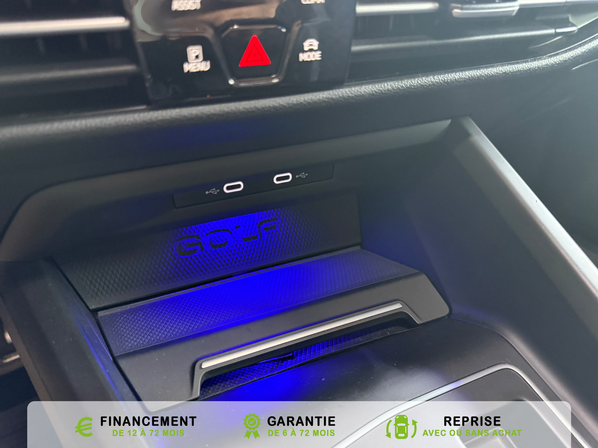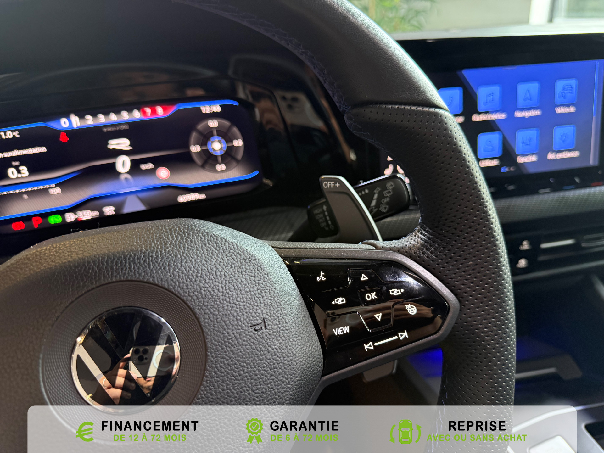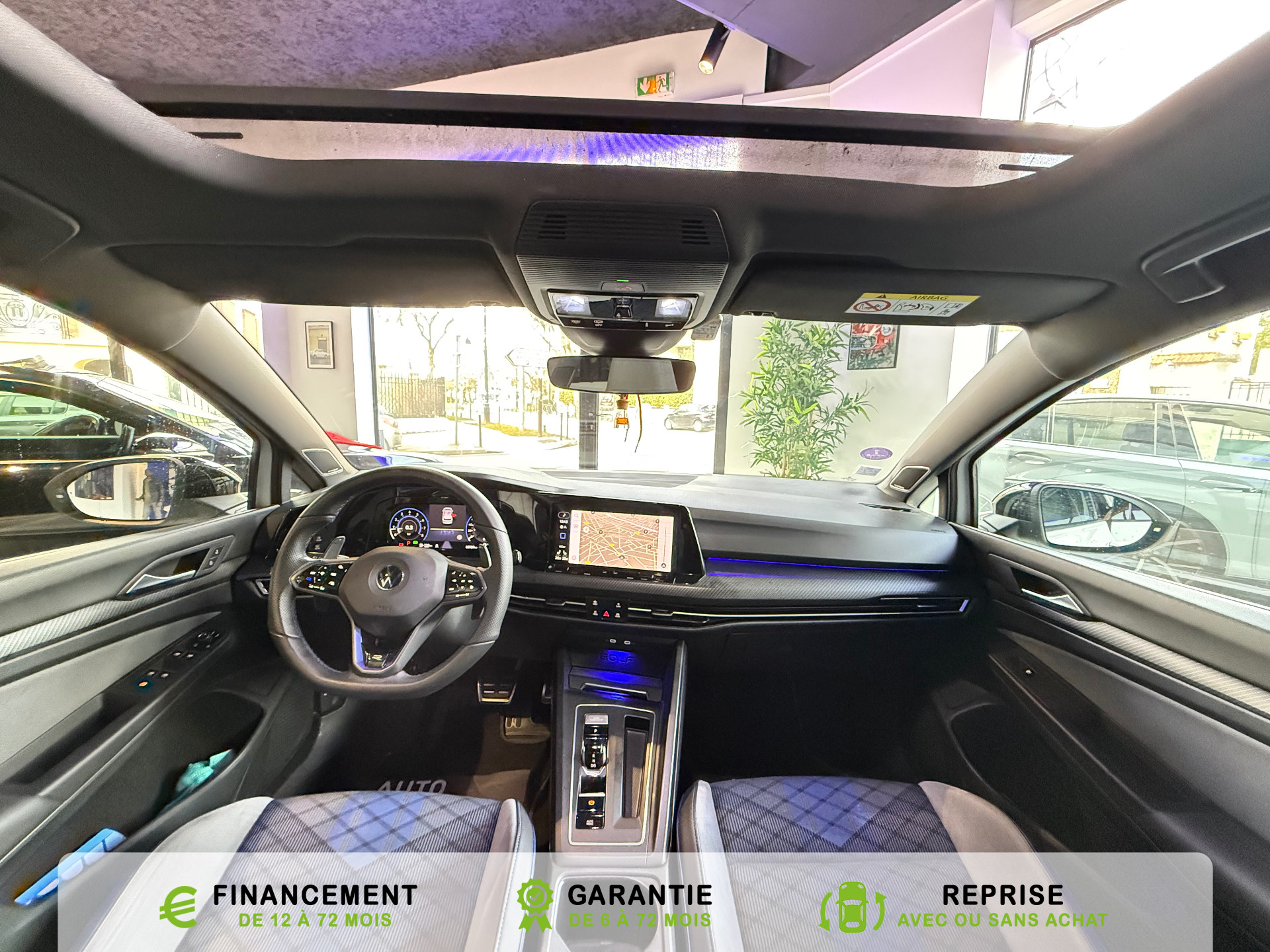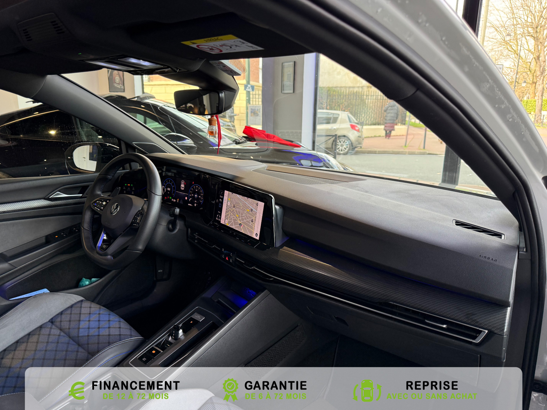 Equipements supplémentaires : 2 interfaces USB-C a l'AV, 2 interfaces USB-C a l'AV et 2 prises de chargement USB-C derriere laccoudoir pour les passagers AR, 2 prise USB a l'AR de l'accoudoirs central, 2 prises de chargement USB-C derriere l'accoudoir pour les passagers AR, 2 spots de lecture AV et 2 spots AR, Accoudoir central AR rabattable avec 2 portes-boissons, Accoudoir central AV reglable en hauteur et en longueur avec compartiment de rangement, Activation automatique du signal de detresse en cas de freinage d'urgence, Airbags de tete pour passagers AV/AR, Airbags frontaux AV conducteur et passager (Airbag passager desactivable), Airbags lateraux AV, Alerte de perte de pression des pneus, App-Connect sans fil, affichage et controle via l'ecran tactile de la voiture du contenu,, Appuis-tete AR reglables en hauteur, Appuis-tete reglables en hauteur sur les sieges AV et AR, Assistant de conduite Travel Assist avec Emergency Assist, Avertisseur sonore et temoin d'oubli du port de la ceinture de securite a l'AV et a l'AR, Badges GTI sur les ailes AV et inscription GTI sur le hayon, Baguette chromee sur les vitres laterales, Baguette lumineuse entre les projecteurs, Banquette AR rabattable 2/3-1/3 avec trappe a skis, Blocage electronique du differentiel XDS, Cable adaptateur USB-C vers USB-A, Cache-bagages amovible, Ceintures de securite automatiques AV 3 points a enrouleur avec pretensionneurs, Ceintures de securite automatiques AV 3 points a enrouleur, reglables en hauteur,, Cerclage chrome des commandes des vitres, de reglage des retroviseurs et des aerateurs, Chargeur induction, Chrome sur le bouclier AV et le pare-choc AR, Commade vocale intuitive, Correcteur electronique de trajectoire ESP, amplificateur de freinage d'urgence, antiblocage des, Double sortie d'echappement chromee a gauche et double sortie d'echappement chromee a droite, E-call service: Appel d'urgence manuel ou automatique, Eclairage a LED de la plaque d'immatriculation AR, Eclairage d'ambiance - 30 couleurs et eclairage de plancher a l'AV, Eclairage d'ambiance 30 couleurs, Eclairage d'ambiance exterieur, Eclairage de plancher a LED a l'AV avec possibilite de selectionner la couleur d'eclairage, Ecrous antivol, Elements de carrosserie specifiques R, Essuie-glace AR intermittent avec lave-glace, Fatigue Detection : systeme de detection de fatigue du conducteur qui analyse le comportement du, Feu AR de brouillard d'un cote, feux de recul des deux cotes, Feux AR a LED avec clignotants AR defilants, Front Asisst avec detecteur des pietons, Indicateur de temperature exterieure avec avertisseur de gel, Interface telephone Bluetooth, Interface telephonique avec fonction de charge inductive, Keyless Access Advanced sans alarme : Systeme de verrouillage/deverrouillage et de demarrage sans, Kit de depannage : compresseur 12 V et produit d'etancheite de pneu, Lane Assist: Assistant de maintien dans la voie, Lisere bleu dans la calandre et les phares, Mesures supplementaires de protection des pietons, Miroirs de courtoisie eclaires dans les pare-soleils, Monogrammes R sur la calandre et le hayon, badges R sur les ailes avant, Oeillets d'arrimage ISOFIX (dispositif pour fixation de 2 sieges-enfants sur la banquette AR), Pack Travel Assist avec Emergency Assist, Pack Visibilite, Pare-chocs, boitiers de retroviseurs exterieurs et poignees de portes dans la couleur carrosserie, Park Assist: Systeme d'assistance au stationnement en creneau et en bataille, Park Assist: Systeme d'assistance au stationnement en creneauet et en bataille, ParkPilot, aide au stationnement AV/AR, Pedalier et repose-pied en acier inoxydable brosse, Peinture unie Blanc Pur, Pommeau de levier de vitesse en style aluminium, Prise 12 V dans le coffre, Projecteurs antibrouillard AV avec eclairage statique d'intersection, Projecteurs antibrouillard avec feux de braquage, Projecteurs IQ.Light - Matrix LED, Protection antidemarrage, Radio Composition, 7 HP et ecran 8, Rangement et prise 12 V a l'AV, Rear Assist: Camera de recul avec visualisation de la zone situee a l'AR du vehicule, Reception radio numerique DAB+, Reconnaissance des panneaux de signalisation, Reglage du site des phares, manuel, Regulateur de vitesse adaptatif et predictif ACC avec limiteur de vitesse, Retroviseur interieur a reglage jour/nuit automatique, Retroviseurs exterieurs a reglage, rabattement et degivrage electriques, avec fonction memoire, Retroviseurs exterieurs avec degivrage separe, Retroviseurs exterieurs rabattables et reglables electriquement, Revetement de porte et lateral en feuille de mousse et tissu, Selection du profil de conduite, Service