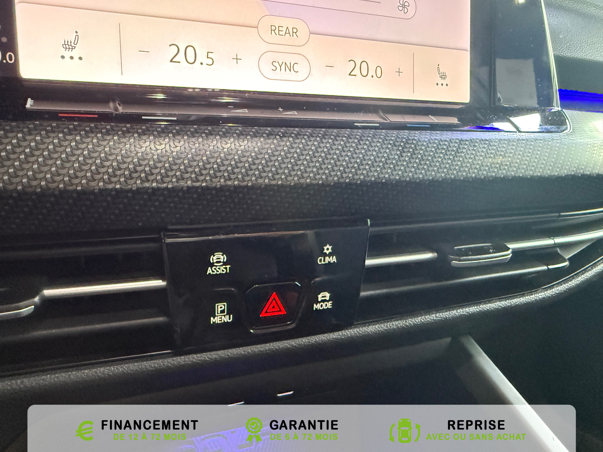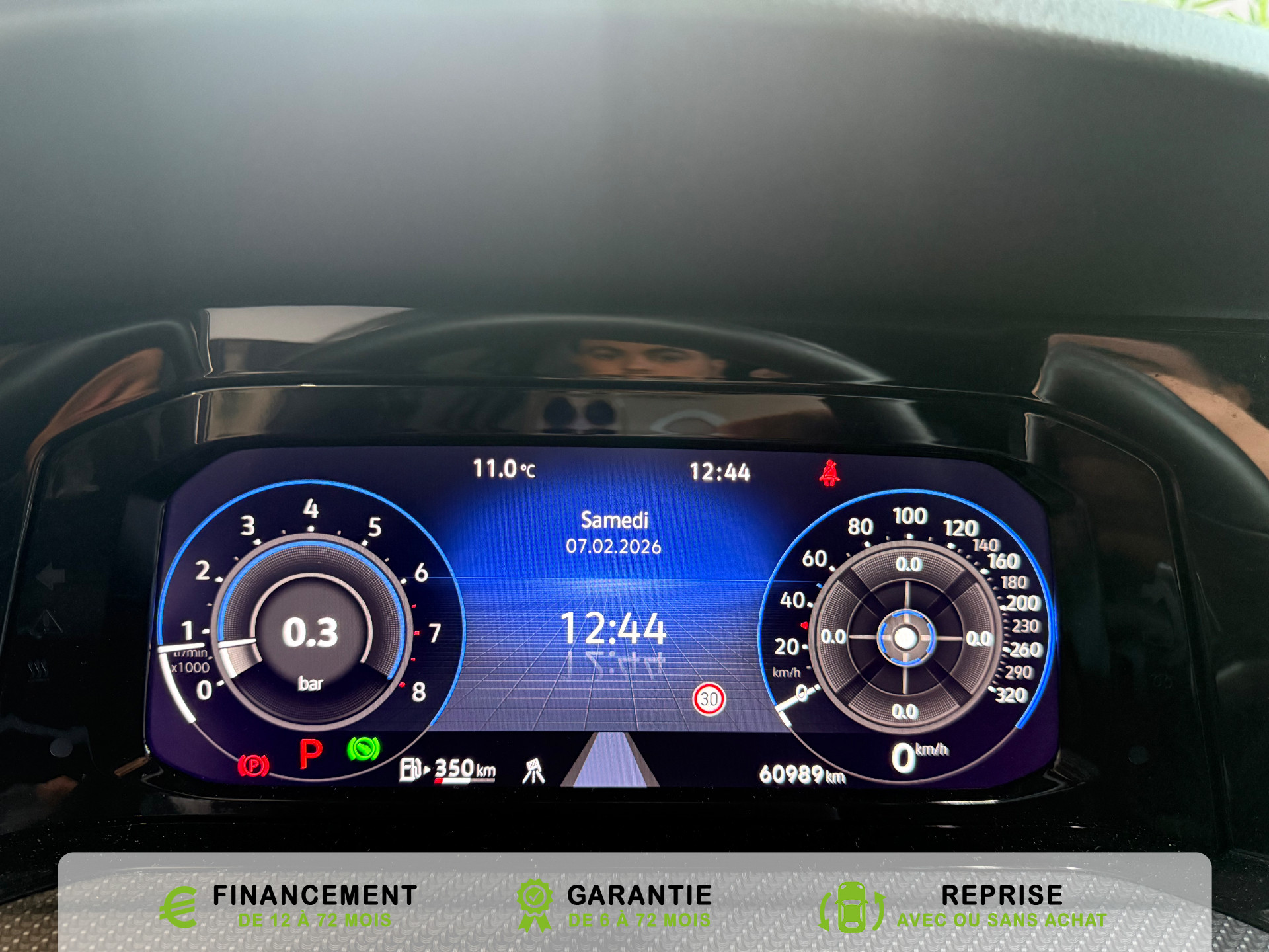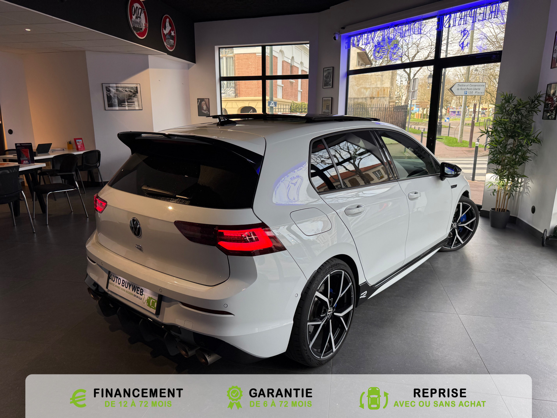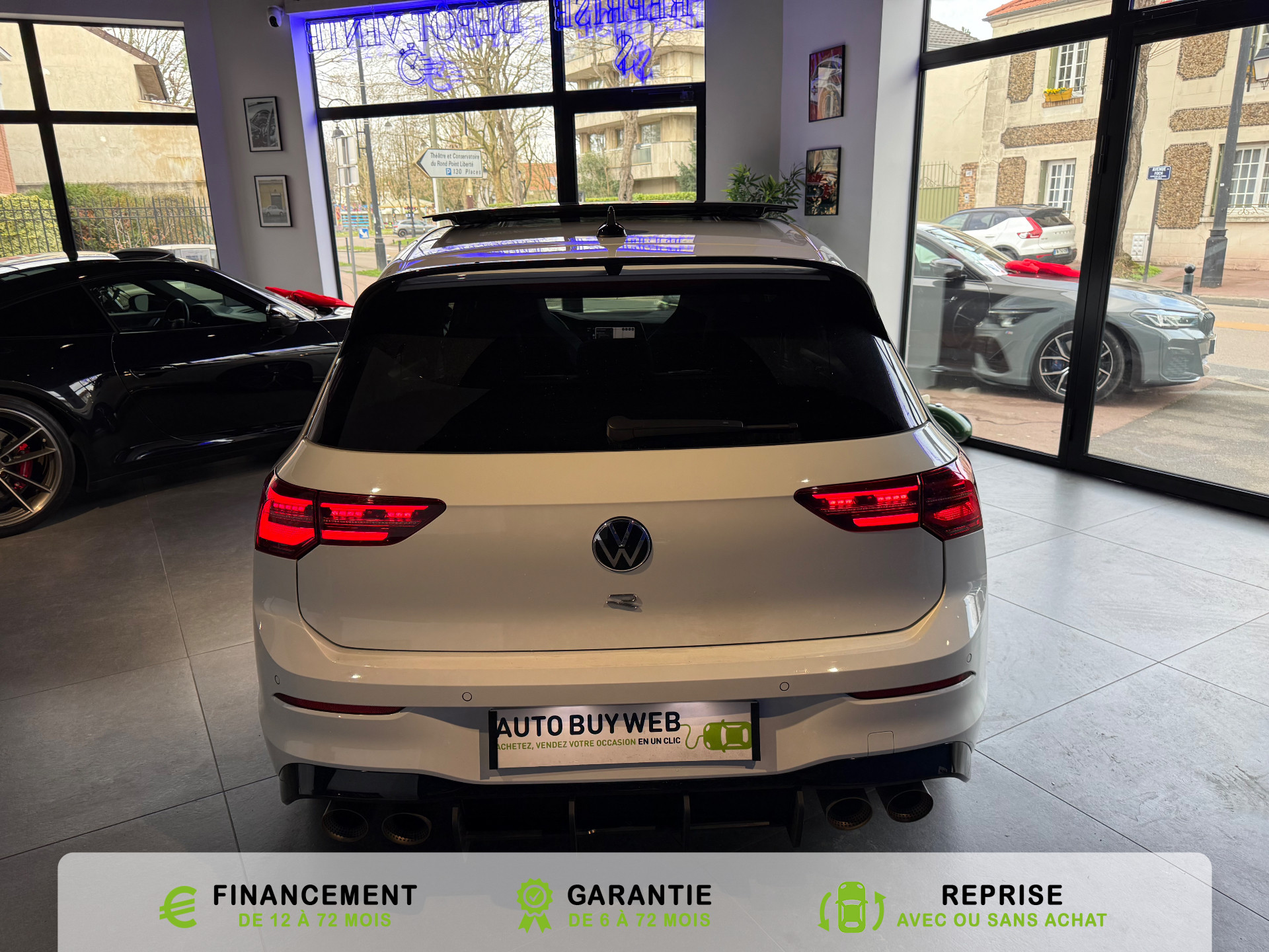 Equipements supplémentaires : 2 interfaces USB-C a l'AV, 2 interfaces USB-C a l'AV et 2 prises de chargement USB-C derriere laccoudoir pour les passagers AR, 2 prise USB a l'AR de l'accoudoirs central, 2 prises de chargement USB-C derriere l'accoudoir pour les passagers AR, 2 spots de lecture AV et 2 spots AR, Accoudoir central AR rabattable avec 2 portes-boissons, Accoudoir central AV reglable en hauteur et en longueur avec compartiment de rangement, Activation automatique du signal de detresse en cas de freinage d'urgence, Airbags de tete pour passagers AV/AR, Airbags frontaux AV conducteur et passager (Airbag passager desactivable), Airbags lateraux AV, Alerte de perte de pression des pneus, App-Connect sans fil, affichage et controle via l'ecran tactile de la voiture du contenu,, Appuis-tete AR reglables en hauteur, Appuis-tete reglables en hauteur sur les sieges AV et AR, Assistant de conduite Travel Assist avec Emergency Assist, Avertisseur sonore et temoin d'oubli du port de la ceinture de securite a l'AV et a l'AR, Badges GTI sur les ailes AV et inscription GTI sur le hayon, Baguette chromee sur les vitres laterales, Baguette lumineuse entre les projecteurs, Banquette AR rabattable 2/3-1/3 avec trappe a skis, Blocage electronique du differentiel XDS, Cable adaptateur USB-C vers USB-A, Cache-bagages amovible, Ceintures de securite automatiques AV 3 points a enrouleur avec pretensionneurs, Ceintures de securite automatiques AV 3 points a enrouleur, reglables en hauteur,, Cerclage chrome des commandes des vitres, de reglage des retroviseurs et des aerateurs, Chargeur induction, Chrome sur le bouclier AV et le pare-choc AR, Commade vocale intuitive, Correcteur electronique de trajectoire ESP, amplificateur de freinage d'urgence, antiblocage des, Double sortie d'echappement chromee a gauche et double sortie d'echappement chromee a droite, E-call service: Appel d'urgence manuel ou automatique, Eclairage a LED de la plaque d'immatriculation AR, Eclairage d'ambiance - 30 couleurs et eclairage de plancher a l'AV, Eclairage d'ambiance 30 couleurs, Eclairage d'ambiance exterieur, Eclairage de plancher a LED a l'AV avec possibilite de selectionner la couleur d'eclairage, Ecrous antivol, Elements de carrosserie specifiques R, Essuie-glace AR intermittent avec lave-glace, Fatigue Detection : systeme de detection de fatigue du conducteur qui analyse le comportement du, Feu AR de brouillard d'un cote, feux de recul des deux cotes, Feux AR a LED avec clignotants AR defilants, Front Asisst avec detecteur des pietons, Indicateur de temperature exterieure avec avertisseur de gel, Interface telephone Bluetooth, Interface telephonique avec fonction de charge inductive, Keyless Access Advanced sans alarme : Systeme de verrouillage/deverrouillage et de demarrage sans, Kit de depannage : compresseur 12 V et produit d'etancheite de pneu, Lane Assist: Assistant de maintien dans la voie, Lisere bleu dans la calandre et les phares, Mesures supplementaires de protection des pietons, Miroirs de courtoisie eclaires dans les pare-soleils, Monogrammes R sur la calandre et le hayon, badges R sur les ailes avant, Oeillets d'arrimage ISOFIX (dispositif pour fixation de 2 sieges-enfants sur la banquette AR), Pack Travel Assist avec Emergency Assist, Pack Visibilite, Pare-chocs, boitiers de retroviseurs exterieurs et poignees de portes dans la couleur carrosserie, Park Assist: Systeme d'assistance au stationnement en creneau et en bataille, Park Assist: Systeme d'assistance au stationnement en creneauet et en bataille, ParkPilot, aide au stationnement AV/AR, Pedalier et repose-pied en acier inoxydable brosse, Peinture unie Blanc Pur, Pommeau de levier de vitesse en style aluminium, Prise 12 V dans le coffre, Projecteurs antibrouillard AV avec eclairage statique d'intersection, Projecteurs antibrouillard avec feux de braquage, Projecteurs IQ.Light - Matrix LED, Protection antidemarrage, Radio Composition, 7 HP et ecran 8, Rangement et prise 12 V a l'AV, Rear Assist: Camera de recul avec visualisation de la zone situee a l'AR du vehicule, Reception radio numerique DAB+, Reconnaissance des panneaux de signalisation, Reglage du site des phares, manuel, Regulateur de vitesse adaptatif et predictif ACC avec limiteur de vitesse, Retroviseur interieur a reglage jour/nuit automatique, Retroviseurs exterieurs a reglage, rabattement et degivrage electriques, avec fonction memoire, Retroviseurs exterieurs avec degivrage separe, Retroviseurs exterieurs rabattables et reglables electriquement, Revetement de porte et lateral en feuille de mousse et tissu, Selection du profil de conduite, Service