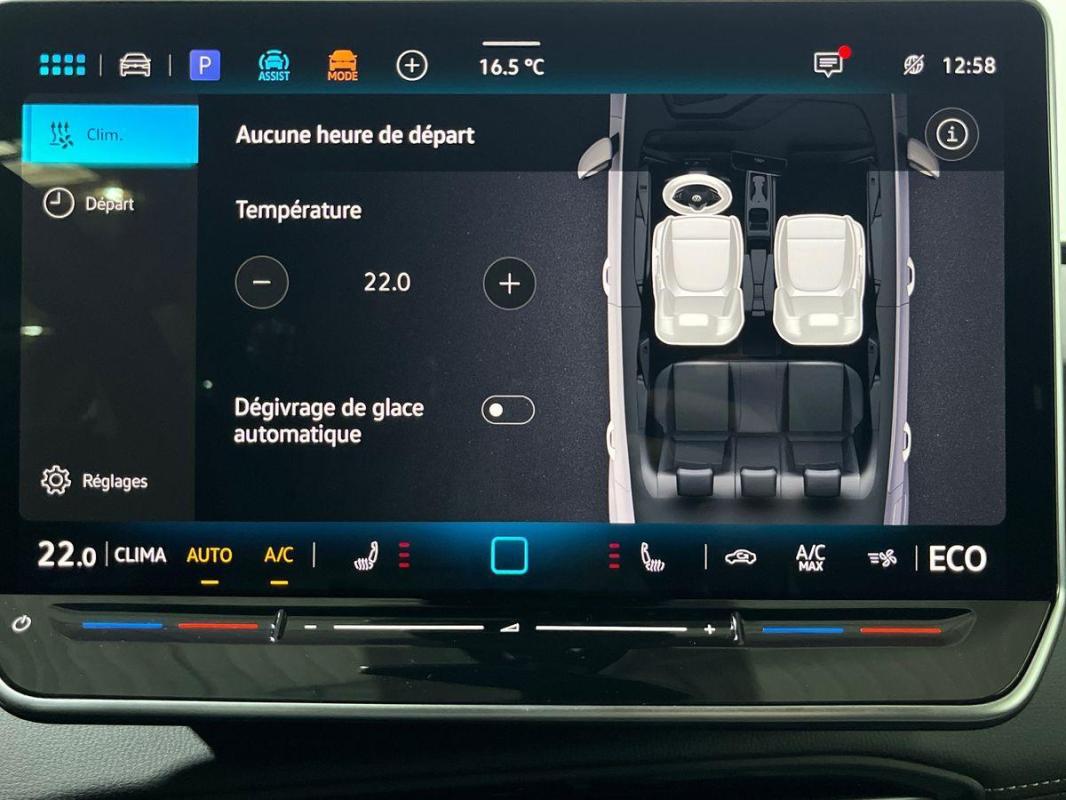 - Sélecteur de vitesse situé à droite derrière le volant avec frein de stationnement électronique,