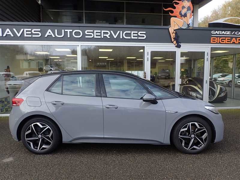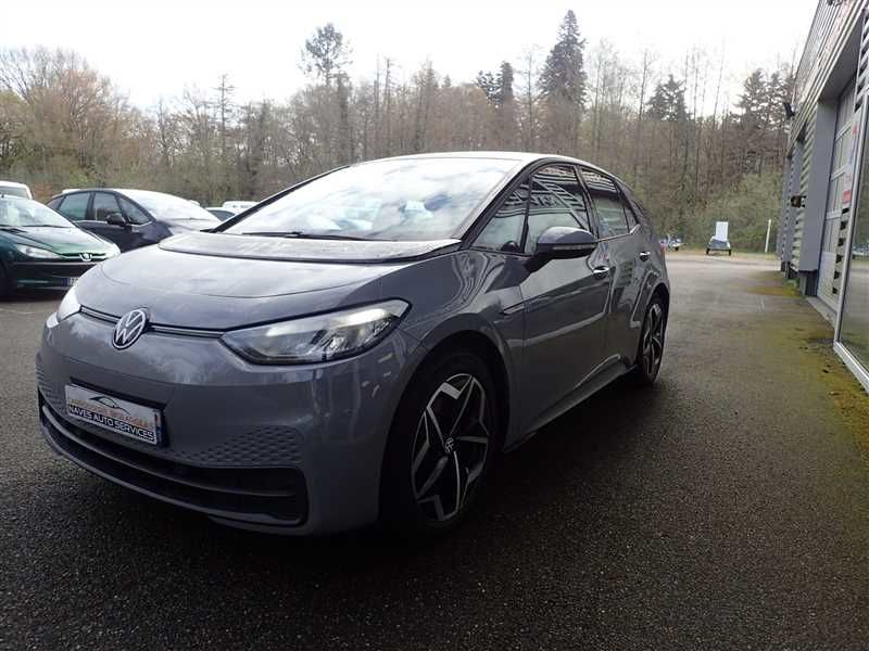 VOLKSWAGEN ID.3 PRO S 150 KW BERLINE 77 kWh Pro S, 204 ch, 5 CV. Couleur carosserie : GRIS, nombres de places : 5. Equipements : ANTI FRANCHISSEMENT DE LIGNE ALLUMAGE AUTO DES FEUX ANTI-BROUILLARD BLUETOOTH CLIMATISATION CLIMATISATION AUTOMATIQUE COMMANDES AUX VOLANT NAVIGATION GPS LEVE VITRES ELECTRIQUES ORDINATEUR DE BORD REGULATEUR LIMITEUR DE VITESSE RETROVISEUR RABATTABLE ELECTRI ECRAN TACTILE SIEGE CHAUFFANT PRISE 12V ACCOUDOIR CENTRAL-. Autres informations :