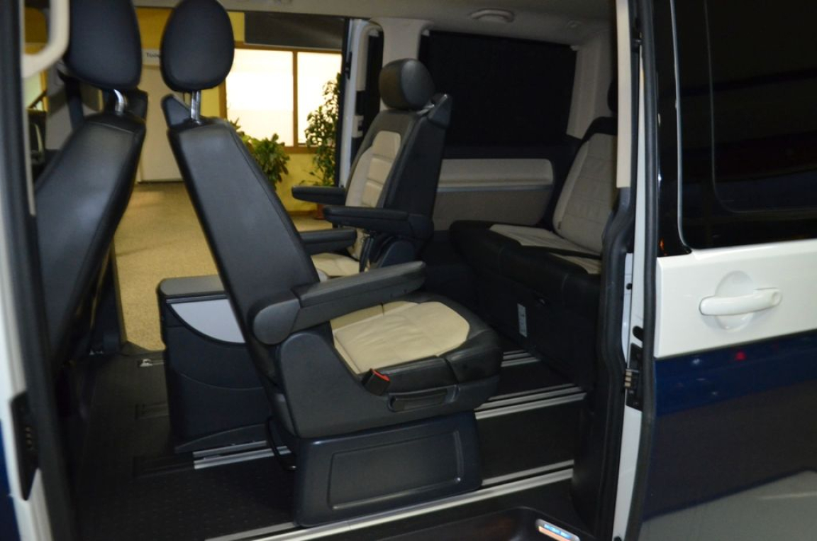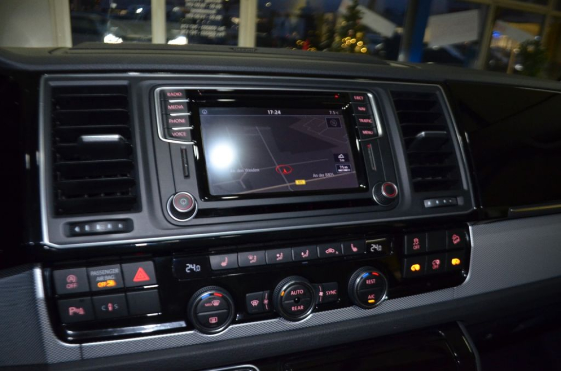1 Câble USB (compatible Apple) et AUX-IN,2 clés pliantes de radiocommande pour le système de fermeture avec télécommande,2 Pare-soleil orientables avec miroir de courtoisie et éclairage,2 Siéges pivotants avec réglage longitudinal sur système de glissières,Affichage multifonction ,Afficheur du niveau d'eau de lave-glace,Aide à la fermeture pour le hayon,Airbags frontaux,Airbags latéraux et de tête conducteur et passager AV,Airbags pour conducteur/passager,Antidémarrage électronique,Assistant au changement de file ,Baguette décorative en partie basse du tableau de bord type ,Bandeau décoratif en partie supérieur du tableau de bord en style ,Banquette 3 places (coulissante) avec fonction couchette et vide-poches,Boîte à gants avec couvercle,Boîte à gants verrouillable et réfrigérée,Boitiers de rétroviseurs extérieurs et poignées de portes dans la couleur carrosserie,Buses de lave-glace AV dégivrantes et afficheur du niveau d'eau du lave-glace,Calandre noir avec 3 lamelles chromées,Ceintures de sécurité automatiques 3 points,Climatisation 3 zones ,Combiné d'instruments (km/h) affichage de la vitesse,Contrôle de pression des pneus,Contrôle électronique de stabilisation avec assistant de freinage AFU,Couvre-coffre,Déverrouillage hayon/capot AR de l'intérieur (électrique),Direction assistée électromécanique avec colonne de direction de sécurité réglable en hauteur et en profondeur,Eclairage jour (allumé en permanence pendant la marche),Feux antibrouillard AR,Feux AR à LED,Finition cuir partielle (pommeau de levier de vitesses en cuir),Fonctionnement intermittent des essuie-glace,Garniture de plancher en moquette dans la cabine,Garniture de plancher en moquette dans le compartiment passagers,Hayon vitré avec lunette AR dégivrante et essuie-glace/lave-glace,Jantes en alliage léger ,Jantes en alliage léger ,Kit de dépannage en cas de crevaison,Lave-phares avec buses de lave-glace AV dégivrantes et afficheur du niveau d'eau du lave-glace,Lève-vitres électrique,Pack BlueMotion Technology,Pack Chrome,Pack Lumière et Visibilité,Pack vitrage insonorisant,Pare-chocs (plastique) peints,Phare antibrouillard y compris feux de bifurcation,Phares Full LED AV/AR avec éclairage jour à LED,Pneus 255/45 R18 103H à faible résistance au roulement,Pneus 255/45 R18 103H XL à faible résistance au roulement,Poignées d'accès sur le montant avant, côté conducteur et passager avant,Points de fixation pour sièges-enfants ISOFIX (Banquette 3 places = 2 ; Siège individuel = 1),Porte coulissante à droite dans le compartiment de charge/passagers,Porte coulissante à gauche dans le compartiment de charge/passagers,Prise 12V,Protection de seuil de chargement en acier inoxydable,Radar de recul AV et AR + camera de recul ,Radio ,Réglage en hauteur pour sièges conducteur et passager,Régulateur automatique de distance ACC jusqu'à 160 km/ h et système de surveillance périmétrique ,Régulateur de vitesse,Régulation adaptative du châssis DCC avec châssis standard,Réservoir en plastique 80 litres,Rétroviseur extérieur droit convexe,Rétroviseur extérieur gauche asphérique,Rétroviseurs extérieurs dégivrants, réglables et rabattables électriquement,Revêtement de sol AV et AR en moquette,Sans barres de toit/galerie porte-bagages,Sécurité enfants pour portes et hayons dans le compartiment passagers,Sellerie en Alcantara/Cuir,Sièges AV chauffants réglables séparément,Sièges Chauffants pour conducteur et passager à réglages séparés,Sièges garnis partiellement d´Alcantra,Stores pare-soleil sur les fenêtres latérales dans le compartiment passager,Système ,Système de freinage hydraulique avec freins à disque ventilés,Système de surveillance périmétrique ,Table multifonctions (ronde) montée sur rails au sol,Tapis de sol en velours dans la cabine,Toit normal avec fixations pour galeries porte-bagages : 8 pour empattement court,Trappe à carburant, verrouillée par fermeture porte conducteur,Verre athermique dans la cabine (vert),vitrage teinté sombre (Privacy) dans compartiment passagers,Verrouillage central avec radiocommande et commande intérieure de déverrouillage SANS dispositif de sécurité Safe,Vitres coulissantes à gauche et à droite,Volant cuir multifonctions avec élément de commande pour radio et téléphone portable,Volant et pommeau de levier de vitesses en cuir,Volant multifonction cuir, 7 vitesses, 7 places, puissance fiscal : 12, puissance din : 204, émission de CO2 : 172 g/km.