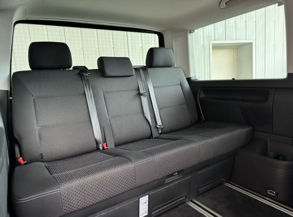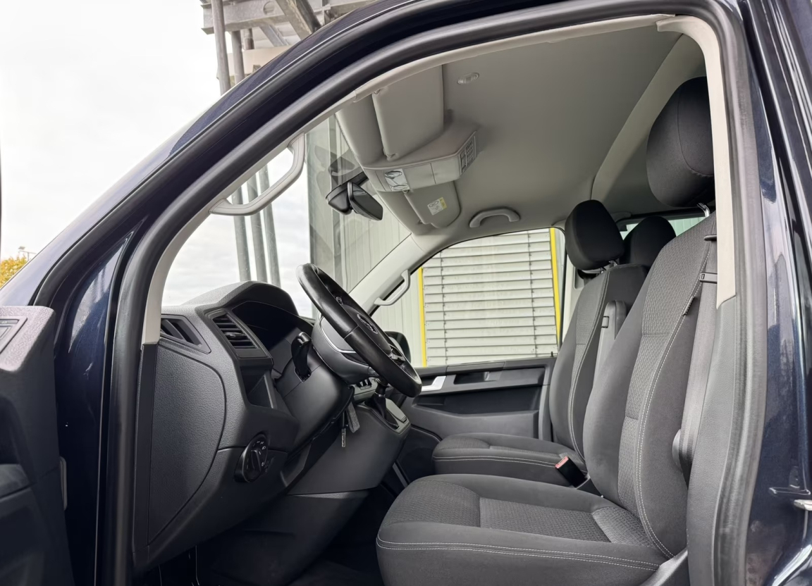 VOLKSWAGEN MULTIVAN (Multivan 2.0 TDI 150) BLEU NOIR.2 clés pliantes de radiocommande pour le système de fermeture avec télécommande,2 Pare-soleil orientables avec miroir de courtoisie,2 Siéges pivotants avec réglage longitudinal sur système de glissières,2 Sièges pivotants avec réglage longitudinal sur système de glissières dans la 2ème rangée de sièges,Affichage multifonctions ,Airbags frontaux,Airbags latéraux et de tête conducteur et passager AV,Airbags pour conducteur/passager,Antidémarrage électronique,Banquette 3 places (coulissante) avec fonction couchette et vide-poches,Boîte à gants avec couvercle,Boitiers de rétroviseurs extérieurs et poignées de porte en noir,Câble adaptateur USB,Calandre, non peinte, avec une baguette chromée,Ceintures de sécurité automatiques 3 points,Climatisation ,Combiné d'instruments (km/h) affichage de la vitesse,Contrôle de pression des pneus,Contrôle électronique de stabilisation avec assistant de freinage AFU,Déverrouillage hayon/capot AR de l'extérieur,Direction assistée électromécanique avec colonne de direction de sécurité réglable en hauteur et en profondeur,Eclairage jour (allumé en permanence pendant la marche),Feux antibrouillard AR,Finition cuir partielle (pommeau de levier de vitesses en cuir),Fonctionnement intermittent des essuie-glace,Garniture de plancher en moquette dans la cabine,Garniture de plancher en plastique dans le compartiment passagers,Hayon vitré avec lunette AR dégivrante et essuie-glace/lave-glace,Jantes en alliage léger ,Lève-vitres électrique,Lève-vitres électrique AV et AR,Outillage de bord et cric,Pack BlueMotion Technology,Pare-chocs (plastique) peints,Phares principaux halogènes H4, circulation à droite,Pneus 215/65 R16 C106/104T à faible résistance au roulement,Poignées d'accès sur le montant avant, côté conducteur et passager avant,Points de fixation pour sièges-enfants ISOFIX (Banquette 3 places = 2 ; Siège individuel = 1),Porte coulissante à droite dans le compartiment de charge/passagers,Prise 12V,Protection de seuil de chargement en plastique,Radio ,Réglage en hauteur pour sièges conducteur et passager,Régulateur de vitesse,Réservoir en plastique 70 litres,Rétroviseur extérieur droit convexe,Rétroviseur extérieur gauche asphérique,Rétroviseurs extérieurs réglables et dégivrants électriquement,Revêtement de sol AV en moquette et AR en caoutchouc lavable,Roue de secours avec pneu normal,Sans barres de toit/galerie porte-bagages,Sécurité enfants sur les portes coulissantes dans le compartiment passagers,Sellerie en tissu, dessin ,Siège conducteur et passager ,Sièges garnis partiellement d´Alcantra,Stores pare-soleil sur les fenêtres latérales dans le compartiment passager,Système ,Système de freinage hydraulique avec freins à disque ventilés,Table de camping (pour l'intérieur et à l'extérieur),Toit normal avec fixations pour galeries porte-bagages : 8 pour empattement court,Trappe à carburant, verrouillée par fermeture porte conducteur,Verre athermique (vert) dans la cabine et dans le compartiment de charge/passagers,Verrouillage central avec radiocommande et commande intérieure de déverrouillage SANS dispositif de sécurité Safe,Vitres athermiques teintées vertes,Vitres coulissantes à gauche et à droite,Volant cuir multifonctions avec élément de commande pour radio et téléphone portable,Volant et pommeau de levier de vitesses en cuir,Volant multifonction cuir, 6 vitesses, 7 places, puissance fiscal : 9, puissance din : 150, émission de CO2 : 164 g/km.