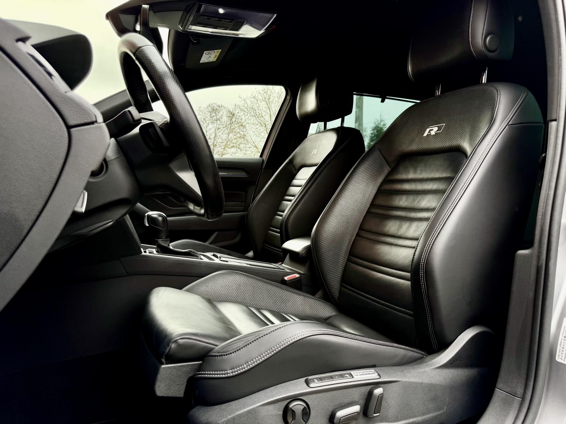 - Sellerie en cuir nappa, cuir carbon style et autres matériaux, avec logo r-line