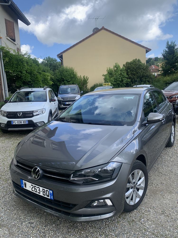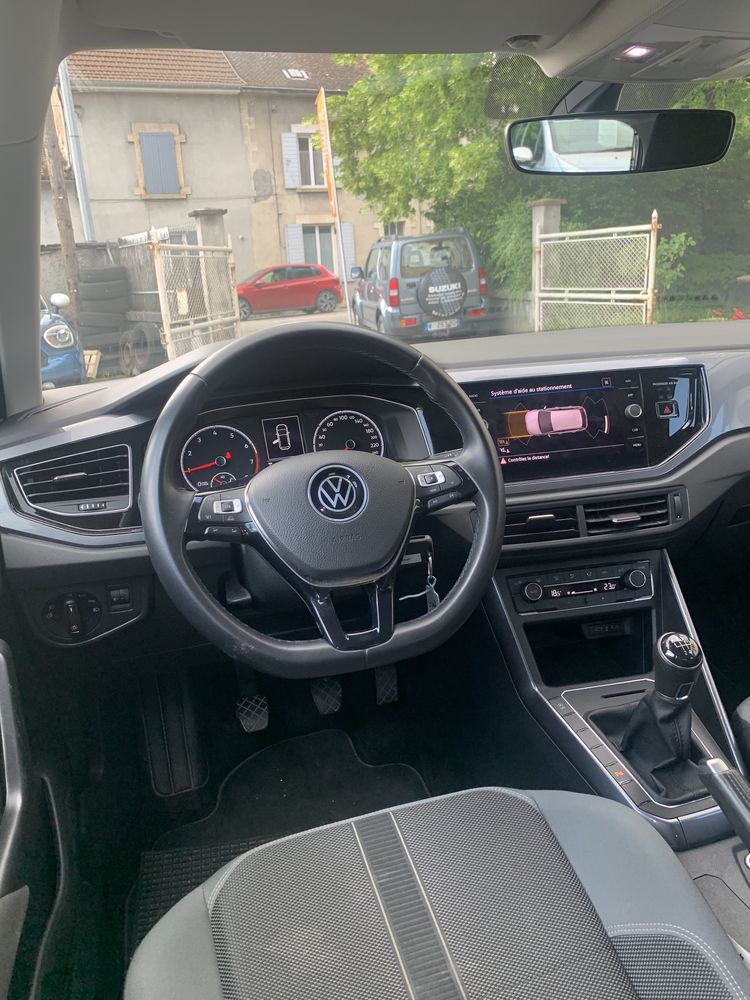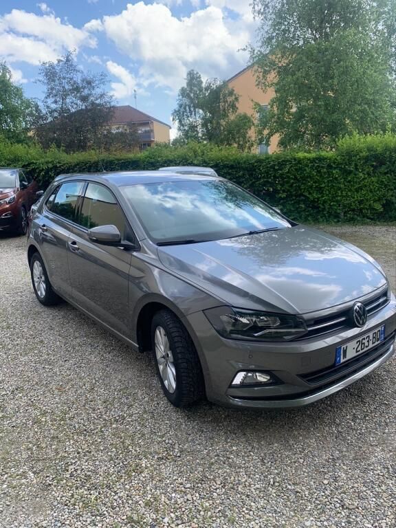 Volkswagen Polo 1.0 TSI 95 S&S BVM5, finition HIGHLINE, Berline, motorisation essence, du 21 avril 2021, 65 000 km, 5 CV, 4 portes avec hayon, boîte à vitesse manuelle, couleur : Limestone Grey (métallisée vernie). Intérieur : tissu TRACKS 2 TITANIUM CERAMIC.