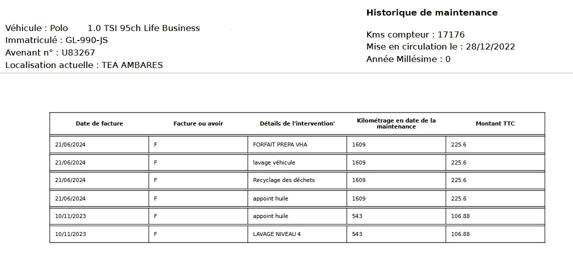 Informations clés : voiture VOLKSWAGEN Berline