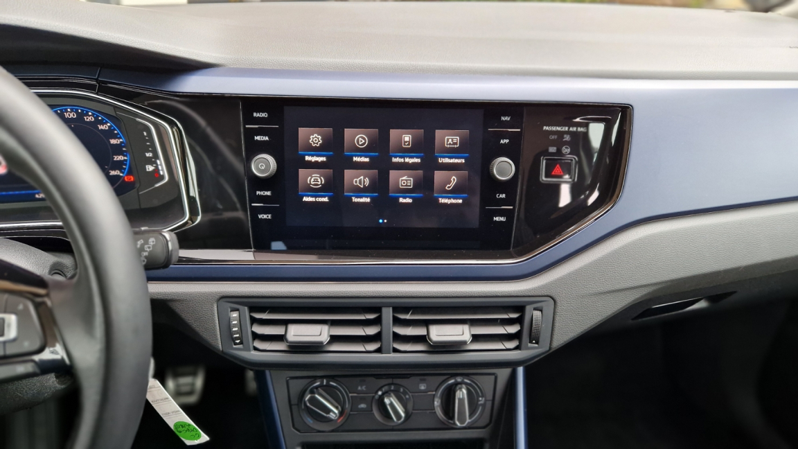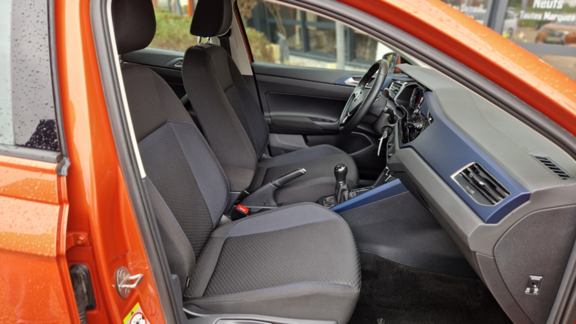 2 interfaces USB-C à AV, Accoudoir central AV, Airbags frontaux AV conducteur et passager (Airbag passager désactivable par clef), Airbags latéraux AV, Airbags rideaux AV et AR, Alerte de perte de pressions des pneus, Allumage automatique des feux de jour LED et fonctions "Coming Home" et "Leaving Home", Antenne AR de pavillon, Application Volkswagen Connect avec sa solution de connectivité Plug&Play, Applications décoratives "Gris Limestone mat", Appuis-tête (3) et ceintures de sécurité 3 points (3) sur la banquette AR, ASR, Aumônières au dos des sièges AV, Avertisseur sonore de non-extinction des phares et de non-bouclage des ceintures de sécurité (conducteur et passager), Bacs de rangement dans toutes les portières, à l?AV avec porte-boisson, Banquette et dossier AR asymétriques, Blocage électronique de différentiel EDS, Boitiers de rétroviseurs et poignées de portes couleur carrosserie, Câble adaptateur USB-C vers USB-A, Cache-bagages, Ceintures de sécurité trois points à l?AV, à enrouleur avec prétensionneurs, Circuit d'éclairage auto des phares, Clignotants confort (1 impulsion = 3 clignotements), Clignotants latéraux intégrés dans le rétroviseur, Climatisation manuelle "Climatic", Correcteur électronique de trajectoire ESP avec amplificateur de freinage, Déflecteur de toit intégré, Direction assistée, Disques de frein ventilés à l?AV, E-call : appel d?urgence, Eclairage blanc sur les instruments réglable en intensité, rouge sur les commandes, Eclairage du coffre à bagages, Essuie-glace AR avec commande d'intermittence et lave-glace, Essuie-glace AV avec commande d'intermittence à 4 positions et lave-glace, Fatigue Detection: Système de détection de fatigue du conducteur qui analyse le comportement du conducteur et recommande un temps de repos par l'apparition d'un message visuel et sonore, Feux de brouillard AR, Filtre à particules pour essense, Filtre à pollen et à poussière, Front Assist freinage d?urgence en ville et détection des piétons. Contribuant à la prévention des collisions, Grille de calandre avec baguette chromée, Hill-Hold: Assistant au démarrage en côte grâce à une fonction anti-recul, Instrumentation avec tachymètre électronique, Interface Bluetooth, Interface USB (compatible iPod, iPhone, iPad), Jantes en alliage léger 15" "Seyne" et pneumatiques 185/65 R15 avec écrous antivol, Kit de dépannage en cas de crevaison incluant compresseur et produit colmatant, Lampes de lecture 2 à l'AV et 1 à l'AR, Lève-vitres AV électriques, Lève-vitres électriques à l'AR, Miroir de courtoisie éclairé sur les pare-soleil AV, Motorisations respectant les normes Euro 6, Ordinateur de bord "Plus", Pack "City", Pack Confort, Pare-chocs peints dans la couleur de la carrosserie, Peinture unie Gris Urano, Plafonnier à temporisation AV avec contacteur de portière, Poignée de frein à main en cuir, Pommeau de levier de vitesses et poignee de frein a main en cuir, Porte-boissons 2 à l'AV, Préparation pour We Connect et We Connect Plus, Préparation pour ?We Connect? et ?We Connect Plus? durée 3 ans, Prise 12 V à l'AV, Projecteurs antibrouillard AV avec éclairage statique d'intersection, Projecteurs et clignotants regroupés dans un bloc optique avec vitre transparente, Radio numérique (DAB+), Régulateur de vitesse y compris limiteur de vitesse, Régulateur électronique de couple MSR, Rétroviseur extérieur asphérique côté conducteur, Rétroviseur intérieur de sécurité à réglage jour/nuit manuel, Rétroviseurs extérieurs, réglables et dégivrants électriquement, Roue de secours acier avec pneus normal 15", outillage de bord et cric, Sellerie en tissu dessin "Slash", Siège conducteur réglable en hauteur, Support pour ticket sur le pare-soleil conducteur, Système "Start-Stop" de coupure du moteur à l'arrêt et système de récupération d'énergie en décélération, Système Audio & Infotainment Composition Media: Radio CD 6 haut-parleurs (4x20 W), Système Audio & Infotainment ?Ready 2 Discover? avec Services de streaming et radio via Internet via carte eSIM intégrée, Système de freinage anti multicollision : ce dispositif freine automatiquement le véhicule après un premier choc afin de limiter le risque de multicollision, Système de ventilation/chauffage 4 vitesses avec commande de fonctionnemment en circuit fermé, Système Navigation & Infotainment ?Discover Media? avec Services de streaming et radio via Internet via carte eSIM intégrée, Tableau de bord avec revêtement moussé, Tapis de sol AV et AR, Témoins de contrôle et indicateur d'intervalle de révision, Verrouillage centralisé à distance, 2 clés pliantes de radiocommande fournies, Vitres athermiques teintées vertes, Volant cuir multifonctions, Volant en cuir multifonctions 3 branches, Volant réglable en hauteur et en profondeur, 5 vitesses, 5 places, puissance fiscal : 5, puissance din : 95, émission de