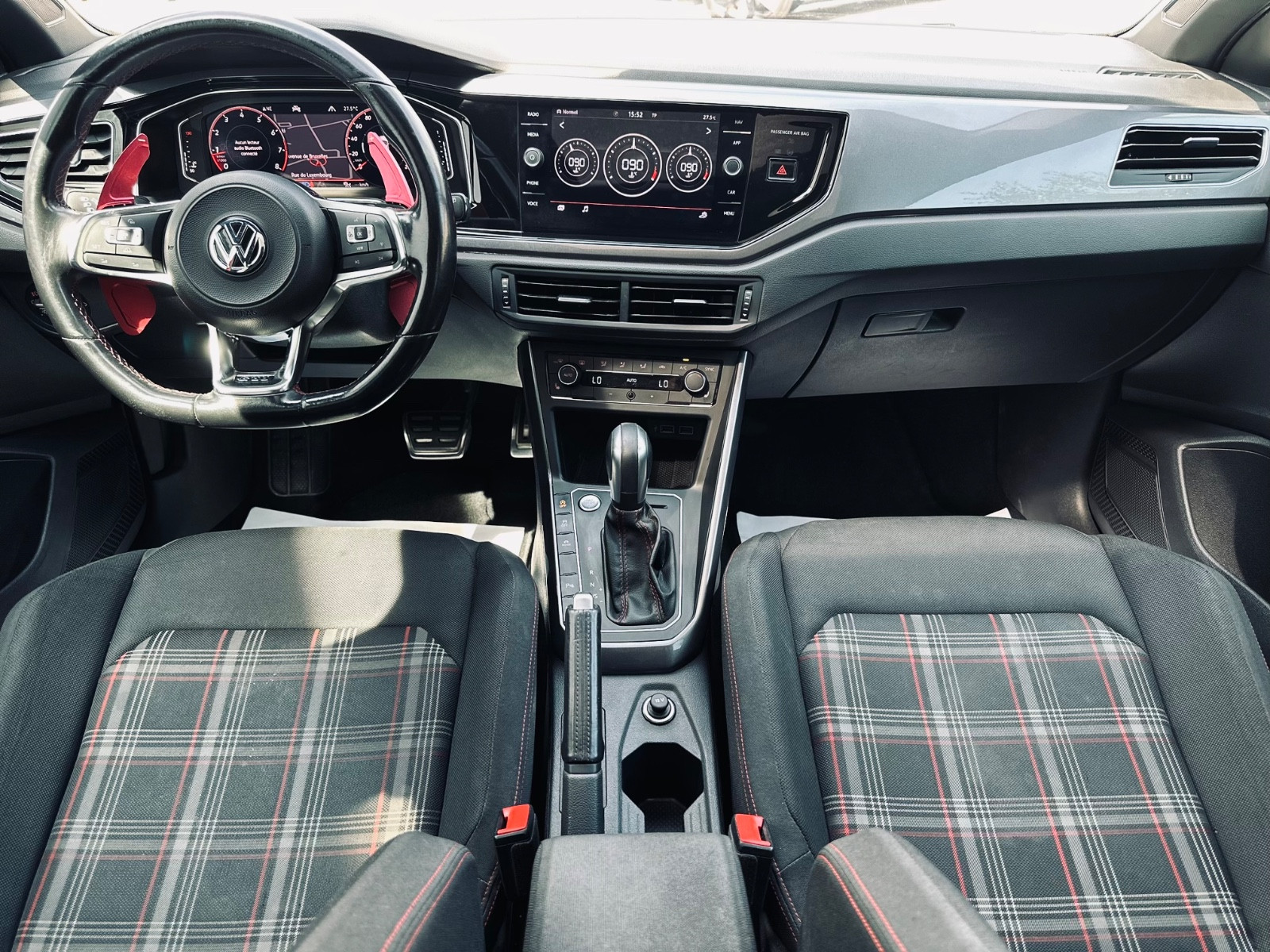 Accoudoir central AV coulissant(e)(s), avec Compartiment/Vide-poches, Active Afficheur d'information (affichage des instruments digital(e)), Affichage pour niveau d´eau, Aide au stationnement AV et AR, Airbag conducteur et passager, Airbag passager désactivable, Alarme pour Ceintures de sécurité AV et AR, Allumage automatique des feux de croisement (système d'éclairage adaptatif) avec Leaving Home / Fonction éclairage Comin, Antidémarrage (électronique), App-Connect, Appuie-têtes AR (x 3), Assistant de freinage, Avertisseur deux tons, Blocage de différentiel électron. (EDS), Boîte de vitesses 6 rapports - Boîte automatique à double embrayage DSG, Boîte premiers secours et Triangle de présignalisation, Caméra aide au recul (Rear View), Carrosserie: 5 portes, Ceinture de sécurité à 3 points AR central(e), Ceintures de sécurité AR Ext. avec prétensionneur de ceinture, Ceintures de sécurité AV avec prétensionneur de ceinture, Climatisation Climatronic 2 zones, Clé télécommande (2) rabattable, Colonne de direction (Volant de direction) Réglage mécanique, Réglage de hauteur / profondeur, Compte-tours, Contrôle dynamique de stabilité (ESP), Direction assistée, Double sortie Chrome, Eclaireur de coffre, Eclaireur de plancher AV LED, Encadrement chromé Commutateur de lève-vitre / Réglage de rétroviseur, Feux AR. LED, rouge foncé, Filtre d'habitacle Filtre à poussière et pollen, Garniture de pavillon Tissu, noir(e), Jantes alliage léger 7,5x18 (Brescia, noir(e), poli), Limiteur de vitesse, Lève-vitre électrique AV et AR, Module de navigation Discover Media (pour Système audio), Moteur 2,0 litre(s) - 147 kW 16V T FSI / TSI, Pack Hiver, Pack LED, Pare-chocs Design sport, peint, Peinture spéciale "Rouge Flash", Plafonnier LED, Poignée de frein à main Cuir, Projecteur LED, Projecteurs antibrouillard avec intégré éclairage d'appoint (Corner Lights), Pédales inox, Réglage de portée des projecteurs, Rétroviseur ext et Poignées de portes Ext. couleur caisse, Rétroviseur ext à réglages électriques, dégivrant et rabattable, Sellerie : Tissu, Sièges AV réglable(s) en hauteur, Supports Isofix pour siège enfant sur Sièges AR (comprenant sièges enfant i-Size), Système antipatinage (ASR), Système d'antiblocage de frein (ABS), Système d'assistance de conduite: Assistance au démarrage en côte, Système d'assistance de conduite: Détection des piétons, Système d'assistance de conduite: assistance au stationnement (Park Assist), Système d'assistance de conduite: automatique régulation de distance (ACC), Toit ouvrant panoramique électrique, Téléphone portable interface avec fonction de charge sans câble, Témoin contrôle pneumatiques, Verrouillage centralisé avec Cde à distance, Volant de direction (Sport/cuir) avec multifonctions et palettes changement vitesse, Éclairage de plaque d´immatriculation LED, Étriers de frein Rouge peint, éclairage ambiant Blanc, éclairage diurne LED, contactez-nous .......................... INFORMATIONS........................ Volkswagen Polo VI 2.0 200CH GTI,