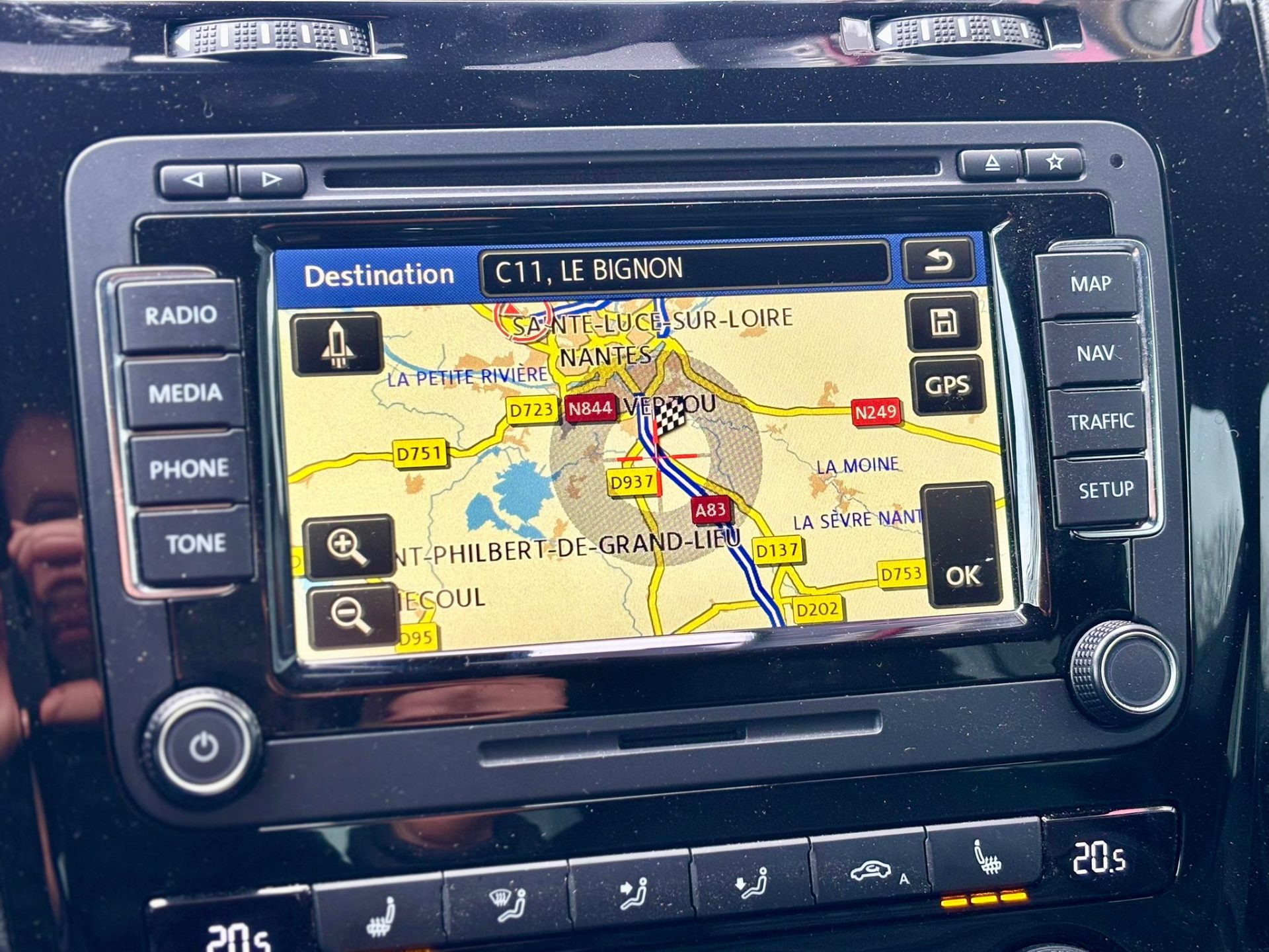 Equipements : Applications decoratives "Carbone" et "Piano Black" pour le tableau de bord, Climatisation automatique "Climatronic" bi-zone reglable separement pour conducteur et passager, Feux de jour a allumage automatique, fonction "Depart de chez soi" et fonction "Retour chez soi", Freins a disque ventile a lAV et a lAR en 17", Jantes alliage leger "Cadiz" 18" avec pneumatiques 235/40 R18 dotes de la technologie Seal et ecrous, Pare-chocs AV/AR et jupes laterales specifiques "R" couleur carrosserie, RNS 315 Radionavigation 4x20W sur 8HP avec ecran tactile couleur 5", cartographie Europe de l'Ouest,, Spoiler AR specifique "R" couleur carrosserie, Systeme Navigation & Infotainment "Discover Media", Sellerie en cuir "Vienna" et autres materiaux special R