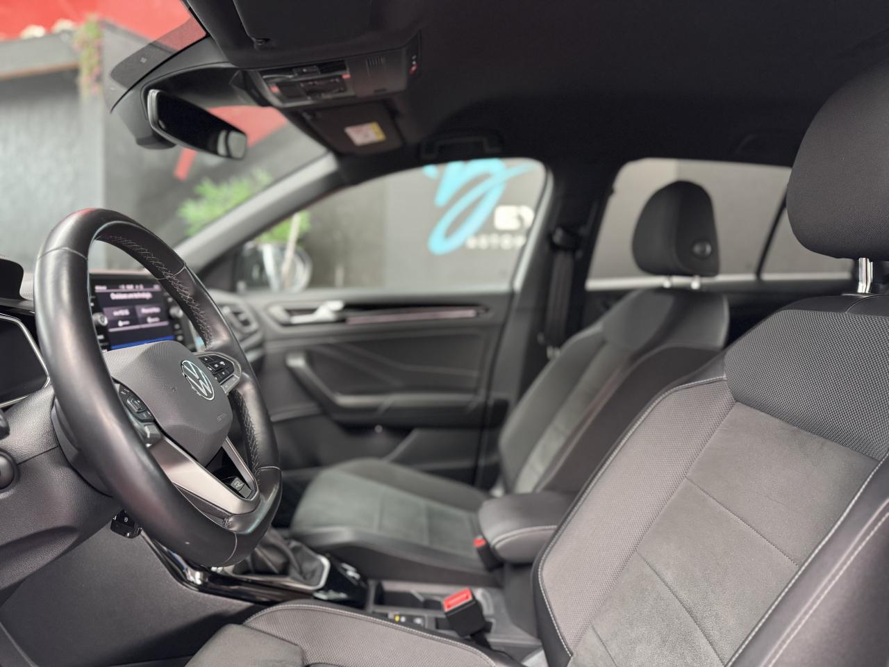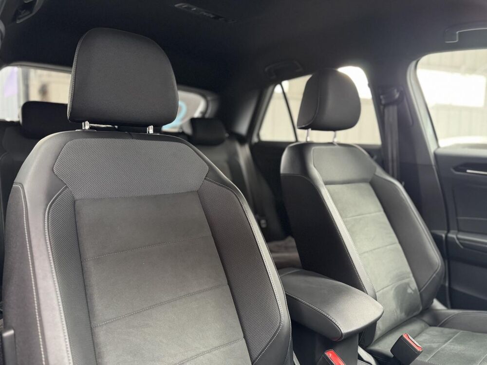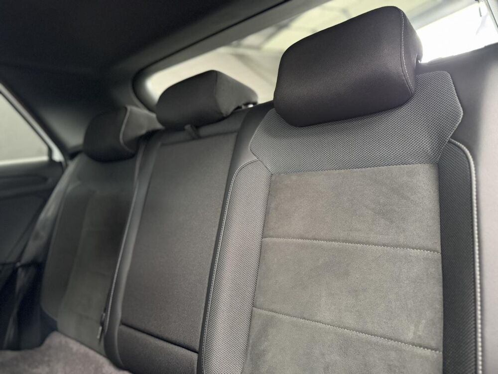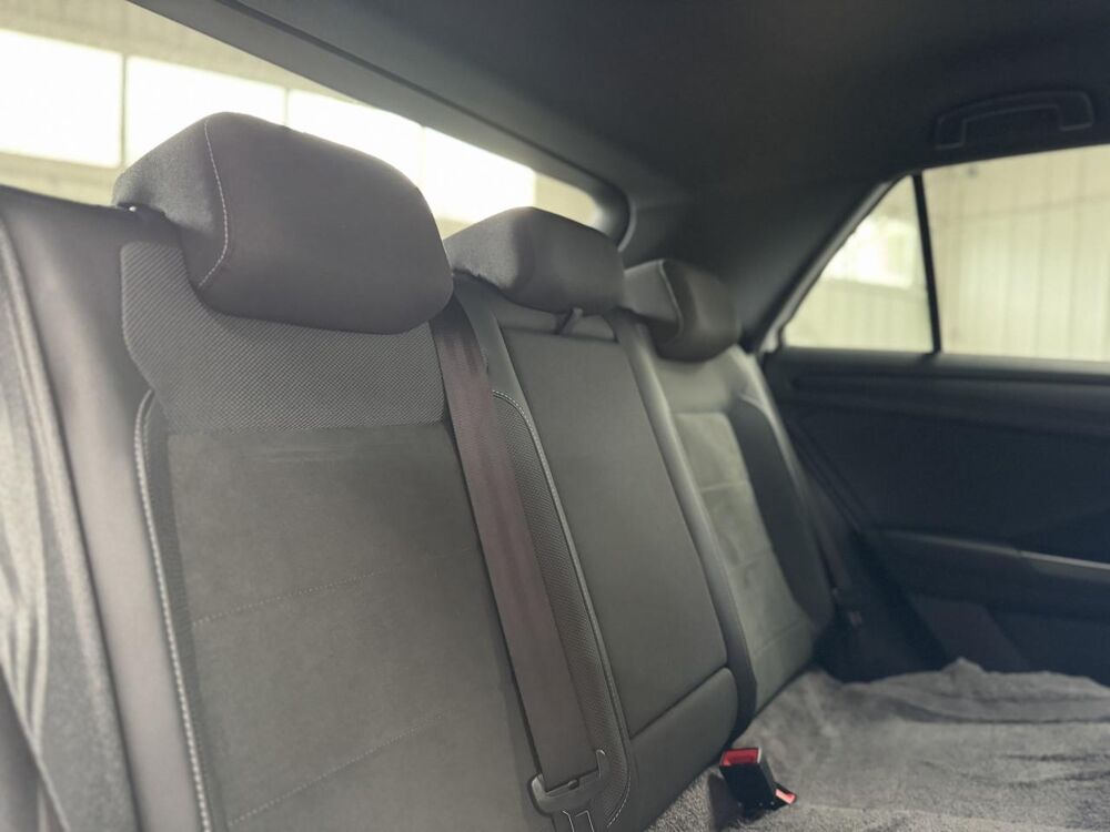 Partie extérieure et appuie-tête en similicuir et surpiqués en Gris. Logo R-Line sur les sièges avant