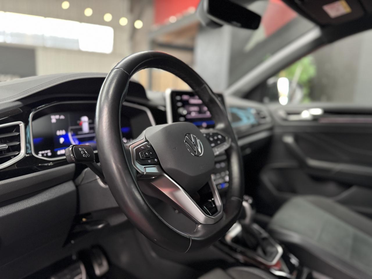Volant sport multifonction à touches ?physiques? en cuir et logo R-Line et capacitif