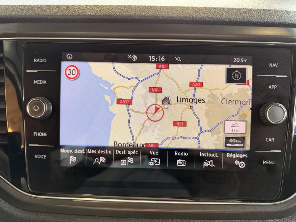 Ordinateur de bord multifonction avec affichage de la température extérieure, contrôle des élèments audios, de navigation, et du téléphone
