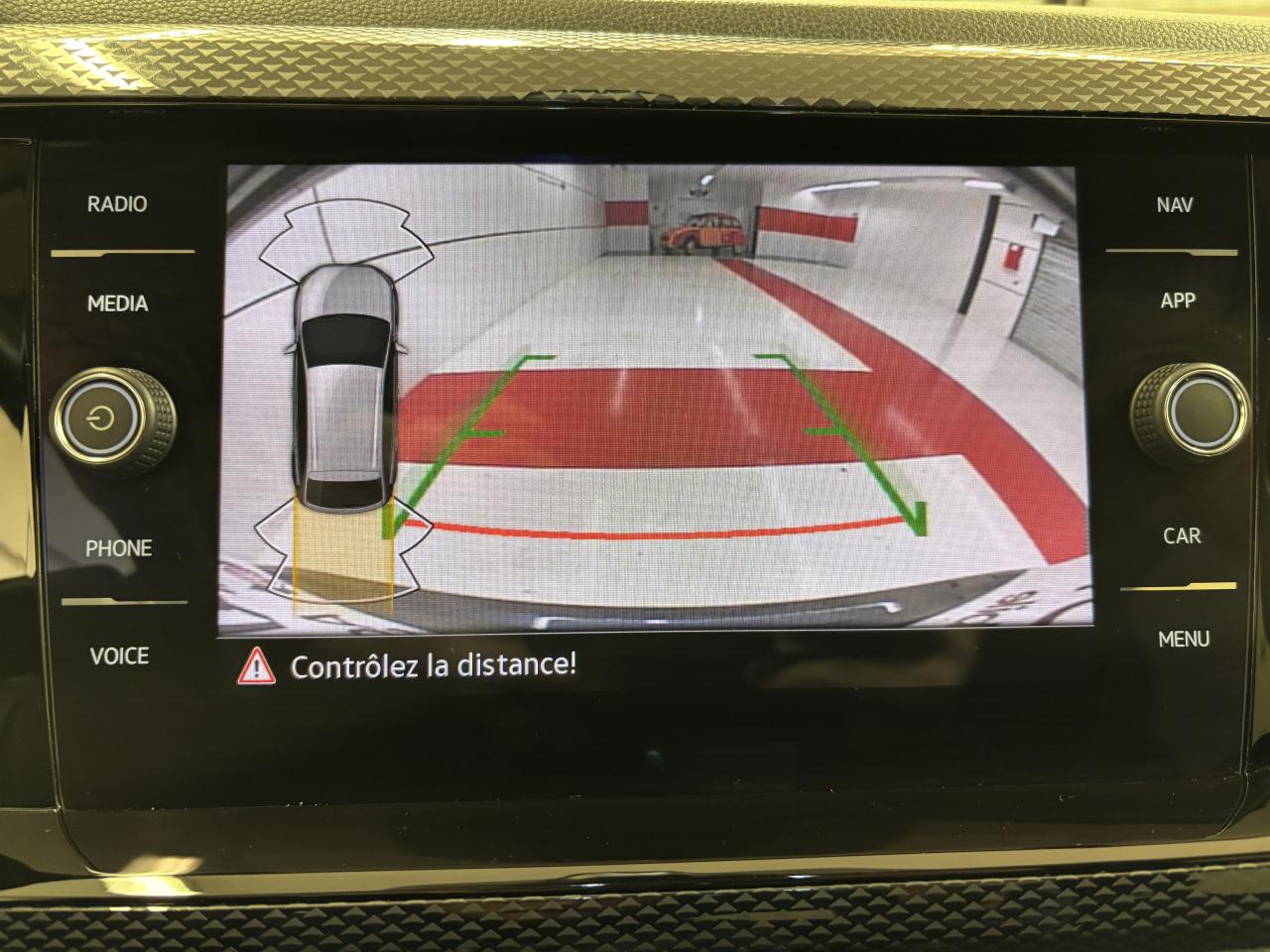 Rear view: - pllus qu'une caméra de recul, elle affiche des indications visuelles sur l'écran central pour faciliter les manoeuvres de recul et de stationnement