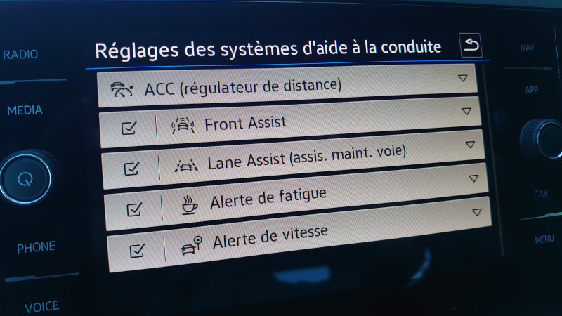 Climatisation auto Climatronic bi-zone,JA 17 Aberdeen 205/55 R17,Noir Intense nacrée,Accoudoir central AV avec rangement,AFIL,Aide au démarrage en côte,Aide au freinage d'urgence,Antidémarrage électronique,Antipatinage,Appel d'Urgence Localisé,Arrêt et redémarrage auto. du moteur,Assistance de maintien de trajectoire,Banquette 1/3-2/3,Barres de toit,Becquet arrière,Blocage électronique du différentiel,Caméra de recul,Capteur de luminosité,Capteur de pluie,Démarrage sans clé,Détecteur de sous-gonflage,Ecran tactile,ESP,Feux de jour à LED,Fonction MP3,Frein à main en cuir,Freinage automatique d'urgence,Indicateur de limitation de vitesse,Kit mains-libres Bluetooth,Limiteur de vitesse,Lunette arrière surteintée,Ordinateur de bord,Plancher de coffre mobile,Pommeau de levier vitesse en cuir,Prise USB,Radar de stationnement AR,Radar de stationnement AV,Radio numérique DAB,Reconnaissance panneaux de signalisation,Régulateur de vitesse adaptatif,Rétroviseur intérieur électrochrome,Rétroviseurs dégivrants,Rétroviseurs rabattables électriquement,Services connectés