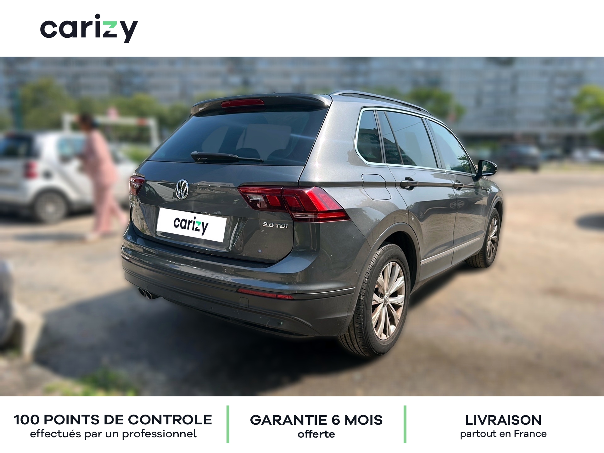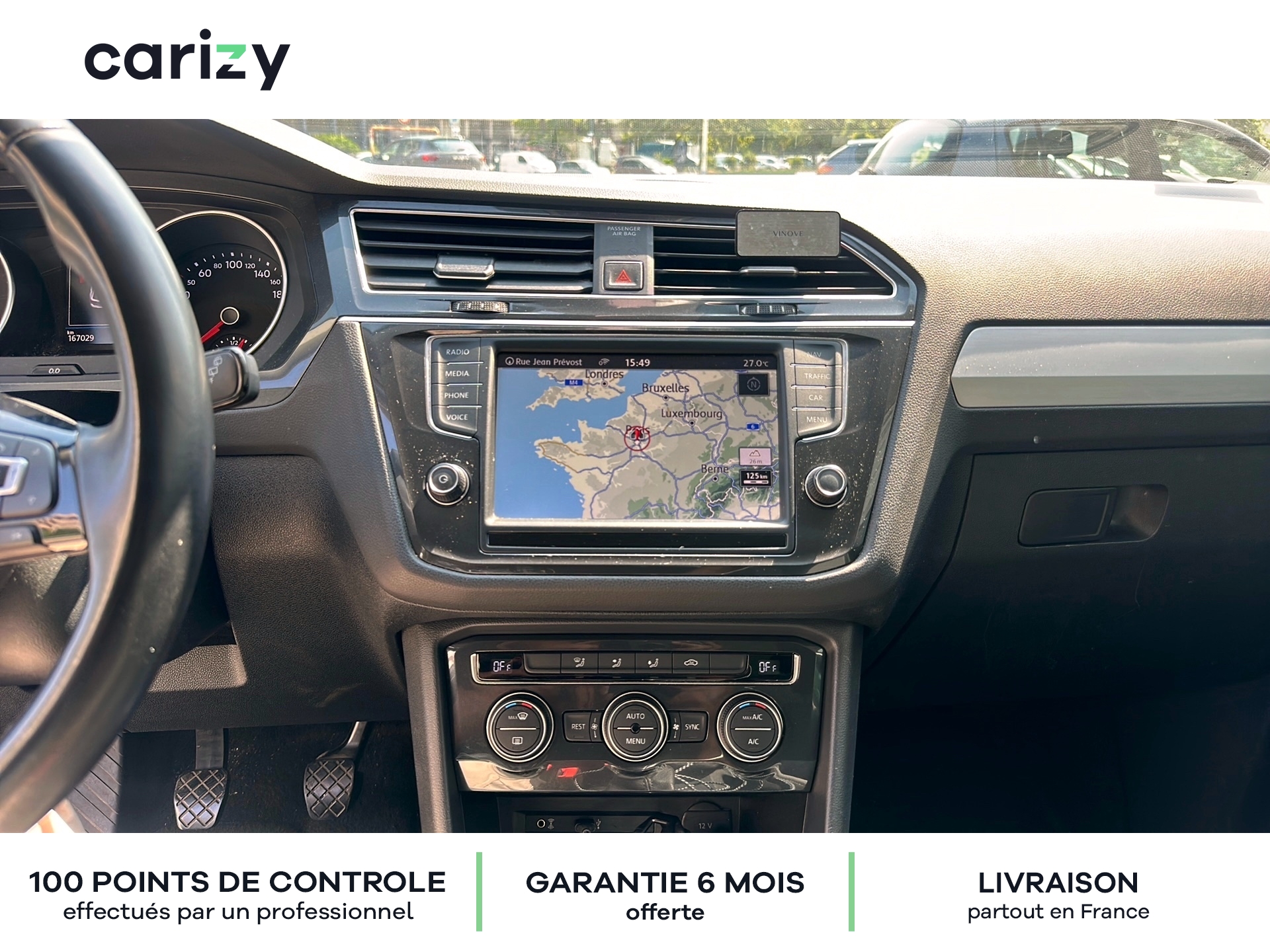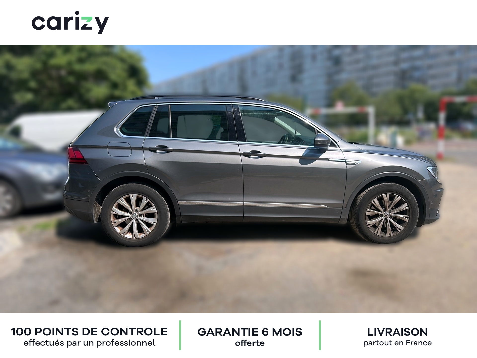 Climatisation, Bluetooth, Jantes en alliage, GPS, Prises USB, Régulateur de vitesse, Radar de recul arrière, Caméra de recul, Apple car play, Android auto, Peinture métallisée, Keyless Access (système de verrouillage/déverrouillage sans clé et démarrage avec bouton start/stop), Projecteurs antibrouillard AV avec éclairage statique d'intersection, Réglage du site des phares, Car-Net `App-Connect` : affichage et contrôle via l'écran tactile de la voiture. du contenu. des fonctions et des applications compatibles présents sur le Smartphone, Climatisation automatique `Pure Air Climatronic` tri-zone avec commande à l'AV et à l'AR, Prise 230V et lampe dans le coffre, Rétroviseurs extérieurs chauffants. réglables et rabattables électriquement, Plancher de coffre modulable, Park Pilot + Park Assist Système d'assistance au stationnement en créneau et en bataille, Light Assist: Activation ou désactivation automatique des feux de route en fonction des sources lumineuses en présence (dès 60 km/h), Car-Net `Guide & Inform` 36 mois Services mobiles en ligne via votre Smartphone, EASY OPEN sans alarme, Pack Drive Assist, Sellerie en tissu `Rhombus`, Rails de toit noirs, Carizy est le n°1 de la vente de voitures d'occasion de particuliers sur internet, avec plus de 10 000 ventes réalisées. Tous les véhicules Carizy d'occasion sont contrôlés par un inspecteur automobile sur 100 points de contrôle et bénéficient d'une garantie offerte de 6 mois (extensible). Solutions de financement sur mesure avec ou sans apport, aide dans les démarches de prime à la conversion (si véhicule éligible) ou encore livraison de la voiture à l'adresse de votre choix partout en France métropolitaine, Carizy vous accompagne dans votre projet d'achat. Besoin de plus d'infos ? Contactez-nous ! Livraison partout en France métropolitaine. Besoin d'un financement ? Carizy est partenaire de Cofidis.
