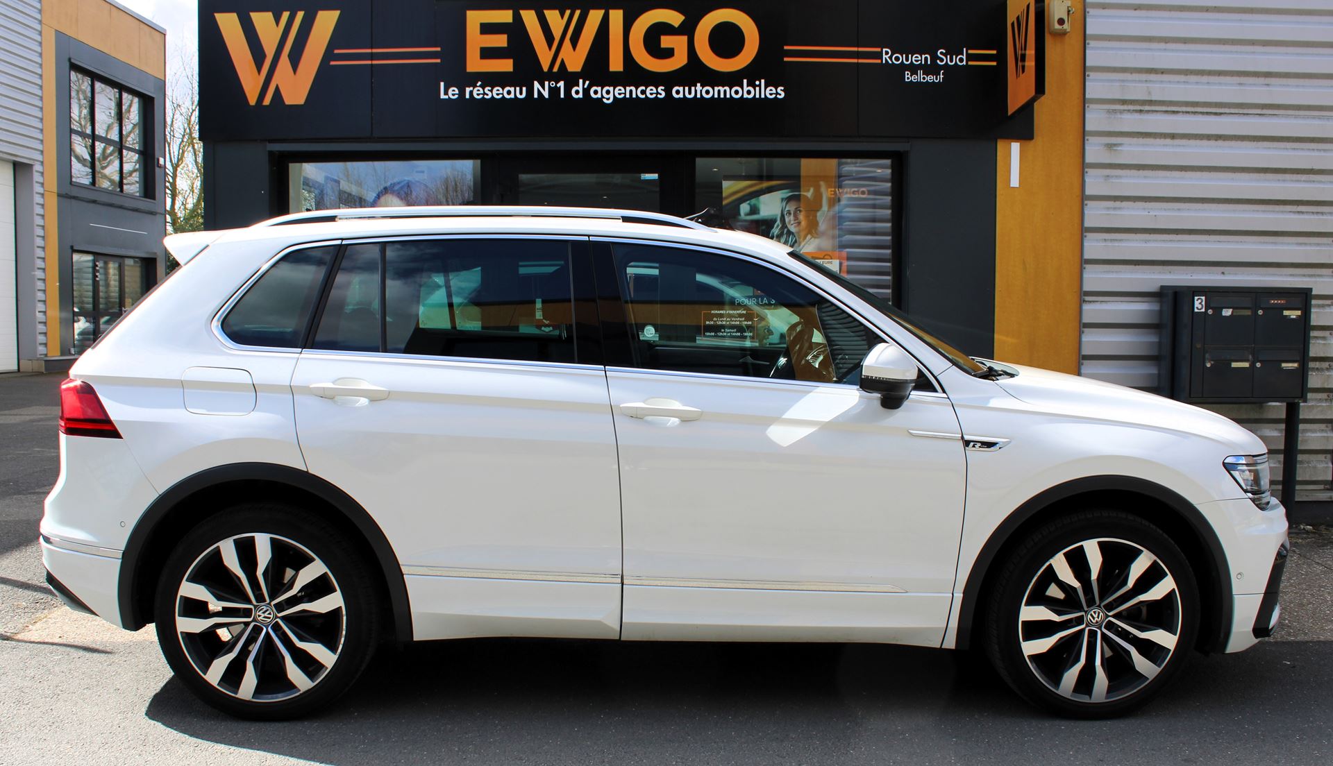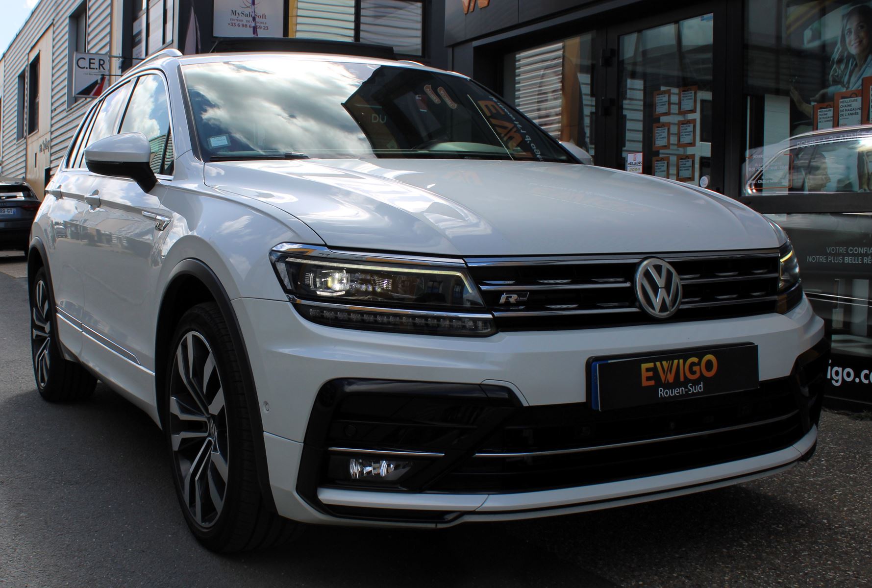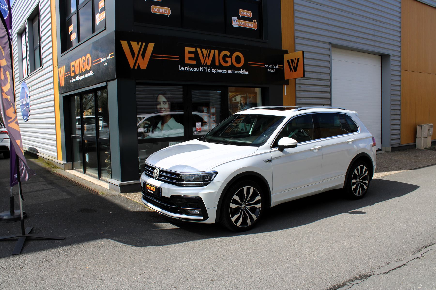 VOLKSWAGEN TIGUAN Blanc 2019 - 2.0 BI-TDI 240 ch R-Line 4Motion DSG7 / Toit ouvrant / Sièges chauffantsGarantie : 6 mois (Mutuaide by Groupama)