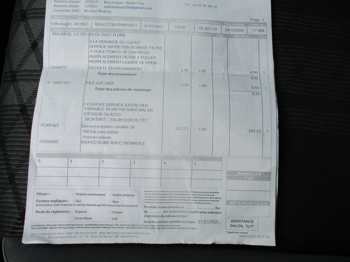 VOLKSWAGEN TIGUAN (Tiguan 2.0 TDI 150ch DSG7 R-Line)