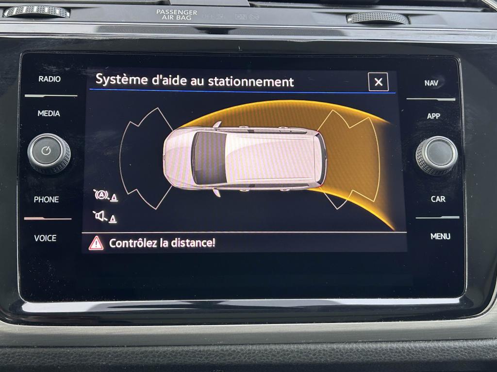 Aide au stationnement avant et arrière avec signaux sonores et visualisation de la distance des obstacles sur l'écran de la radio