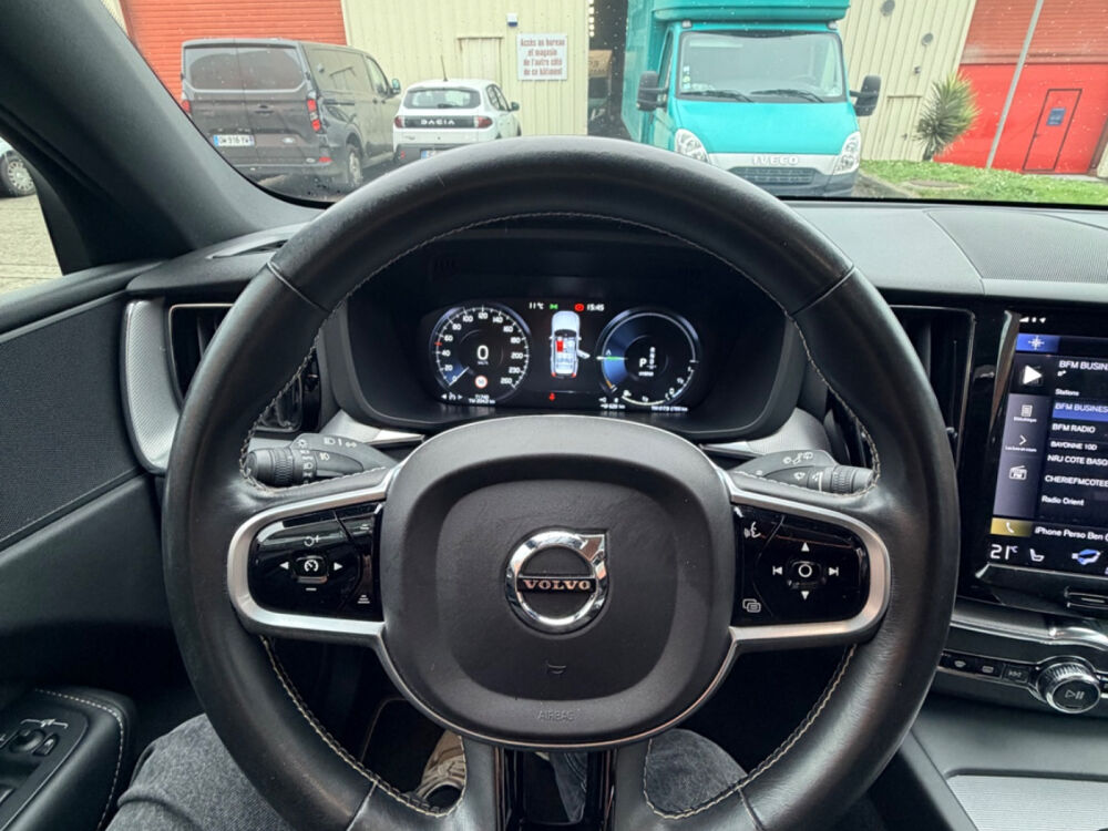 VOLVO XC60 T6 Recharge AWD 253 ch + 87 ch Geartronic 8 R-Design// Accoudoir avant Aide au démarrage en pente Airbag conducteur Airbag genoux conducteur Airbag latéral conducteur et passager Airbag passager Airbags rideaux arrière Airbags rideaux avant Alerte de franchissement involontaire de lignes Allumage automatique des phares Appuie-tête arrière Assistance de freinage Assistant dynamique au maintien de voie Carte mains-libres Ceinture centrale arrière 3 points Ceintures arrière avec prétensionneurs Ceintures avant avec prétensionneurs Chauffage à régulation automatique Climatisation automatique Contrôle de descente Contrôle de traction Contrôle pression pneus (RDC) Détecteur de fatigue Détecteur pluie ESP (programme de stabilité électronique) Feux arrière LED Feux avant LED Feux de jour Feux indicateurs de changement de direction Filet de séparation Filtre d'habitacle Garnitures intérieures métal Hayon arrière Indicateur de température extérieur Installation téléphone mains libres Interface Bluetooth Jantes/roues en alliage léger 19 Kit de réparation pneus (Mobile Tyre) Levier de vitesses en cuir Lève-vitres arrière électriques Lève-vitres avant électriques Oeïllets de fixation Ordinateur de bord Pack hiver Phares antibrouillard Radar de stationnement arrière Radar de stationnement avant Reconnaissance des panneaux de signalisation Réglage manuel des phares Rétroviseur extérieur électrochrome Rétroviseur intérieur électrochrome Rétroviseurs extérieurs rabattable électriquement Siège conducteur chauffant Siège conducteur réglable éléctriquement Siège conducteur à réglage lombaire électrique Siège passager chauffant Siège passager à réglage lombaire électrique Sièges avant Sport Sièges en cuir partiel Sièges à mémoire Soundsystem Système Start/Stop Système d'alerte anti-collision Système information conducteur Toit ouvrant coulissant/relevable Téléassistance USB jack Verrouillage centralisé Verrouillage centralisé télécommandé Volant avec commande radio Volant chauffant Volant en cuir Volant réglable manuellement