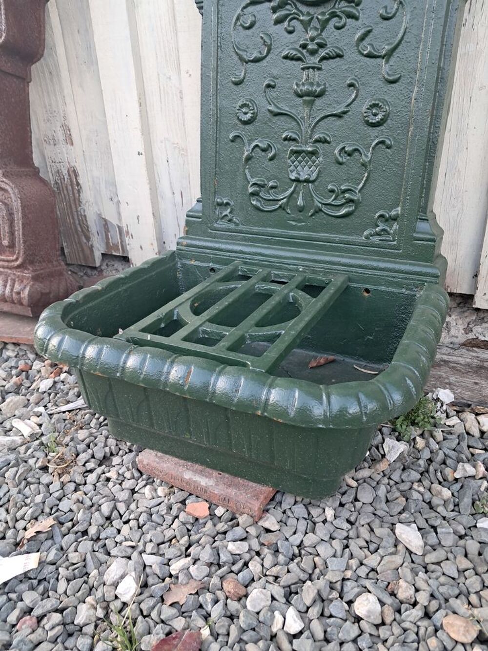 Visible à mon magasin d'Antiquité Brocante situé à Château l'Évêque ou je possèdes des meubles & bibelots divers ainsi qu'un large choix de décorations en fer forgé, fonte, pierre reconstituée, pour parc et jardins, visibles sur mon site.