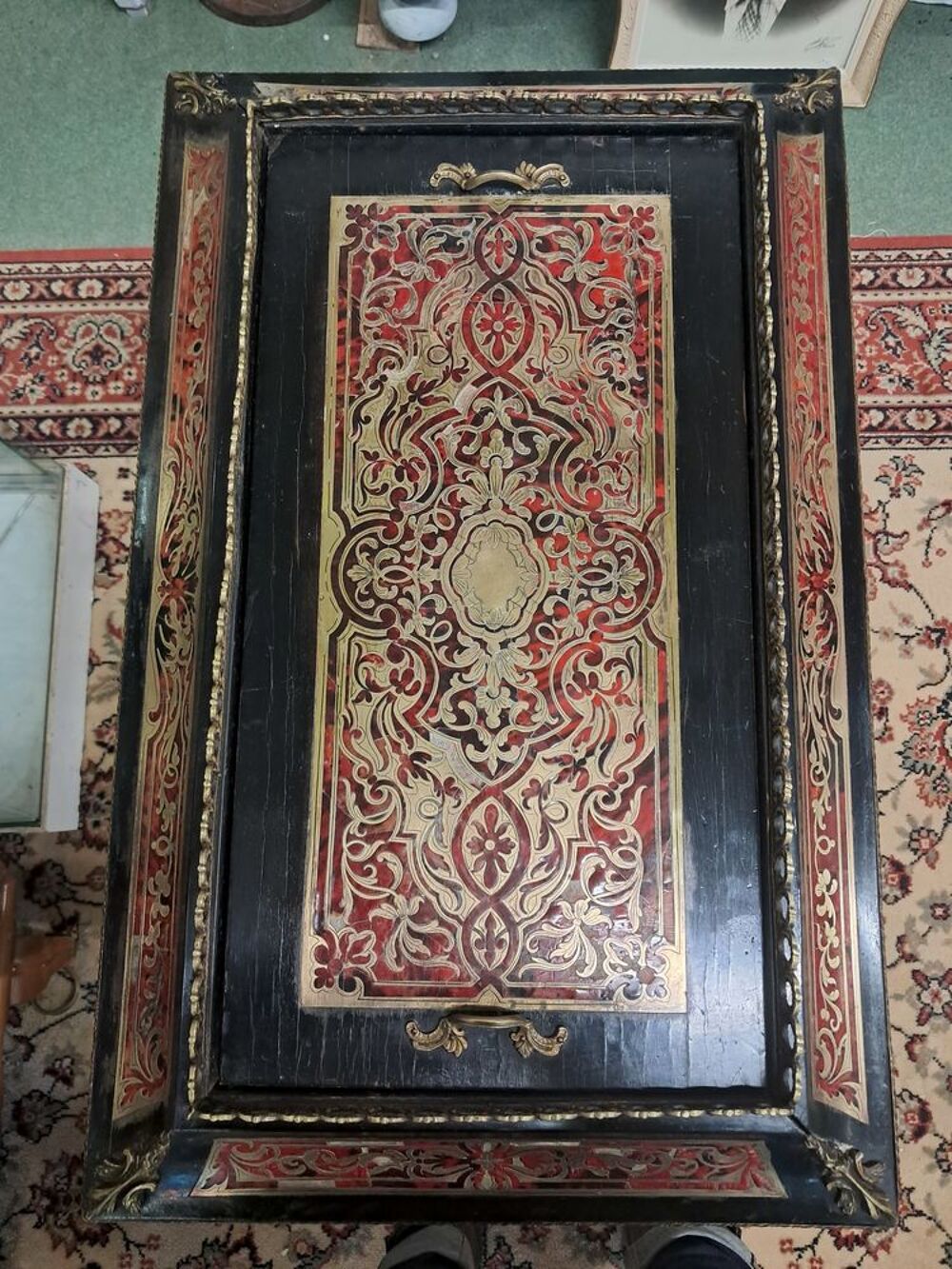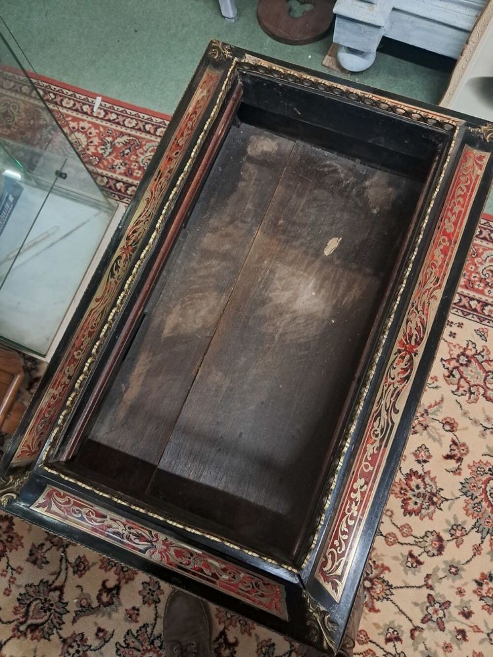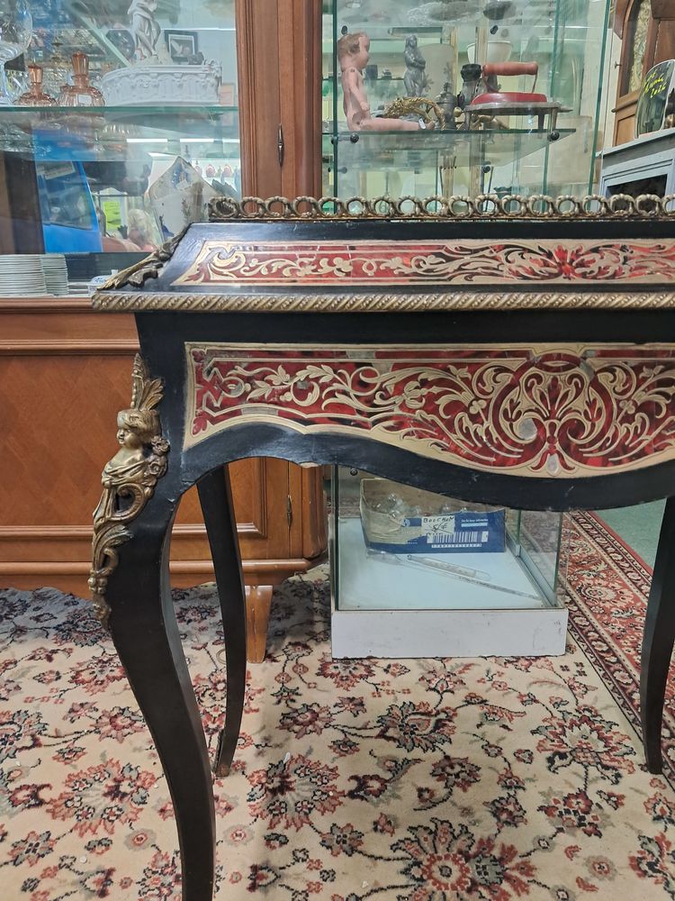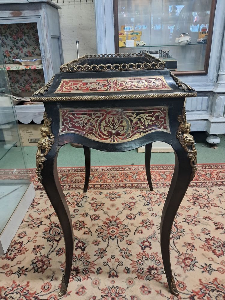 Jardinière en bois noirci d'époque Napoléon III, marqueterie Boulle écaille de tortue rouge et laiton, belle pièce dans son jus d'origine.