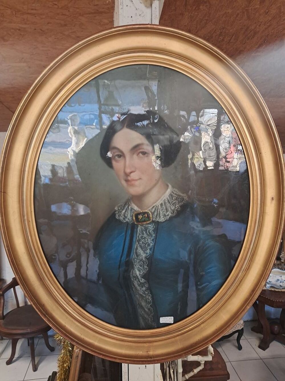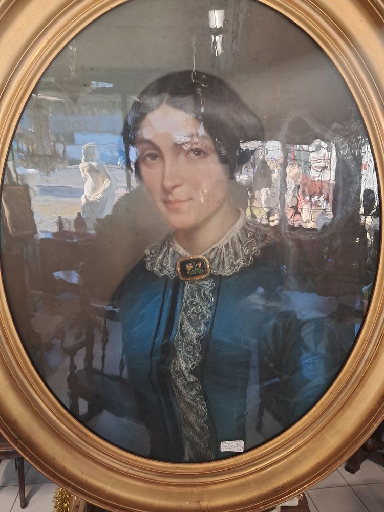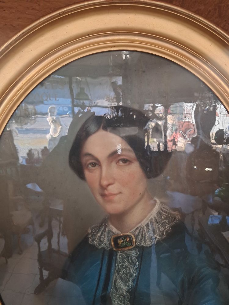 Tableau, pastel ovale ancien