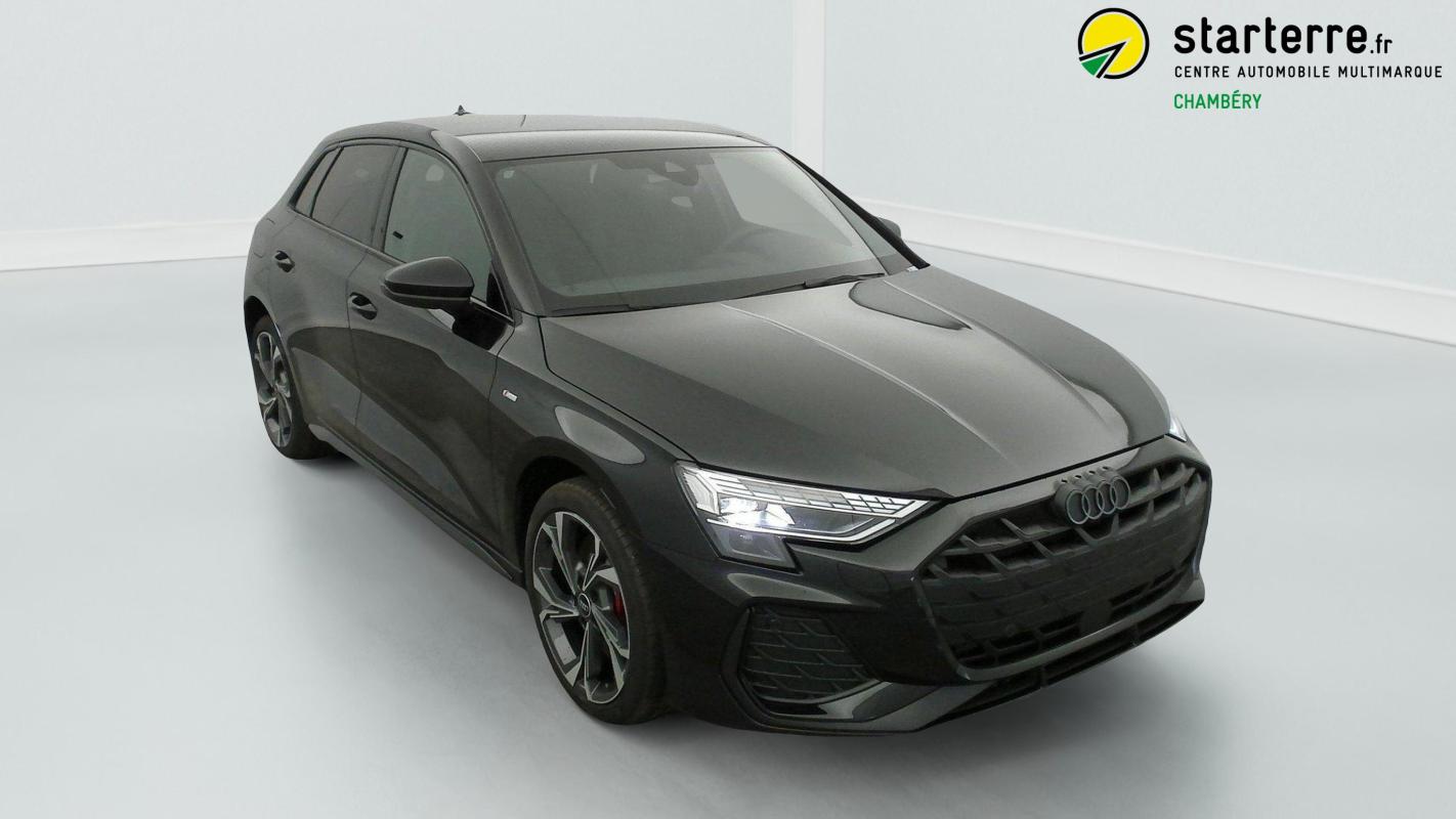 Volant et poignée de frein à main en cuir noir Audi exclusive avec surpiqûres rouge carmin, orange signal ou gris titane