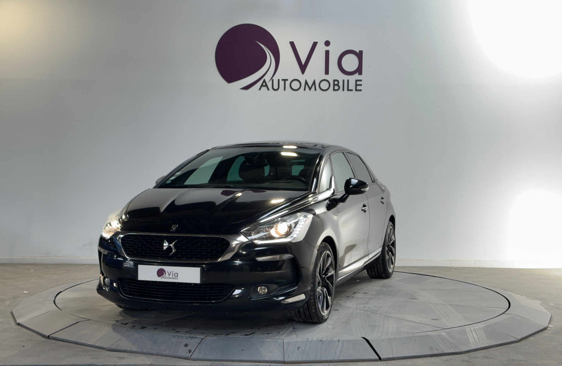 Personnalisation "60 ans DS 1955" : logo DS Gold Mat sur le capot, des stickers dorés "60 ans DS 1955" sur les portes AV et le volet AR, les centres de roues DS Gold Mat, une plaque numérotée, des surtapis spécifiques et des tétières de sièges spécifiques (0 €)