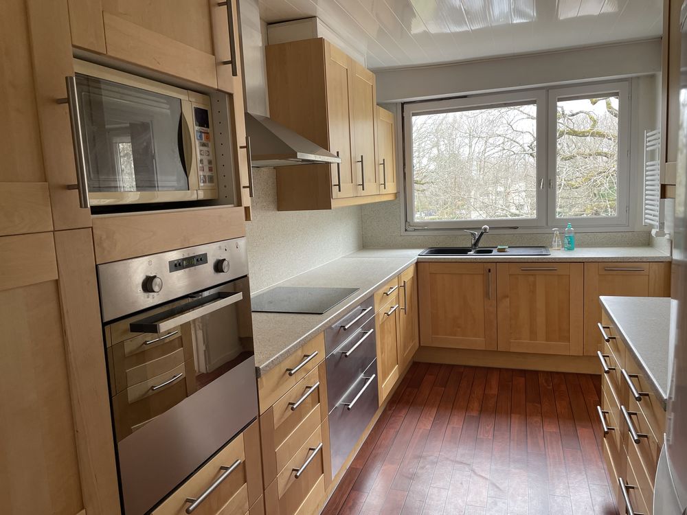 Entrée, belle cuisine aménagée et équipée, arrière-cuisine, salon-séjour (37 m²) avec balcon, dégagement avec placards-penderie, 4 chambres dont 2 avec balcon, salle de bains, salle de douche avec buanderie, wc.
