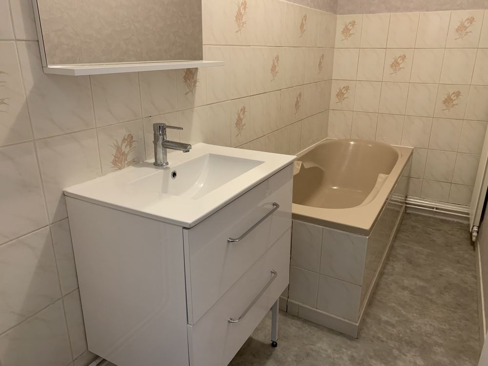 – Une salle de bains avec baignoire et un WC séparé