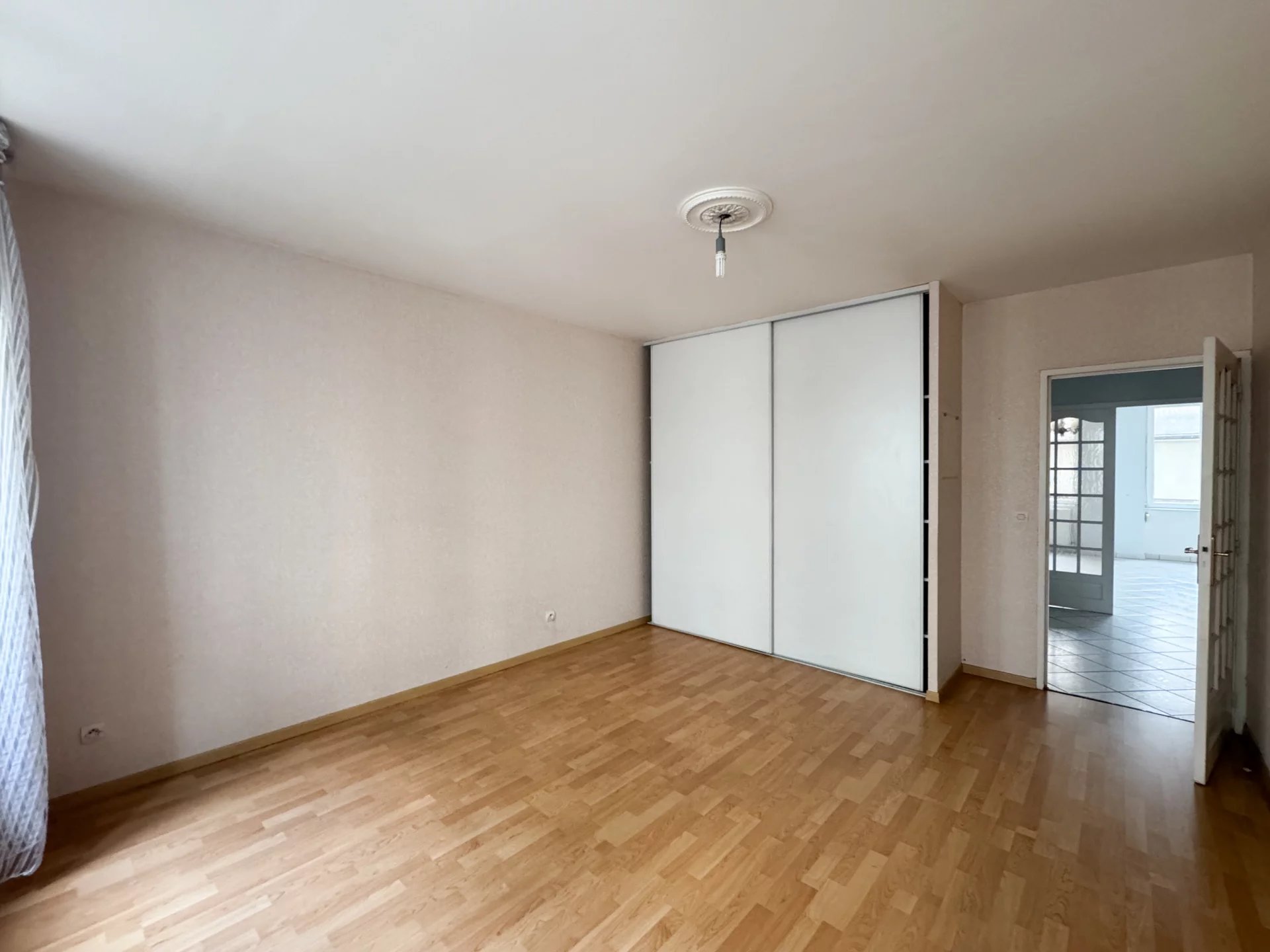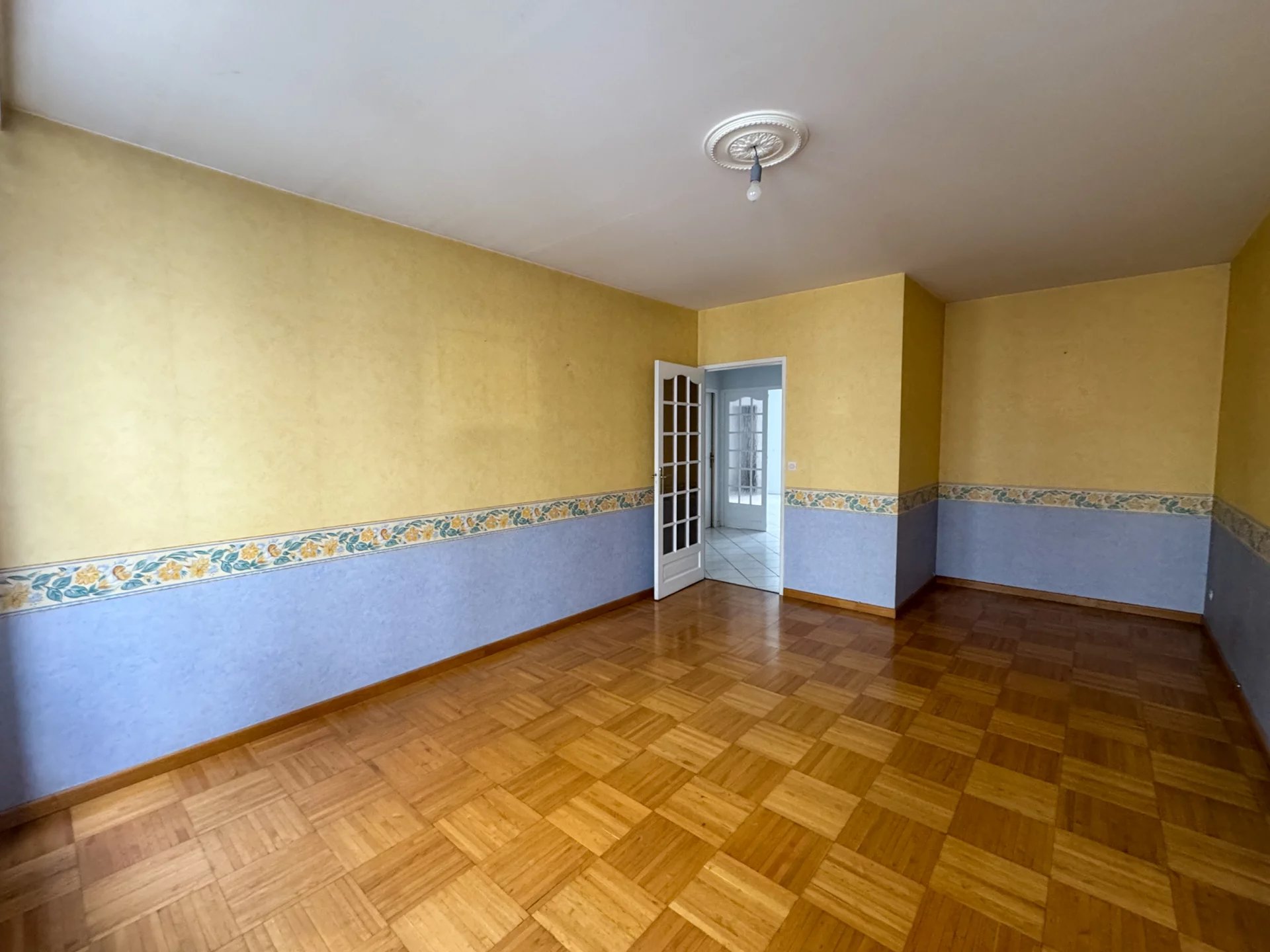 Salon-séjour (23,81m²) cuisine semi-équipée (4,13m²), deux chambres (17,75m² et 17,53m²), une salle de bains (3,85m²) et WC séparé (1,69m²).