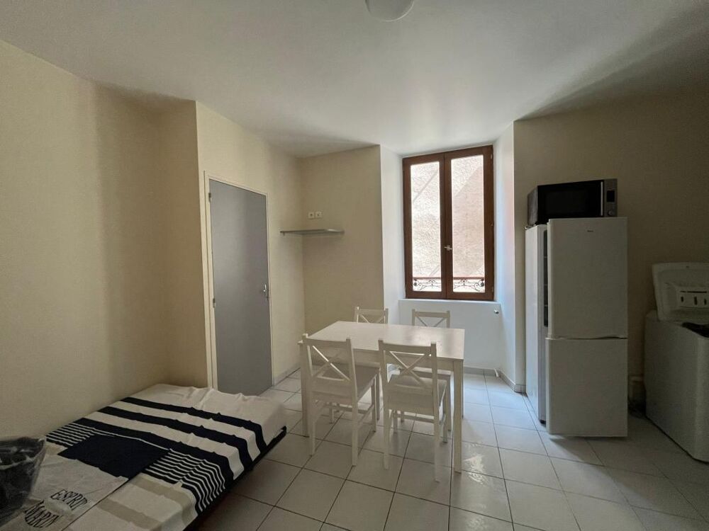 À louer : studio lumineux et entièrement meublé, situé en rez-de-chaussée à proximité immédiate du centre-ville de Mende.La pièce de vie/chambre est ouverte sur la cuisine. Le logement dispose également d'une salle d'eau avec WC.