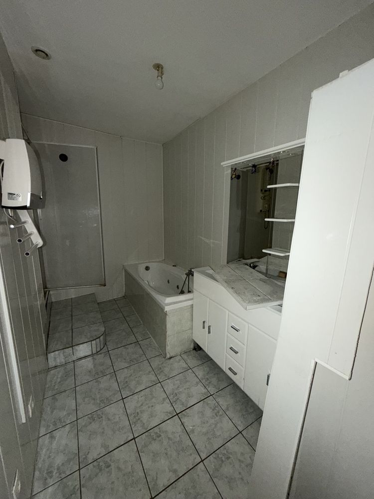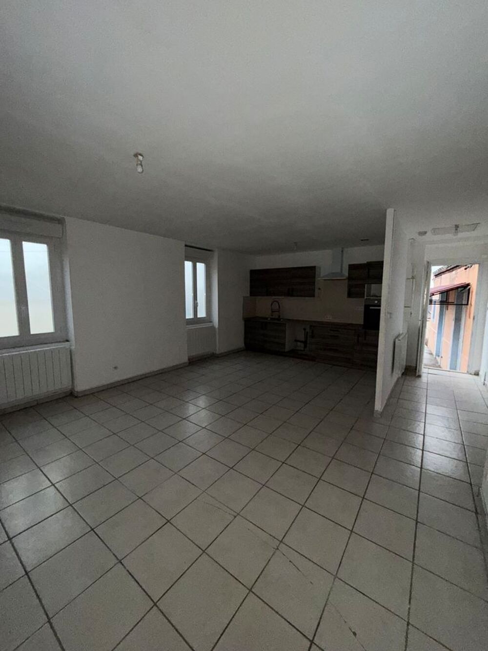 Grand séjour carrelé avec cuisine ouverte, deux chambres, salle de bains - baignoire. Chauffage individuel électrique.