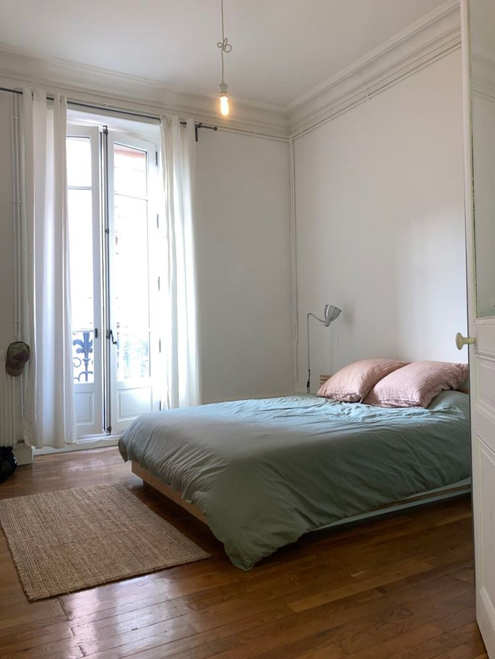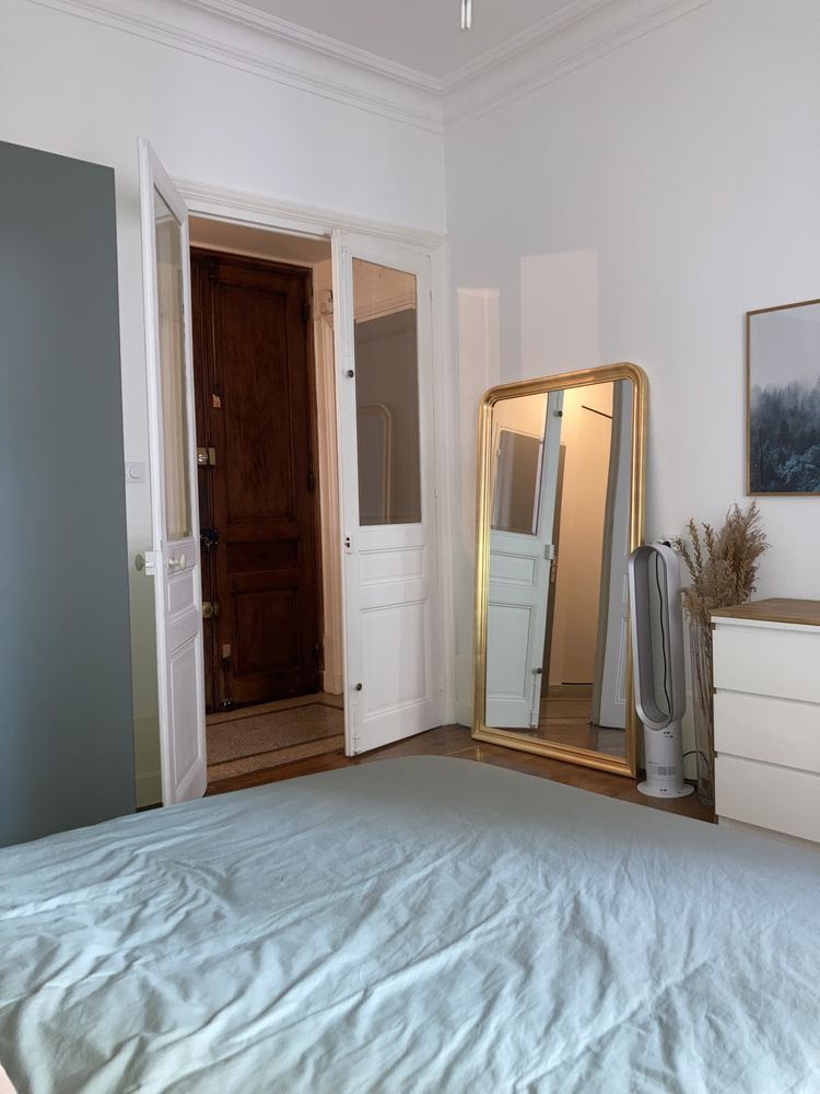 -Grande chambre, parquet chêne, moulures, balcon.